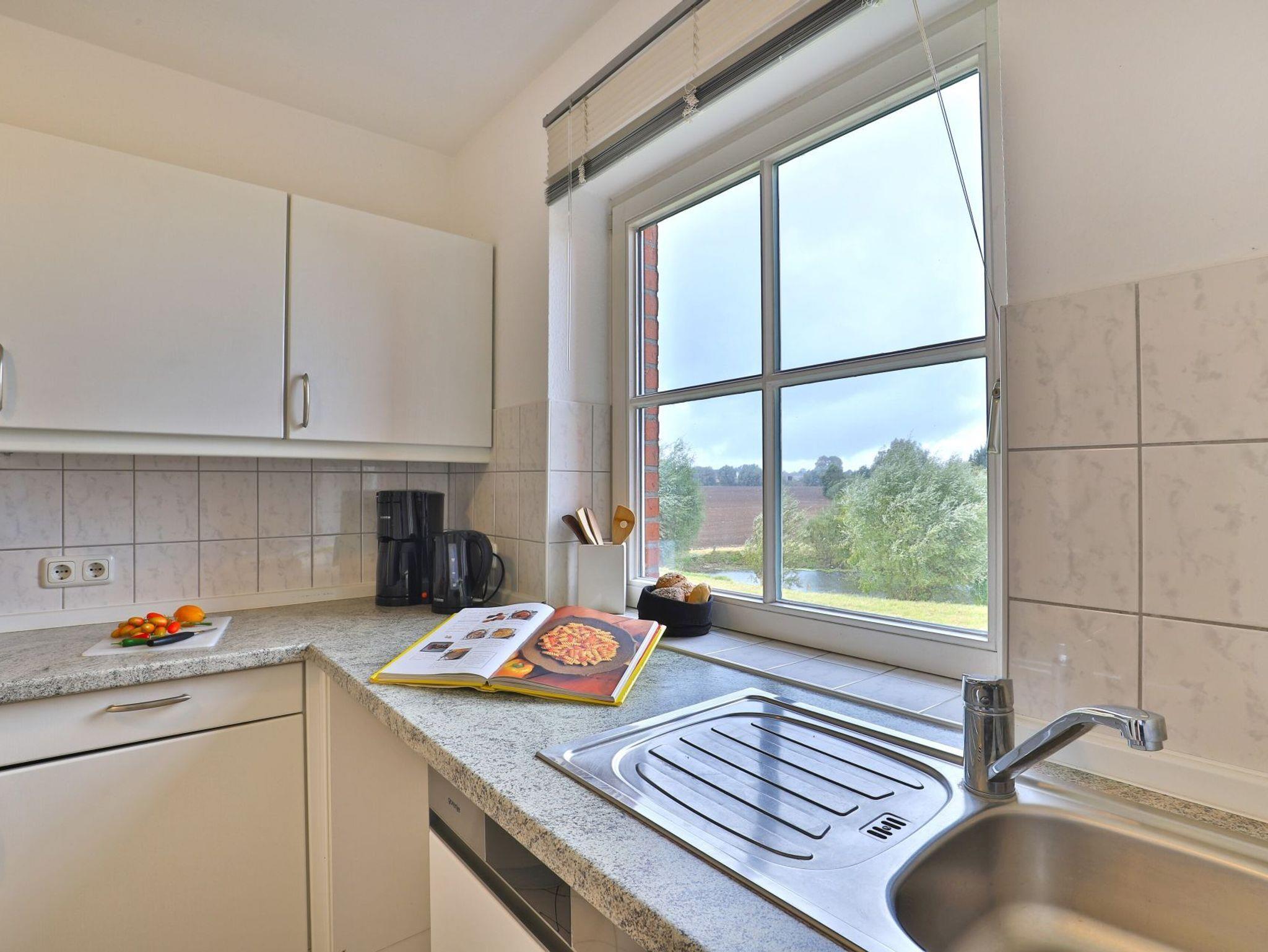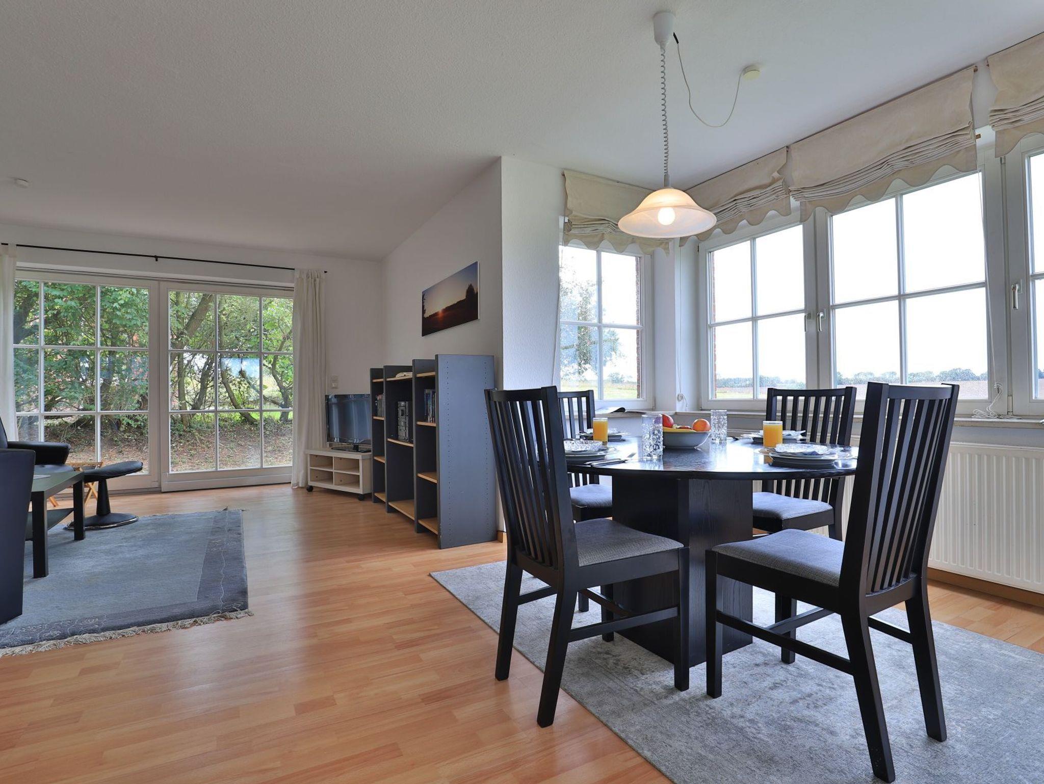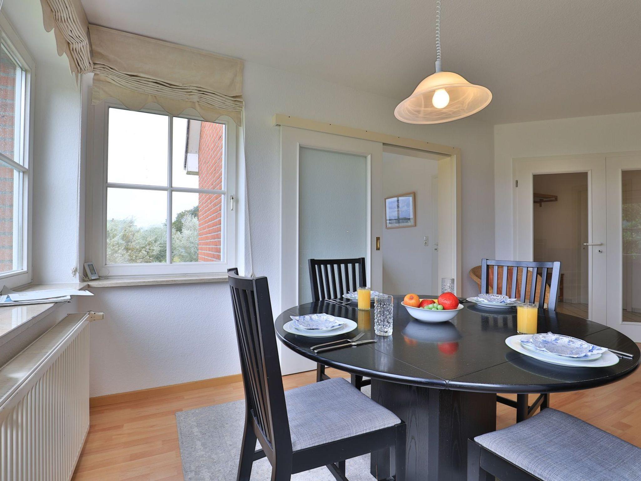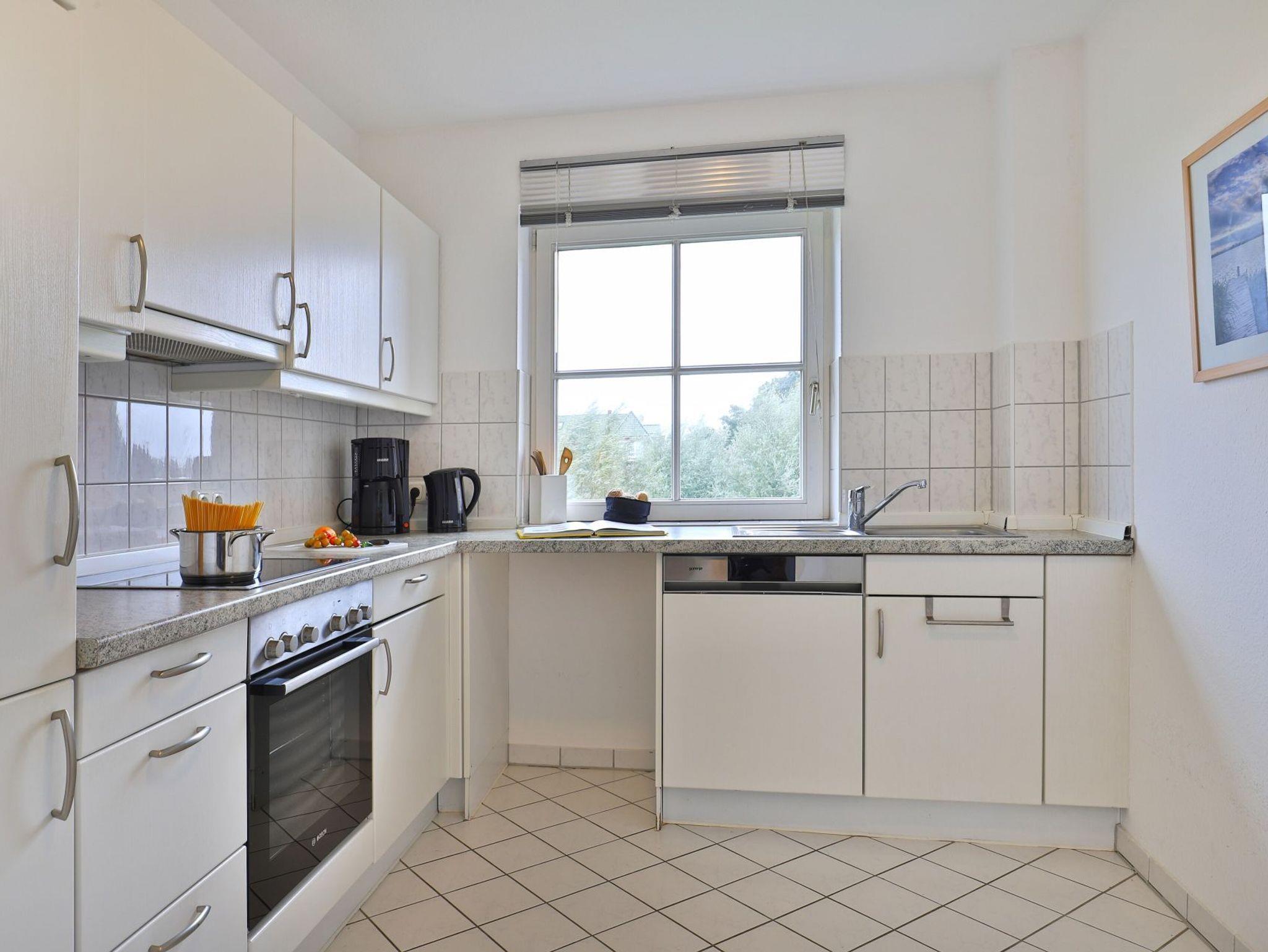 Das gut ausgestattete Erdgeschosswohnung bietet eine Wohnfläche von ca. 74qm und kann mit bis zu 4 Personen belegt werden. Durch bodentiefe Fenstertüren gleitet angenehmes Tageslicht in den Wohn und Essbereich, der seine Gäste mit einem Sofa, Lehnsessel und Esstisch empfängt. Auch ein Fernseher sowie ein Radio sind vorhanden. Den Internetanschluss nutzen Sie gebührenfrei. Eine separate Küche ermöglicht die Eigenversorgung. Herd, Backofen, Dunstabzug, Kühlschrank mit integr. Gefrierfach, Kaffeemaschine, Toaster, Geschirrspüler usw. sind vorhanden. Eine saisonal möblierte Terrasse in Süd-West Ausrichtung lädt zum Entspannen ein. Erholsame Nächte ermöglichen zwei separate Schlafzimmer, jeweils mit Doppelbett und Kleiderschrank.