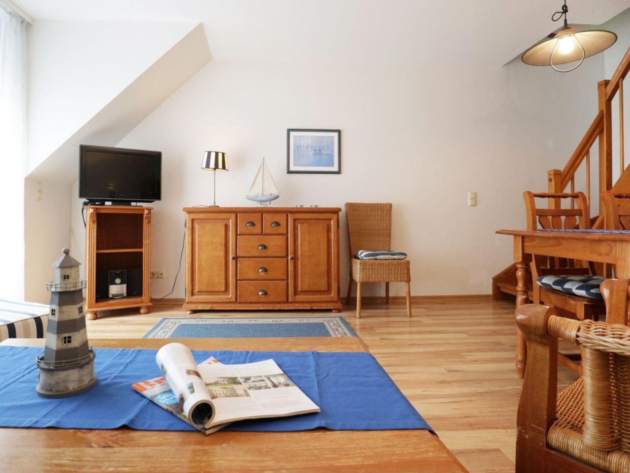 Mit einer liebevollen Möblierung und guter Ausstattung empfängt Sie die Nichtraucher Ferienunterkunft -Papillon 16/6 ? Auf einer Wohnfläche von 65qm, die sich über zwei Ebenen erstreckt, können Sie mit bis zu 6 Personen einen schönen Urlaub nahe der Ostsee verbringen. In wenigen Gehminuten sind Sie am feinsandigen Strand. Der helle Wohn-/Essbereich mit Laminatfußbodenbelag bietet ein gemütliches Sofa, zwei Sessel, einen Esstisch, Fernsehgerät mit DVD, WLAN kostenfrei, Musikanlage und Sideboard. Vom Wohnbereich gelangen sie auf den zugehörigen Balkon. Die offene Küchenzeile ist komplett ausgestattet mit Geschirrspüler, 4 Plattenherd, Backofen, Dunstabzug. Auf der unteren Ebene ist ein Schlafzimmer mit zwei Einzelbetten und Kleiderschrank. Kinderhochstuhl und Kinderbett stehen bei Bedarf bereit. Auf der oberen Ebene sind zwei Schlafzimmer mit jeweils einem Doppelbett und Kleiderschrank. Zur Wohnung gehört ein Duschbad. Waschmaschine & Wäschetrockner -gegen Gebühr- befinden sich im Hauskeller. Ihren PKW parken Sie kostenfrei am Haus. Bitte beachten Sie, dass Haustiere nicht gestattet sind. Familien fühlen sich sehr wohl in der Anlage Papillon. Einkaufsmöglichkeiten erreichen Sie in ca. 400 Meter.
