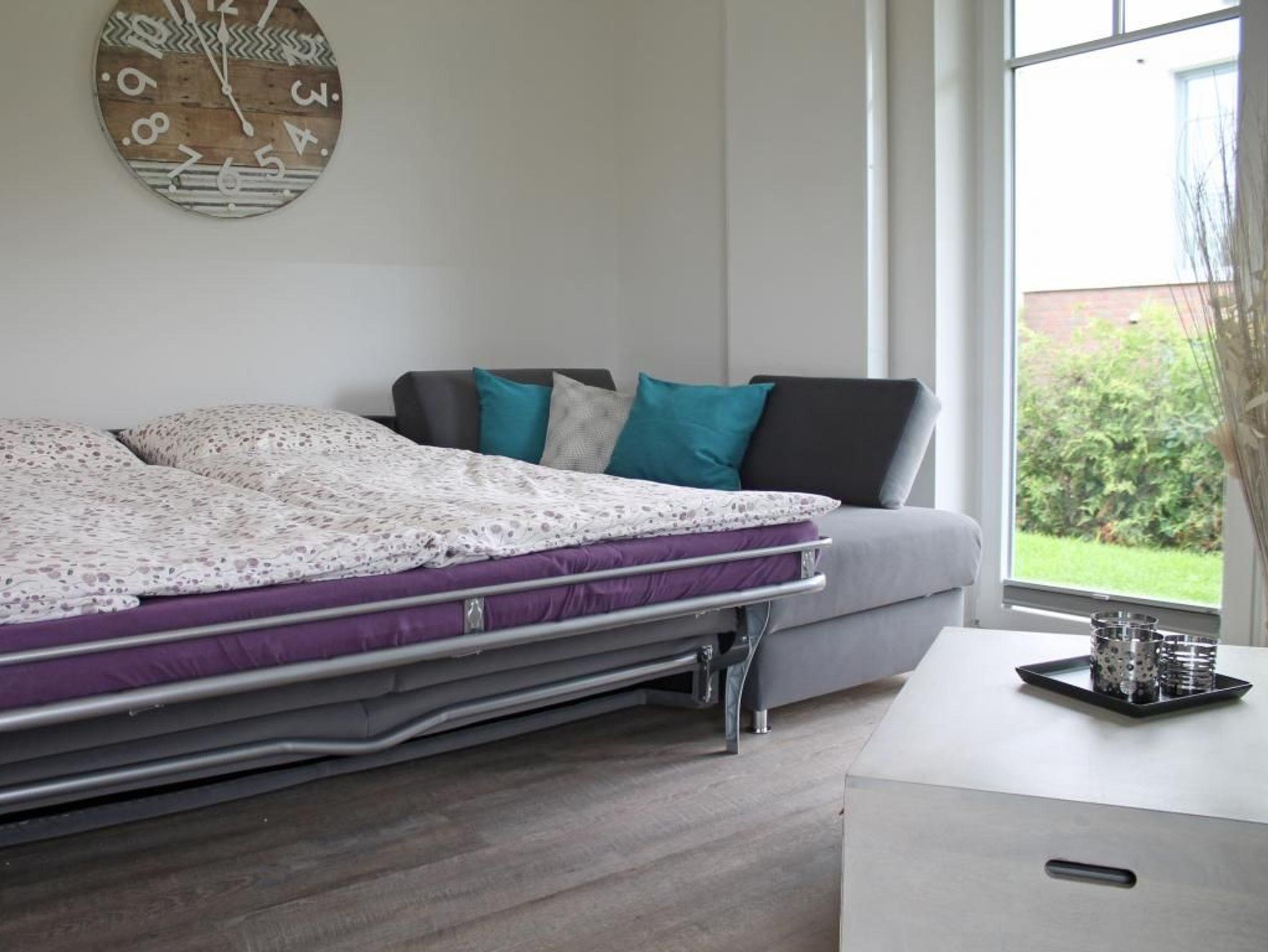 Im offenen Wohn-Essbereich empfängt Sie ein Komfortsofa, welches als ausziehbares Sofa zwei weitere Schlafgelegenheiten ermöglicht.