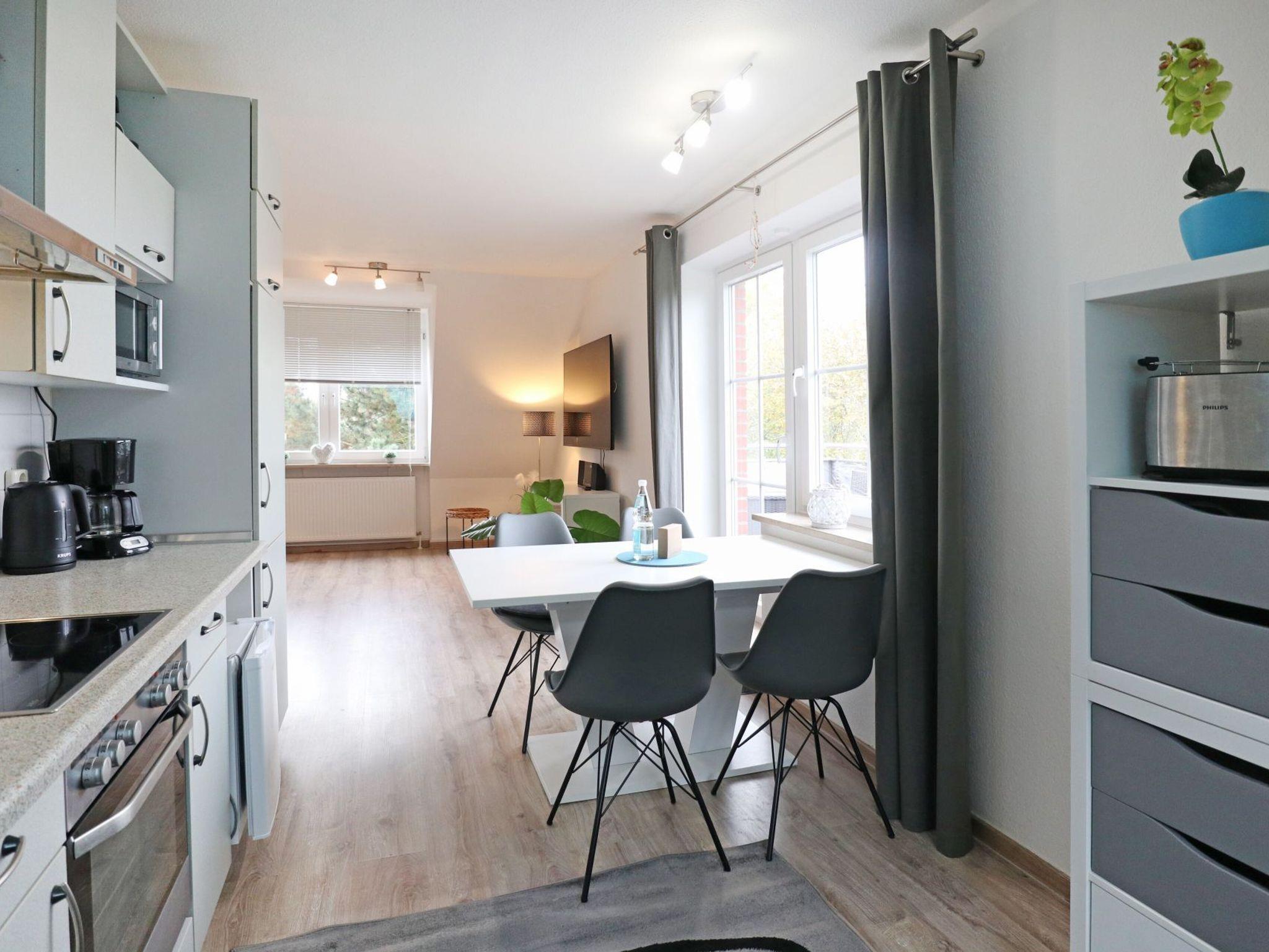 Die komfortabel möblierte 3- Zimmer Ferienwohnung Wiesenblick 5 befindet sich umgeben von Wiesen und Feldern, nur 900 Meter zum Strand an der Steilküste. Das moderne Appartement mit Balkon in westliche Ausrichtung besitzt eine großzügige Wohnfläche von 70qm ist bestens geeignet für bis zu 4 Gäste. Die Wohnung befindet ich im 1. Obergeschoss eines Mehrfamilienhauses. Der helle und schick eingerichtete Wohn-Essbereich verfügt über ein großes Sofa, einen Esstisch sowie Flachbild Fernseher und Musikanlage. WLAN steht Ihnen kostenfrei zur Verfügung. Eine offene Wohnküche ist integriert und voll ausgestattet mit Ceranfeldherd, Backofen, Mikrowelle, Spülmaschine, Kaffeemaschine, Wasserkocher, Toaster usw. Vom Wohnzimmer gelangen Sie auf den saisonal möblierten Balkon, wo Sie wunderbare Sonnenuntergänge erleben können.