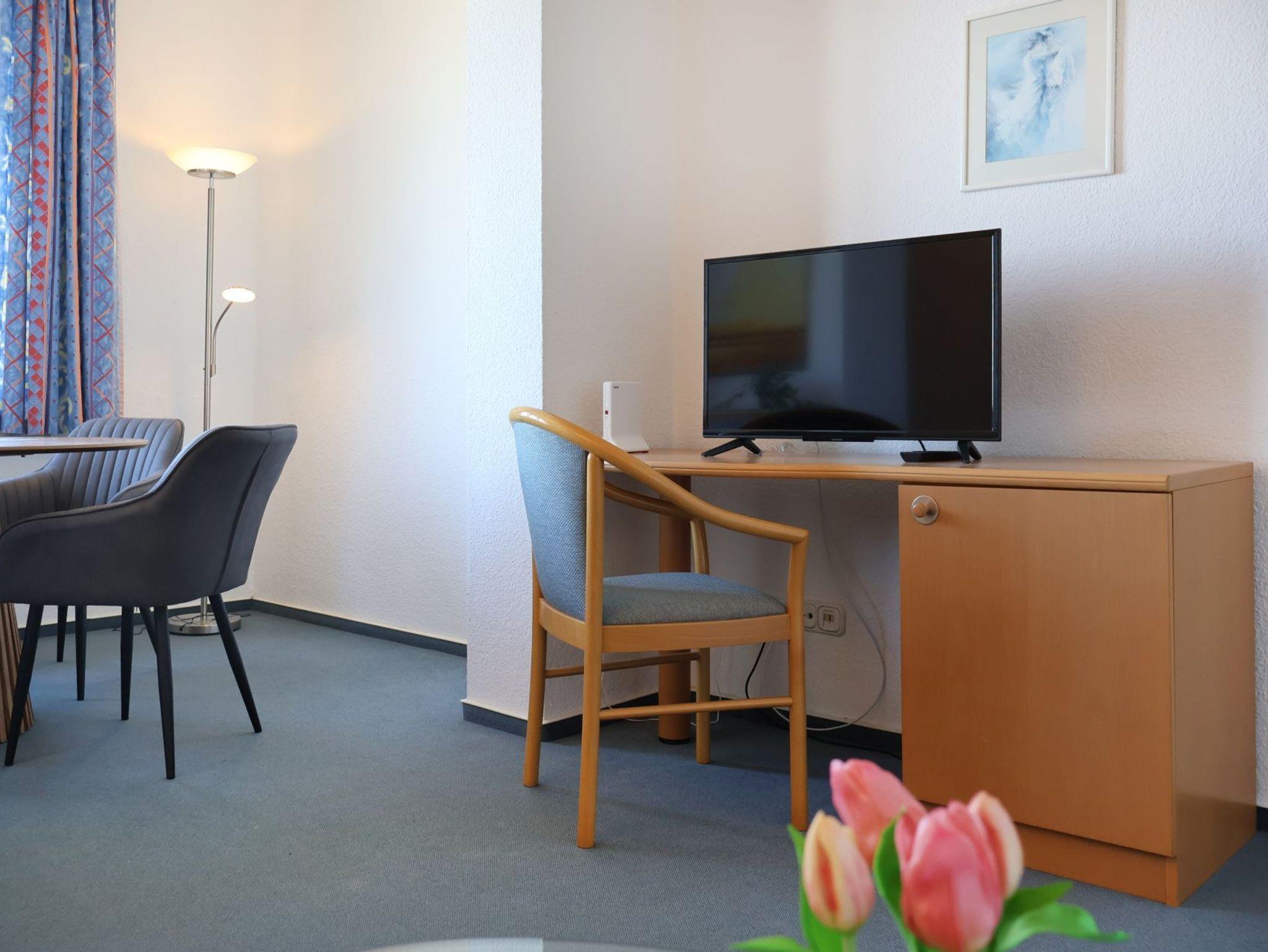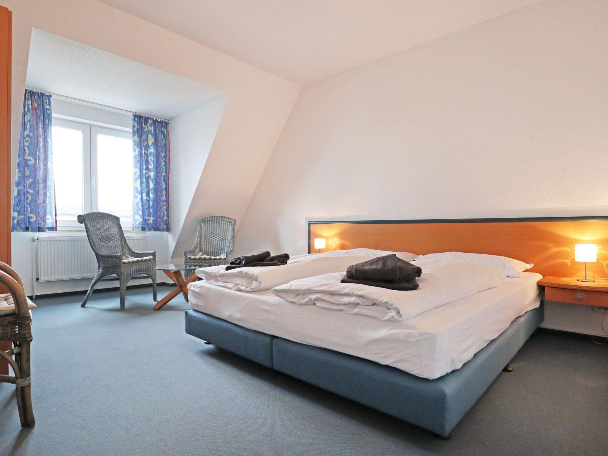 In der Strandvilla ?Schwarzer Bär Wohnung 8? beginnt der Ferientag mit Wellenrauschen und Meerblick. Auf einer Wohnfläche von 63qm ist das gemütliche Appartement für 2 Personen ideal ausgestattet. Der behagliche Wohn-Essbereich bietet selbstverständlich ein bequemes Schlafsofa, FLAT-TV und Radioempfang. Das separate Schlafzimmer mit Meerblick ist mit einem Doppelbett, Kleiderschrank und auch einer Leseecke eingerichtet. Die gut ausgestattete Küche mit 4-Plattenherd, Backofen, Dunstabzug, Kaffeemaschine, Toaster usw. befindet sich ebenfalls separat. Hell gefliest ist das geräumige Duschbad, das sich durch ein Tageslichtfenster gut belüften lässt. Kostenfrei steht den Gästen des Hauses ein reservierter PKW Stellplatz zur Verfügung. Im Haus Schwarzer Bär beginnt der Urlaub direkt nach der Ankunft denn die Betten sind bereits bezogen und Handtücher liegen bereit. Wir bieten Ihnen mit der Ferienwohnung ?Schwarzer Bär 8? ein sehr Strand nahes Nichtraucherdomizil mit direktem Ostseeblick im obersten Geschoss der Strandvilla. Haustiere sind in dieser Wohnung nicht gestattet. Auf Wunsch werden Brötchen und Tageszeitung täglich bis an die Hauseingangstür geliefert. In naher Umgebung befinden sich ganzjährig gute Einkaufsmöglichkeiten.