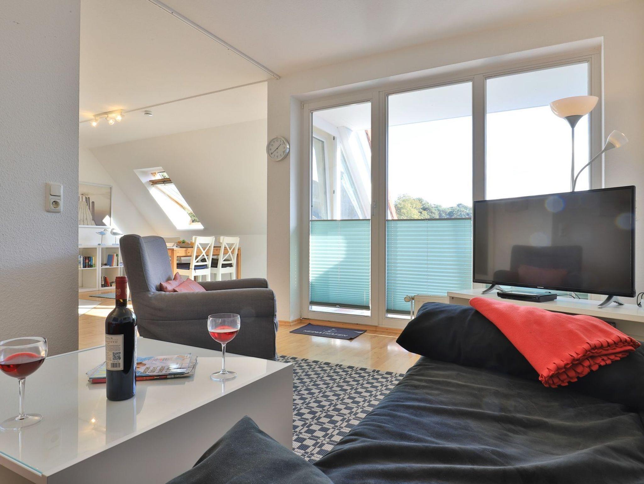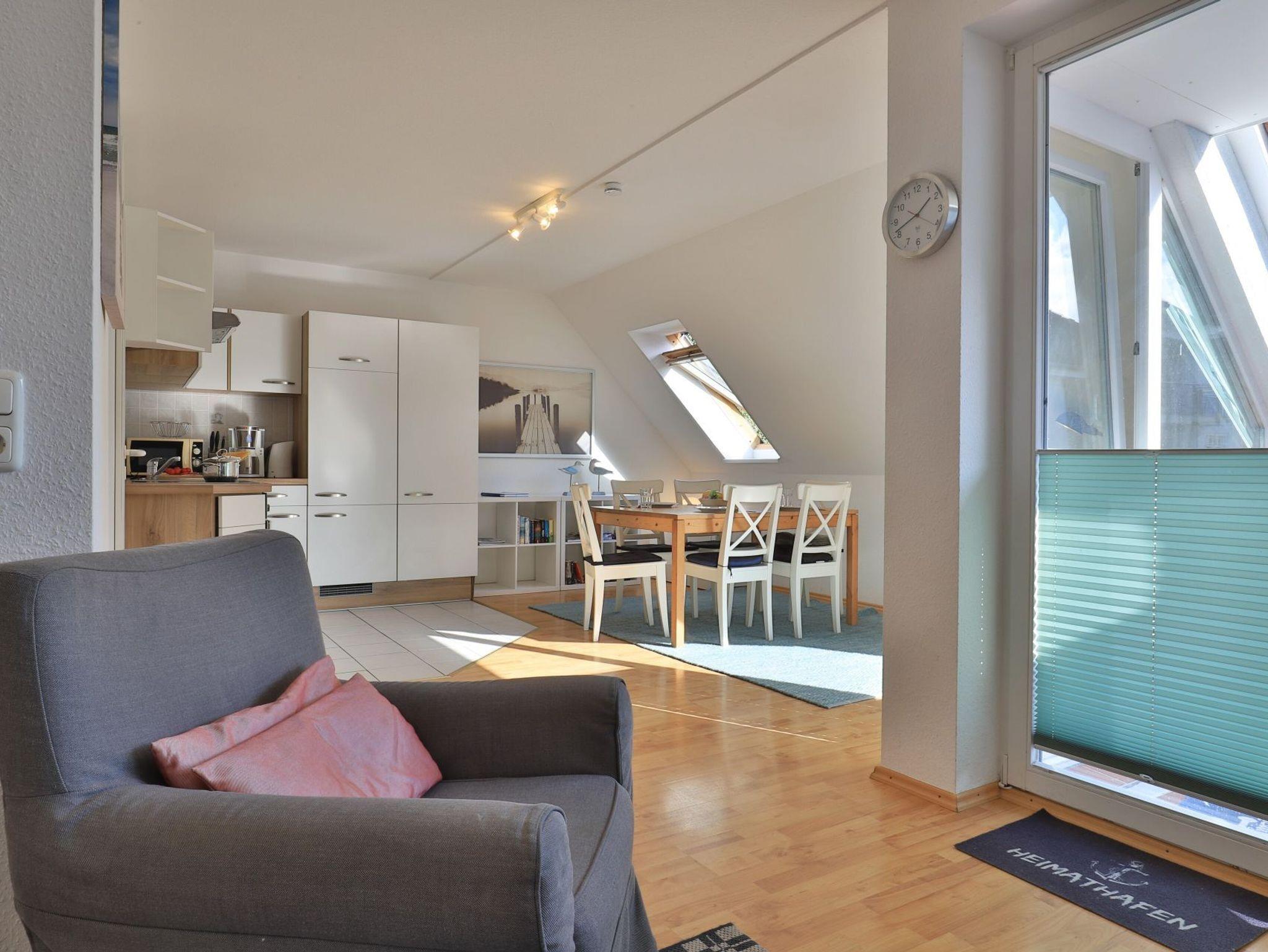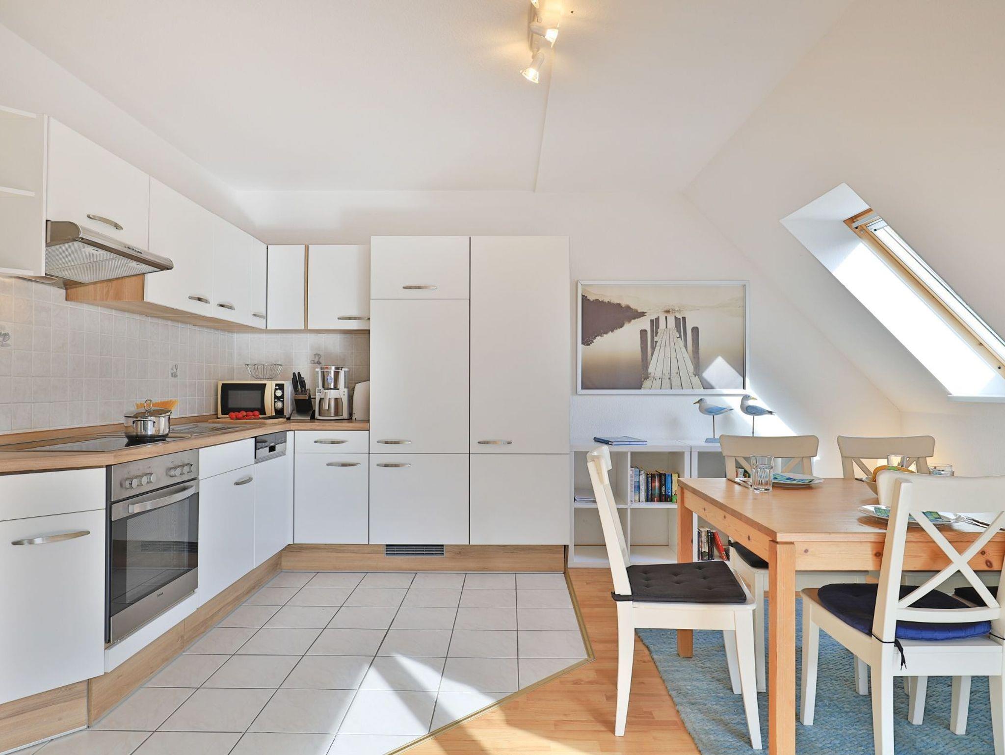 Die 3-Zimmer Maisonettenwohnung ?Likedeeler 37? mit Balkon, besitzt eine Wohnfläche von 85qm und ist für eine Belegung mit bis zu 5 Personen bestens geeignet. Diese Wohneinheit befindet sich im 2. Obergeschoss ? Fahrstuhl. Für technische Unterhaltung können Sie den Fernseher, DVD-Player sowie eine Musikanlage nutzen, zudem steht WLAN kostenfrei bereit. Im sehr komfortabel möblierten Wohn-/Essbereich empfängt Sie eine bequeme Sitzgruppe und weiteres Mobiliar. Ebenso ist ein großer Esstisch im Wohnbereich platziert. Die integrierte Wohnküche ist offen gestaltet und ermöglicht die Eigenversorgung mit: Ceranherd, Backofen, Mikrowelle, Dunstabzug, Kühlschrank mit integr. Gefrierfach, Geschirrspüler, Kaffeemaschine, Wasserkocher, Toaster usw. Ihre Urlaubsmahlzeiten können Sie bequem am Esstisch zu sich nehmen. An wärmeren Tagen genießen Sie den saisonal möblierten Balkon in östliche Ausrichtung zum Innenbereich der Appartementanlage. Über eine geschwungene Wohnraumtreppe erreichen Sie zwei separate Schlafzimmer, die sich in der oberen Wohnebene befinden. Einer der Schlafbereiche ist mit einem Doppelbett, Kleiderschrank eingerichtet. Im zweiten Schlafzimmer bzw. Kinderzimmer, erwartet Sie ein Etagenbett und ein Einzelbett. Für Familien mit Kleinkind befindet sich ein Kinderreisebett und ein Kinderhochstuhl in der Wohnung. Die Ferienwohnung bietet Ihnen ein modernisiertes Duschbad mit Waschtisch, WC. Zusätzlich ist ein Gäste-WC mit Dusche vorhanden. Hausgäste können im Untergeschoss sowohl Waschmaschine als auch Wäschetrockner gegen Gebühr nutzen. Ihr Fahrzeug parken Sie in der hauseigenen Tiefgarage auf einem fest zugeordneten Stellplatz. Mit dem Fahrstuhl gelangen Sie bequem zu den Wohnungsetagen. Im Haus gibt es eine gemeinschaftlich nutzbare Fahrrad Abstellmöglichkeit.
