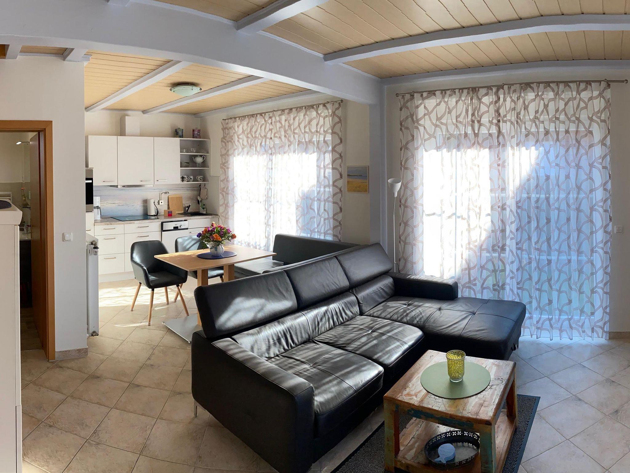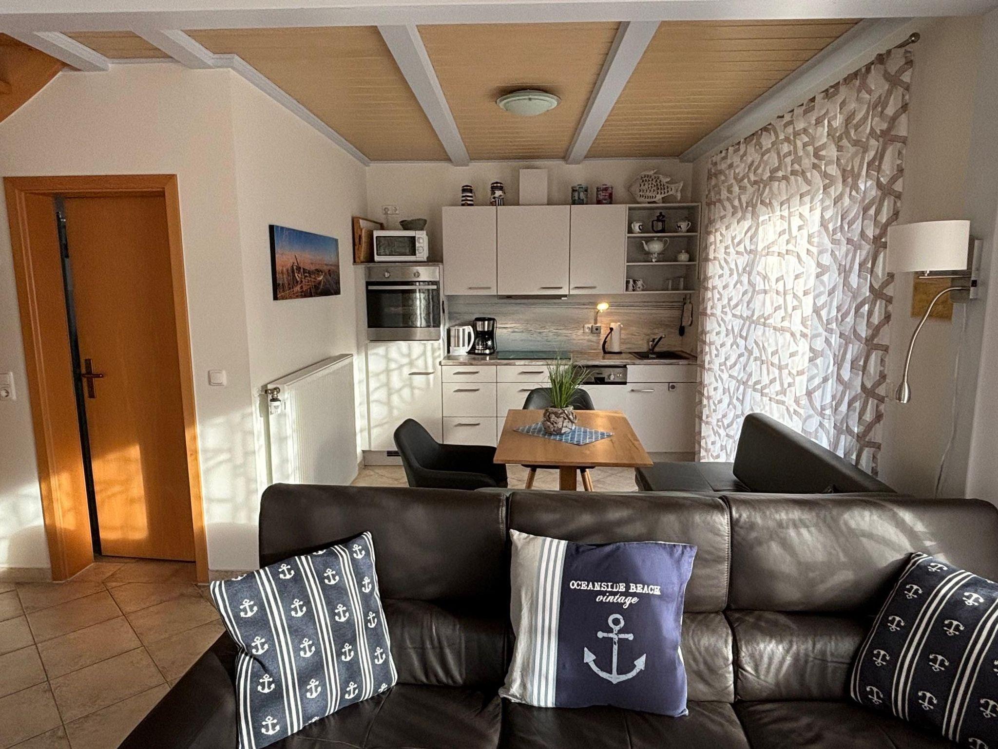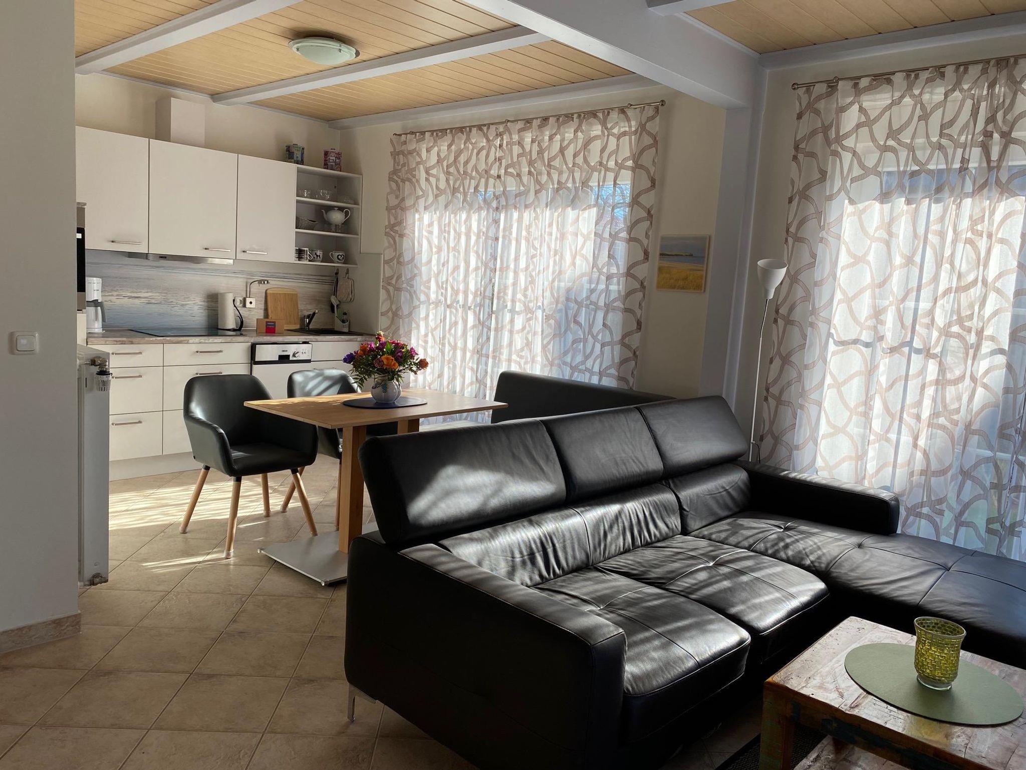 In unserer familienfreundlichen Doppelhaushälfte MARINA, ausgestattet für vier Personen, werden Sie sich wohlfühlen. Strand und zentrumsnah verbringen Sie Ihren Urlaub in ruhiger Umgebung. Vom großzügig ausgestatteten Wohn- Essbereich haben Sie den direkten Zugang zur Terrasse in Süd- Westlage. Hier können Sie ganztägig die Sonne genießen. Die offene Galerie im Obergeschoss ist ausgestattet mit einem Doppelbett, Kleiderschrank und einem Flat Screen TV. Von der Galerie erreichen Sie ein weiteres Zimmer mit zwei Einzelbetten. Im Tageslichtbad steht Ihnen eine Waschmaschine kostenlos zur Verfügung. Ein Kinderbett, Bettschutzgitter, Hochstuhl, Wickelauflage und Bollerwagen sind für die Kleinen vorhanden. Die Ladestation für Ihr Elektroauto steht Ihnen gegen Gebühr zur Verfügung. WLAN ist kostenlos vorhanden.