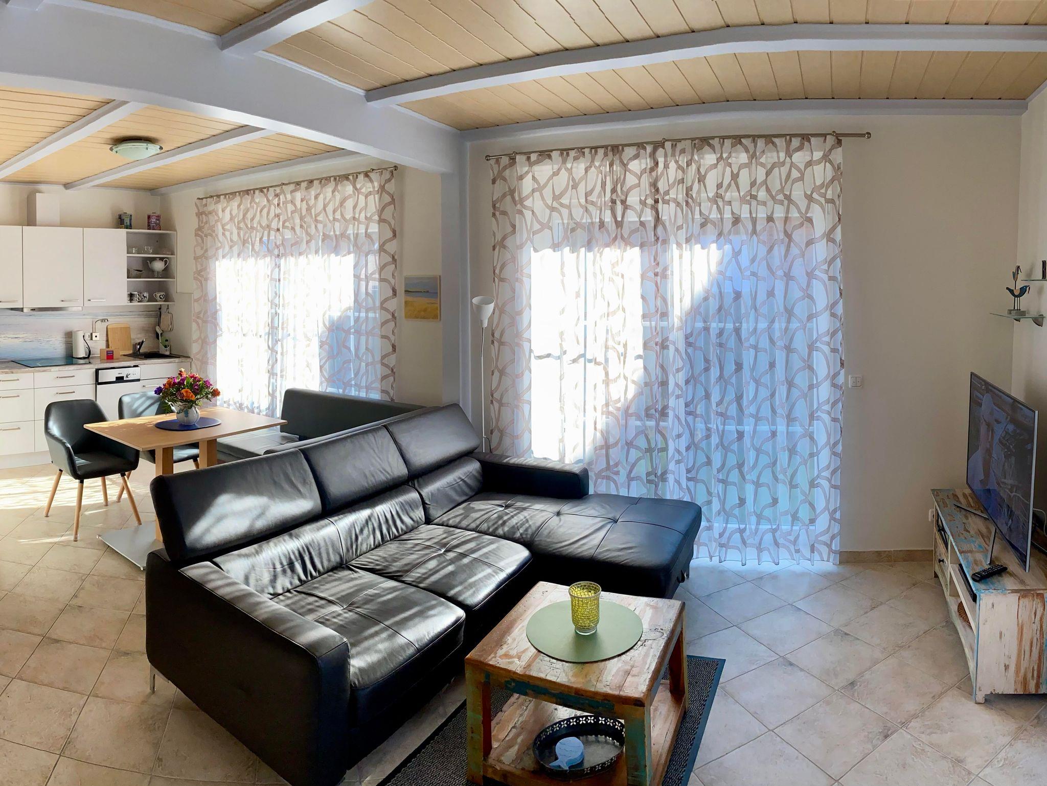 In unserer strand- und zentrumsnah gelegenen DHH MARINA, ausgestattet für Ô Personen, werden Sie sich wohlfühlen. Diese DHH ist ausgestattet mit einem großzügen Wohn- Essbereich mit Zugang zur Terrasse in Süd- Westausrichtung.Ýen Schlafbereich mit einem großen Doppelbett und einem zweiten TV finden Sie in der Gallerie im Obergeschoss.