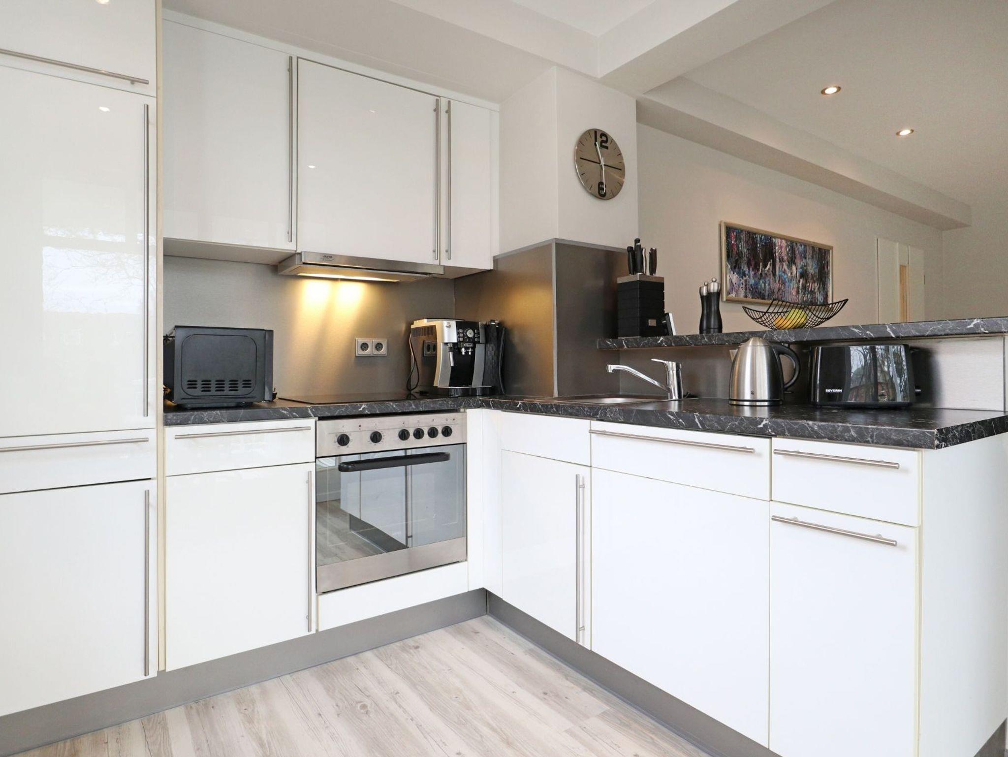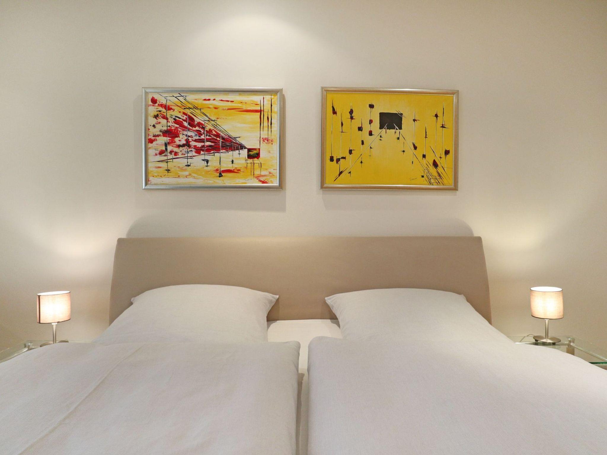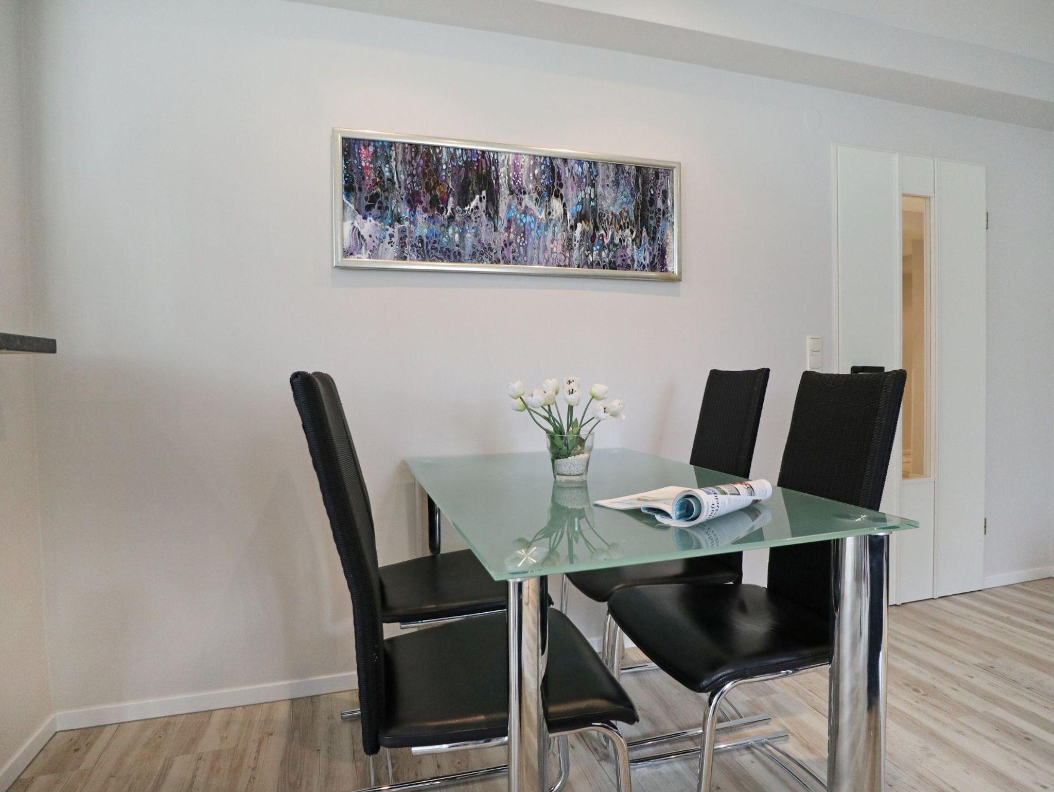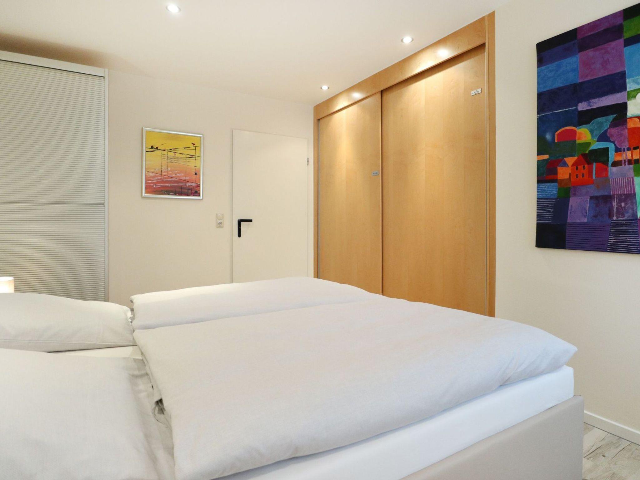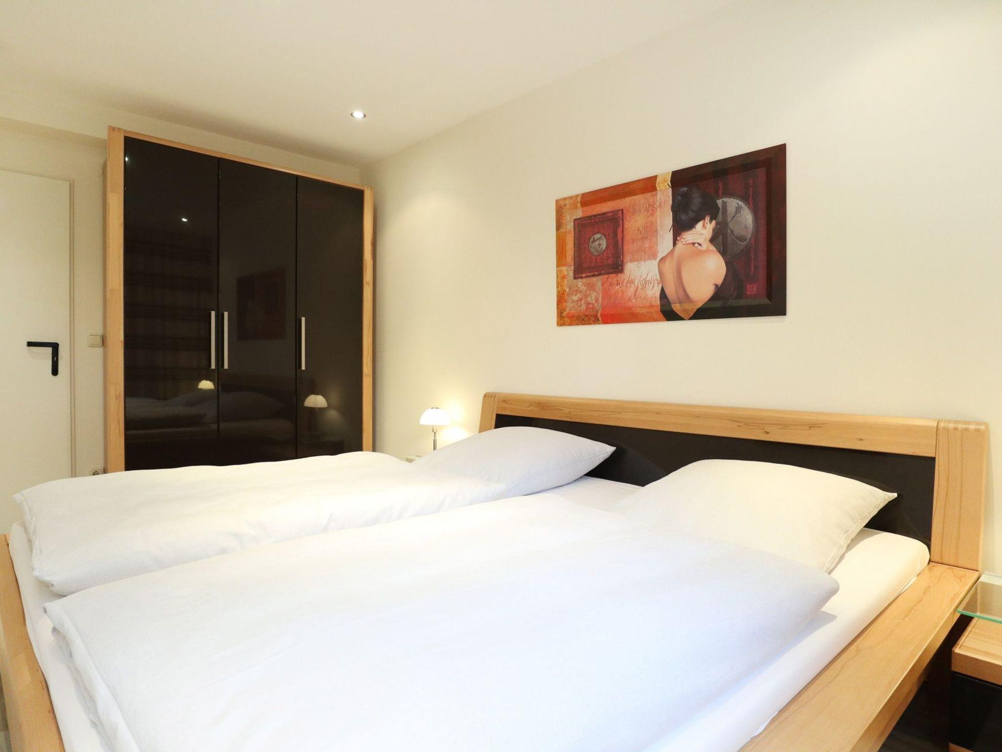 Die behagliche, komfortabel eingerichtete 2-Zimmer-Ferienwohnung befindet sich im 1. Obergeschoss und bietet auf 67qm Wohnfläche Platz für bis zu 4 Personen. Der gemütliche Wohn-/Essbereich ist mit zwei komfortablen Sofas, einem Relax-Sessel und einem großen Esstisch ausgestattet. Unterhaltung bieten ein Fernseher, DVD-Player, Videorecorder und eine Musikanlage. Den Internetzugang über WLAN nutzen Sie ohne Gebühr. Die separate Küche ist ideal für die Selbstversorgung und verfügt über Herd, Backofen, Kühlschrank mit Gefrierfach, Geschirrspüler sowie Toaster, Wasserkocher und Kaffeemaschine. Genießen Sie Ihre Mahlzeiten im Essbereich oder auf dem sonnigen, saisonal möblierten Balkon. Das geräumige Schlafzimmer bietet ein Doppelbett und einen Kleiderschrank, während das modernisierte Duschbad mit Waschtisch und WC ausgestattet ist. Eine Waschmaschine steht kostenfrei zur Verfügung, und Ihr PKW kann in der hauseigenen Tiefgarage geparkt werden, von wo aus Sie mit dem Fahrstuhl direkt zur Wohnungsetage gelangen.