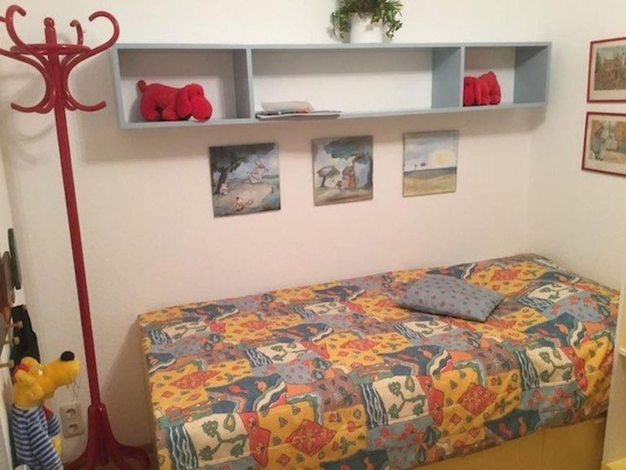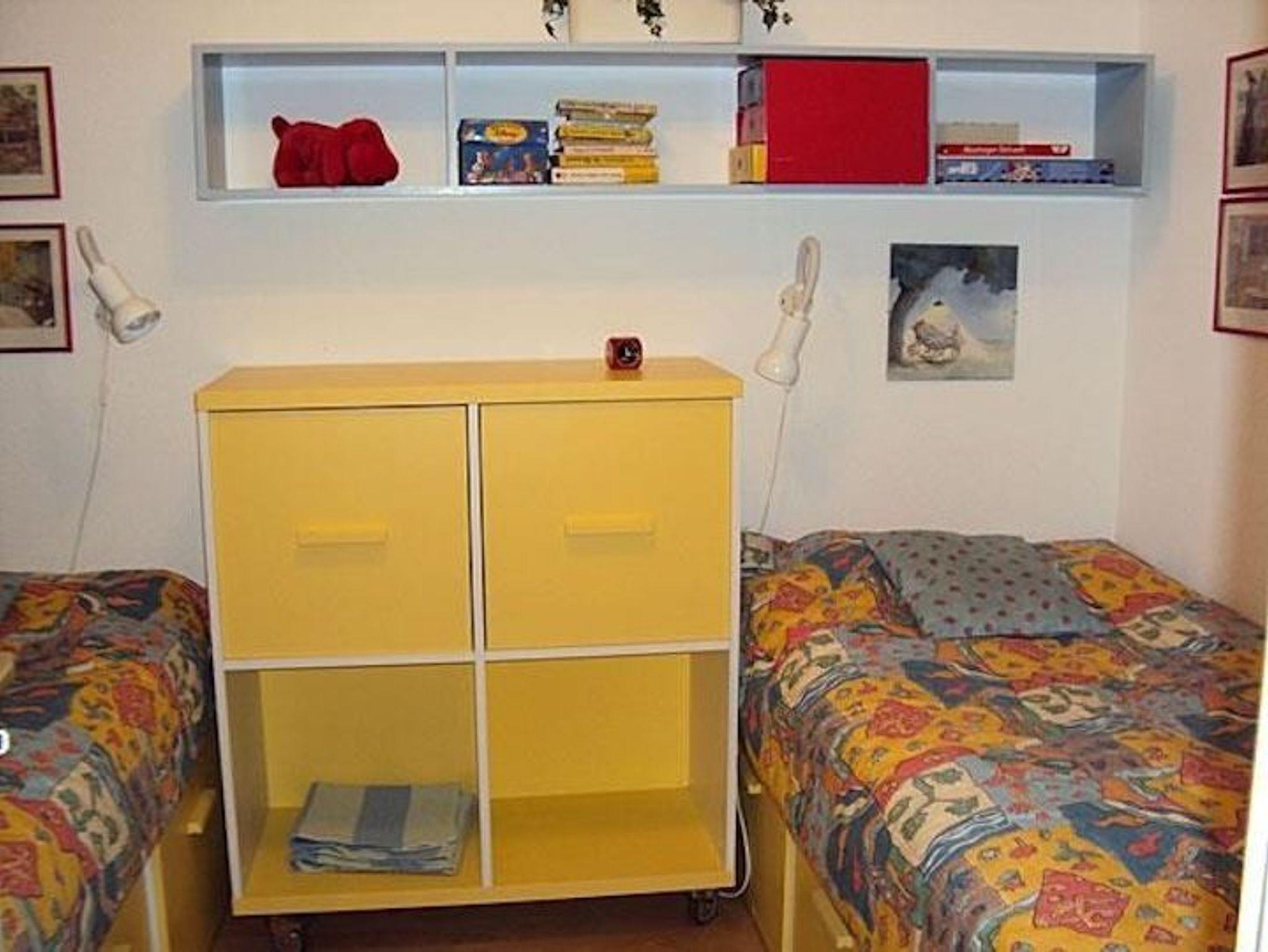 Das Schlafzimmer ist zudem mit 2 Einzelbetten (90 x 200 cm), Kleiderschrank sowie Ablageflächen ausgestattet. Es bietet sich als Kinder- und Spielzimmer an (Spiele und Kuscheltiere stehen zur Verfügung). Das Zimmer ist ebenfalls sehr gut für Senioren geeignet, da die Betten erhöht sind und somit einen komfortablen Ein- und Ausstieg bieten.
