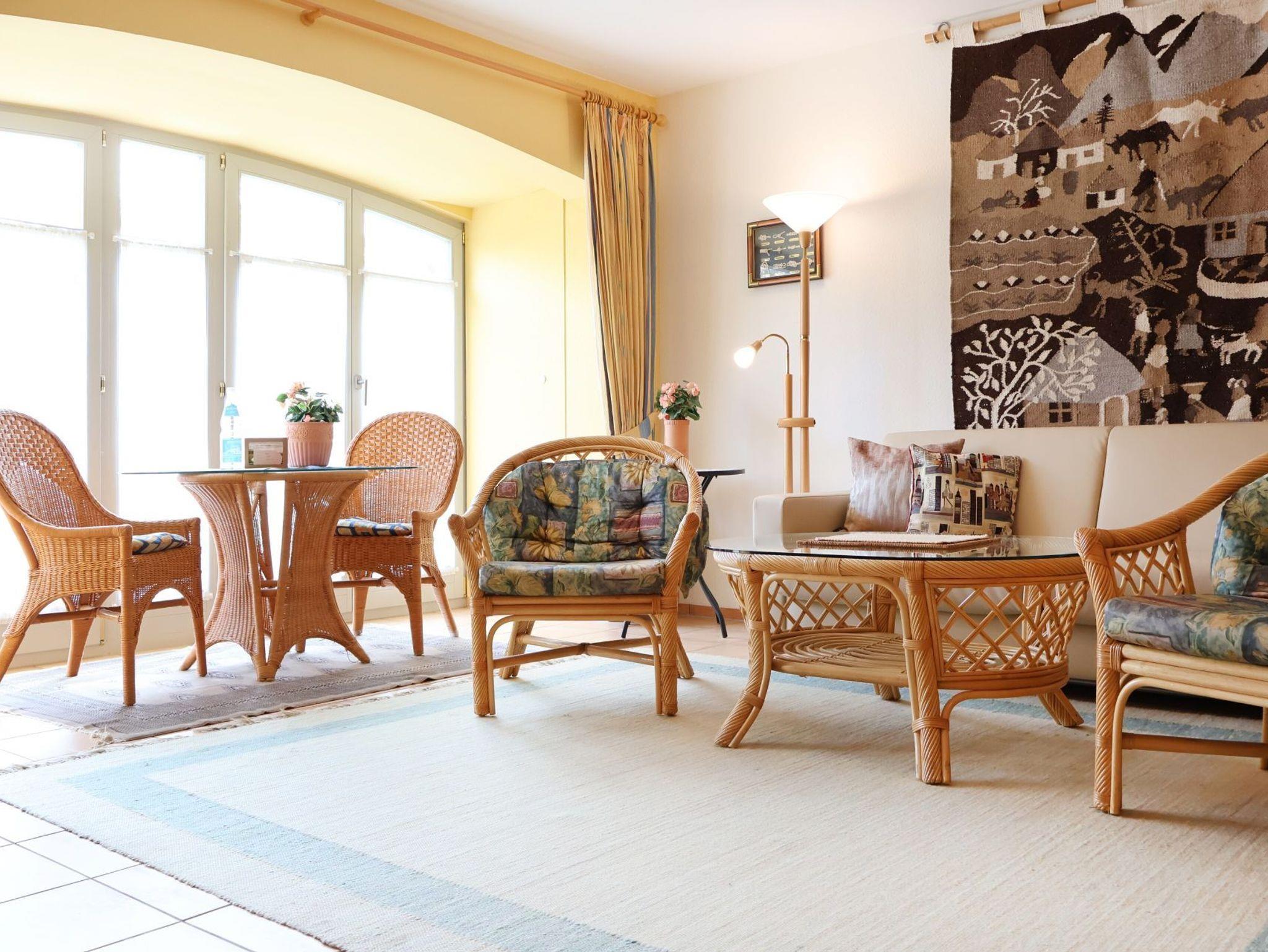 Für bis zu 2 Personen ist das im 1. Obergeschoss liegende mit 61m² Wohnfläche, sehr geräumige Komfort 2-Zimmer Appartement mit Balkon und Blick ins Grüne bestens ausgestattet. Es erwartet Sie ein heller Wohnbereich mit großen Fensterbögen sowie integrierter, vollständig ausgestatteter Küchenzeile ? wo Geschirrspüler, Kaffeemaschine (Senseo), Mikrowelle Ceranherd die Zubereitung von leckeren Urlaubsmahlzeiten unterstützen. Gemütliche Stunden verspricht die bequeme Couch und lädt zum Fernsehen (DVD), Lesen oder Musikhören ein. Ein separates Schlafzimmer bietet Entspannung mit Doppelbett, Sessel und geräumigem Kleiderschrank. In dem hell gefliesten Duschbad mit Fenster, können Sie eine Waschmaschine kostenfrei nutzen. Bei Anreise sind die Betten bereits bezogen und Handtücher liegen bereit. Gemeinschaftsabstellraum für Fahrräder.