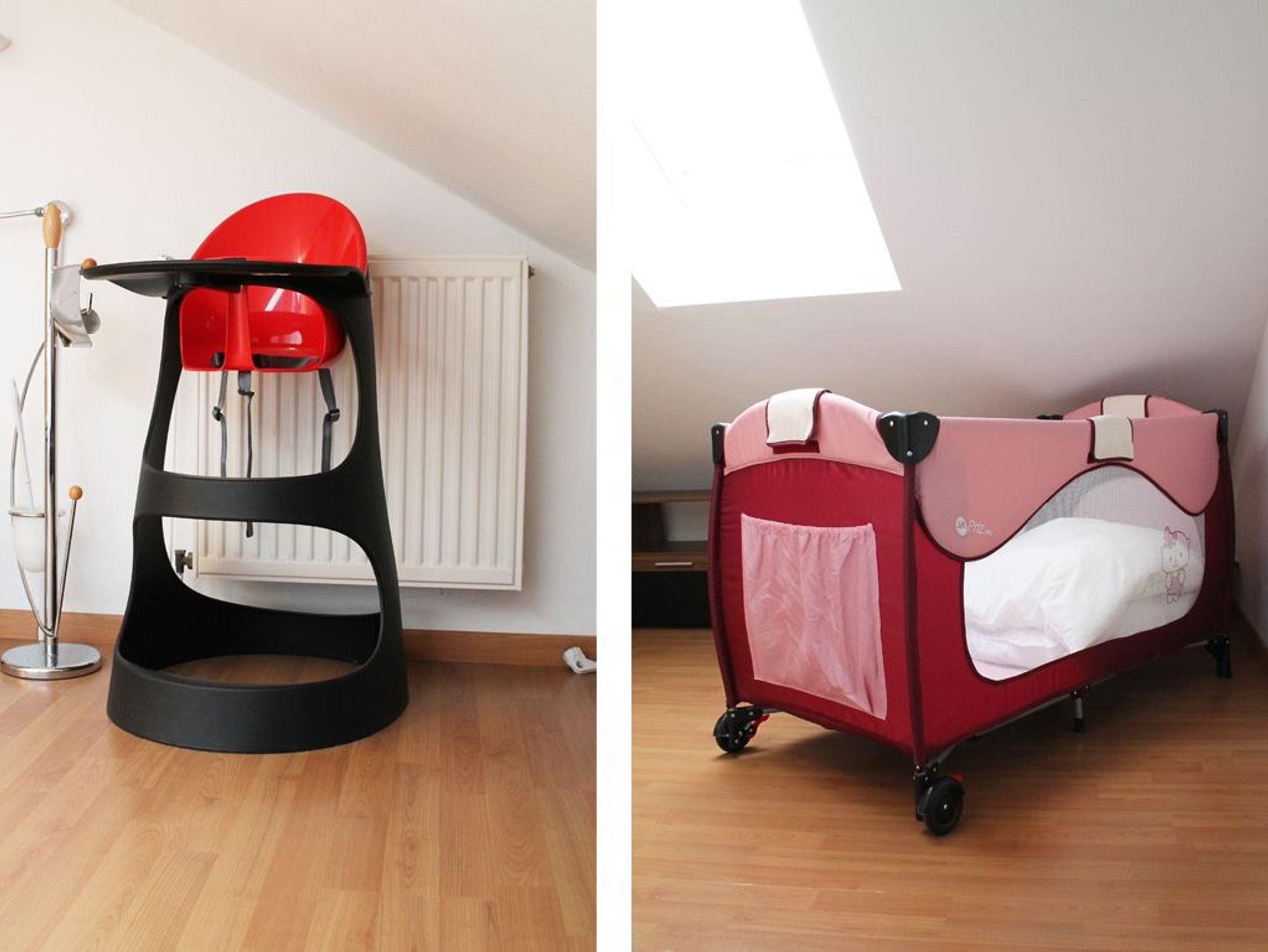 Im Erdgeschoss befinden sich ein Schlafzimmer mit Doppelbett und Kleiderschrank sowie ein Duschbad, Waschtisch, WC und Waschmaschinen Nutzung. Über eine Treppe gelangen Sie ins Obergeschoss mit einem weiteren Schlafzimmer mit Doppelbett, Kleiderschrank, 2. Fernseher. Ein Gäste-WC ist ebenso vorhanden. Familienfreundlich mit Kinderhochstuhl, Kinderbett, Spielzeug, Bollerwagen.