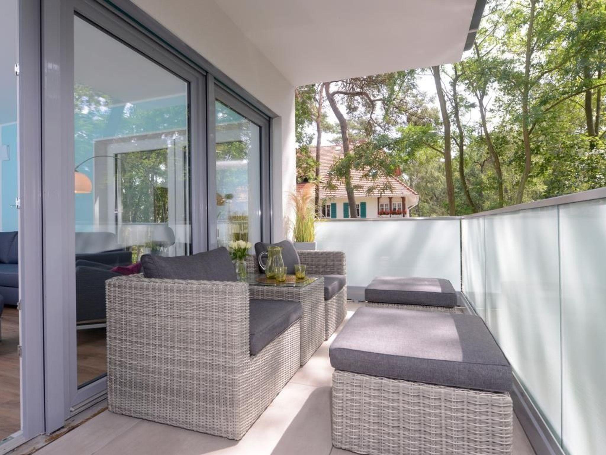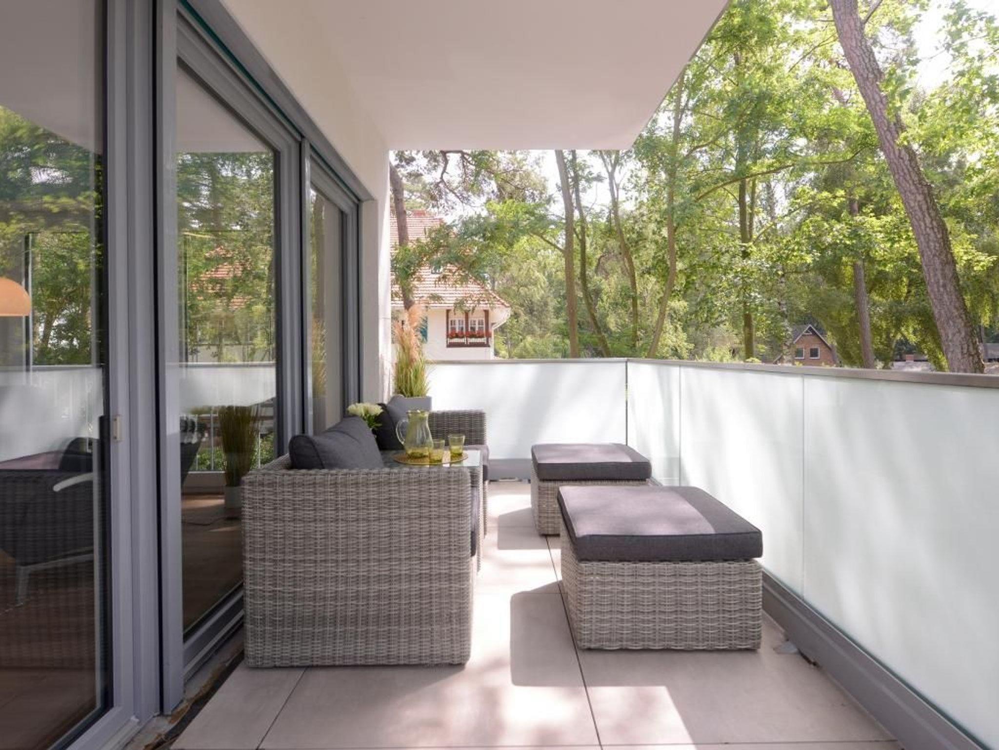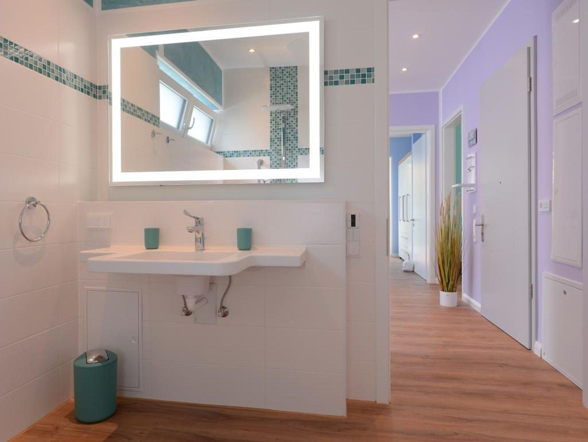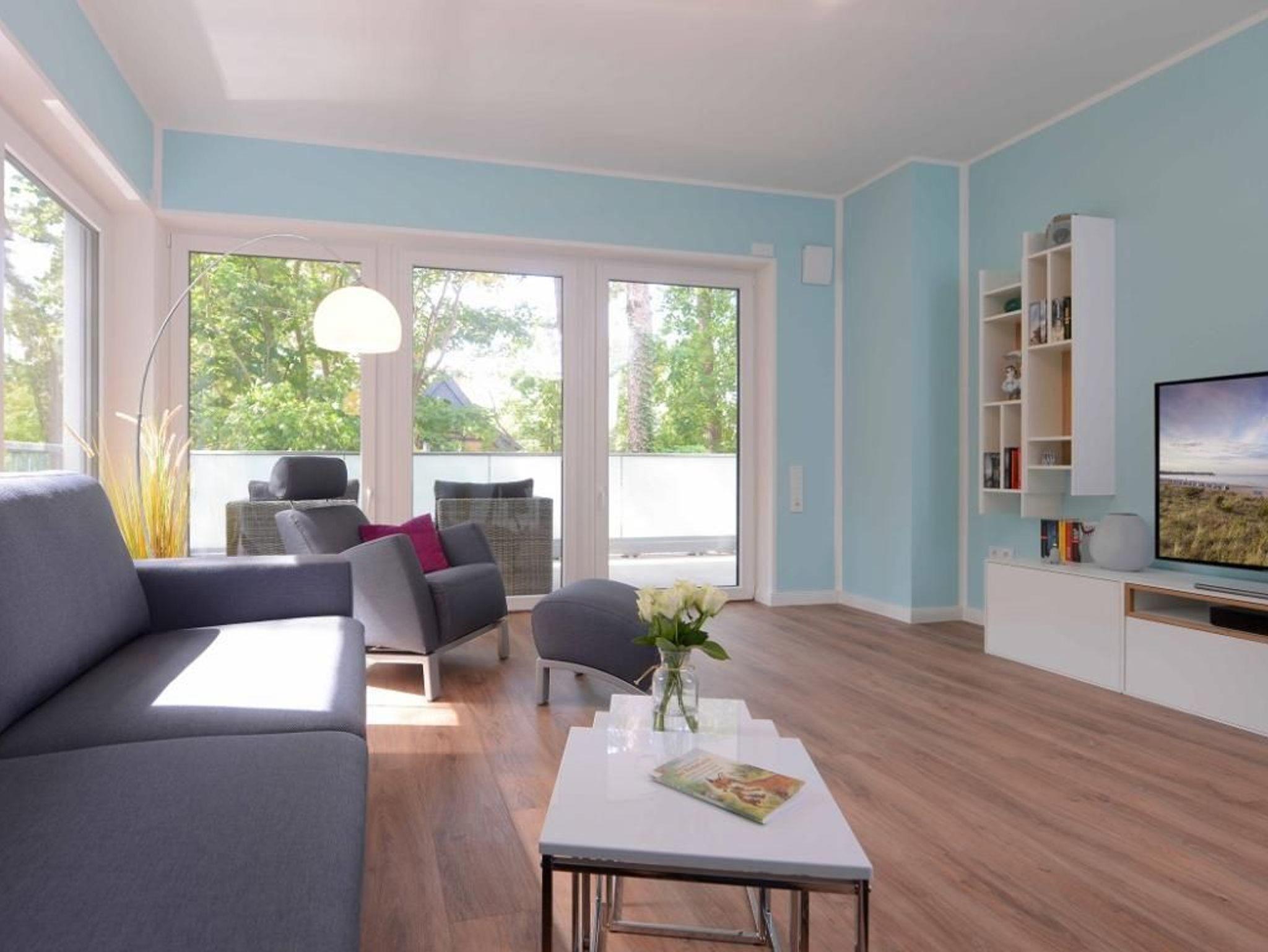Das barrierefreie Appartement mit zwei Balkonen bietet auf 70qm sehr komfortablen Wohnraum für bis zu 4 Personen und eignet sich ideal für einen Traumurlaub in strandnaher Lage. Zwei saisonale Balkone, ein großzügiger Wohn- und Essbereich, eine voll ausgestattete Küche sowie ein separates Schlafzimmer und eine ausziehbare Couch im Wohnbereich, schaffen beste Voraussetzungen für erholsame Ferientage mit bis zu 4 Personen. Der helle Wohnbereich, mit bodentiefen Fenstern, ist mit einem hochwertigen Sofa, das in ein Schlafsofa mit zwei weiteren Schlafplätzen umfunktioniert werden kann, sowie einem Essplatz und einer modernen Küche eingerichtet. Für die optimale Selbstversorgung stehen Herd, Backofen, Mikrowelle, Geschirrspüler und weitere umfangreiche Ausstattung zur Verfügung. Die Geschirrschränke sind in handelsüblicher Höhe angebracht. WLAN, ein internetfähiger Fernseher und eine Musikanlage sorgen für zeitgemäßen Komfort. Das Wohlfühlschlafzimmer verfügt ebenfalls über einen Balkonzugang und ist hochwertig mit Boxspringbett und Kleiderschrank möbliert. Ein zweites Fernsehgerät ist im Schlafzimmer vorhanden. Bei Anreise sind bezogene Betten für zwei Personen inklusive. Das moderne, rollstuhlgerechte Tageslichtbad ist mit ebenerdiger Dusche, unterfahrbarem Waschbecken - Höhe 75cm- sowie einem WC mit Sitzhöhe 49cm und Haltegriff in 85cm Höhe ausgestattet. Auch eine Waschmaschine kann genutzt werden. Fußbodenheizung und Klimatisierung sorgen ganzjährig für angenehme Temperaturen. Elektrische Verschattung sowie ein extrabreiter Tiefgaragenstellplatz gegen Gebühr (max. Höhe 1,95 m, max. Länge 5,30 m) und eine Fahrradabstellmöglichkeit für mitgebrachte Fahrräder runden das Angebot ab. Ein komfortables Feriendomizil für Gäste, die Barrierefreiheit, Erholung und die Nähe zum Meer ? nur 50Meter- schätzen. Nichtraucher. Keine Haustiere. Sie erreichen das Appartement bequem mit dem Lift.