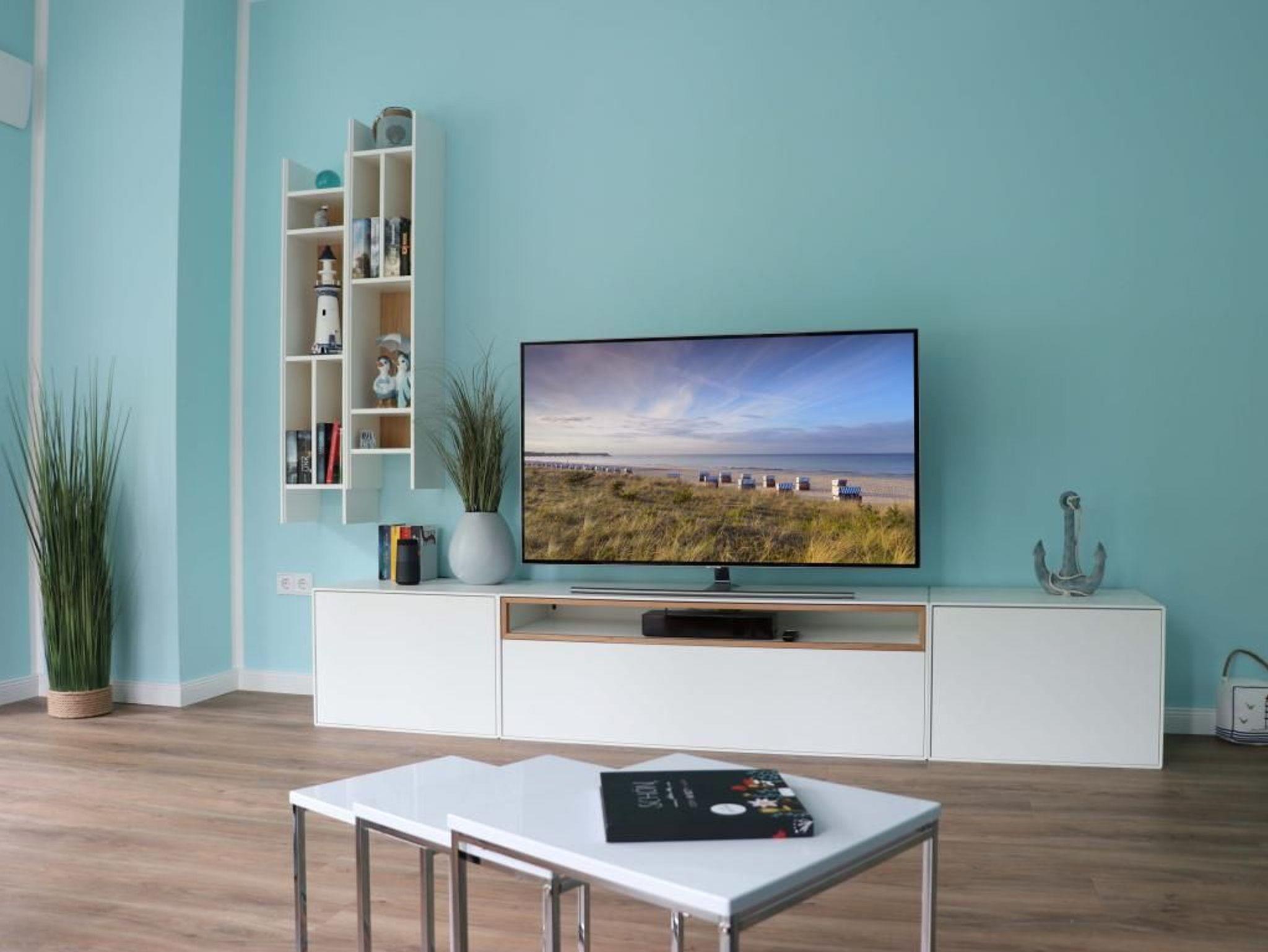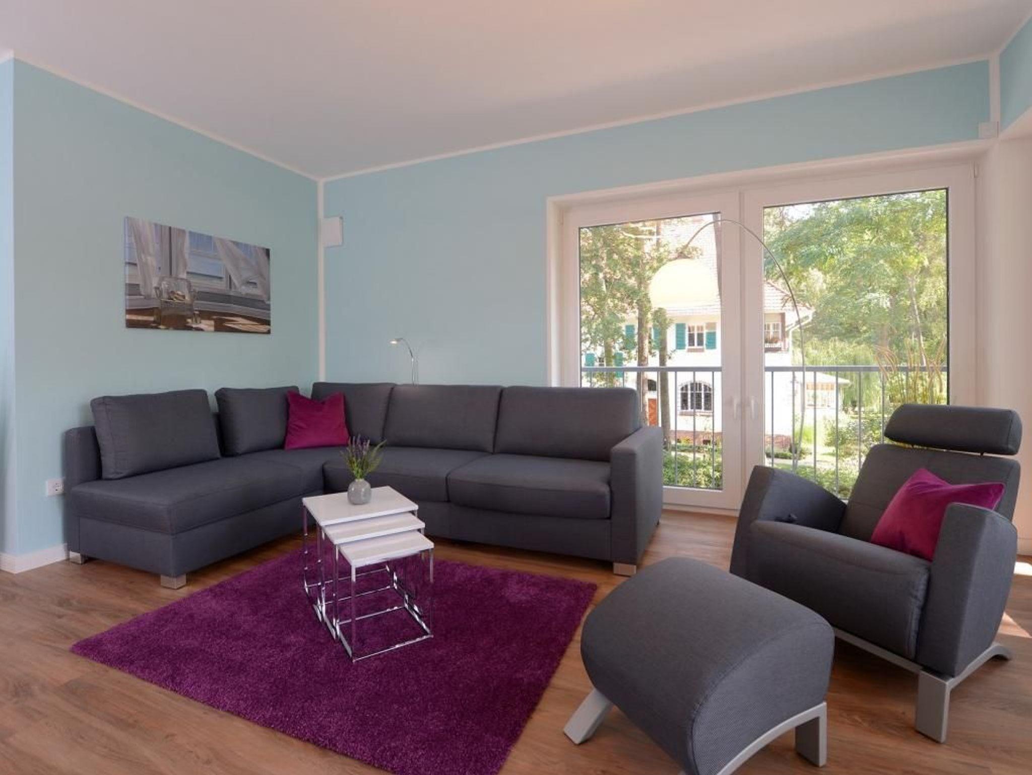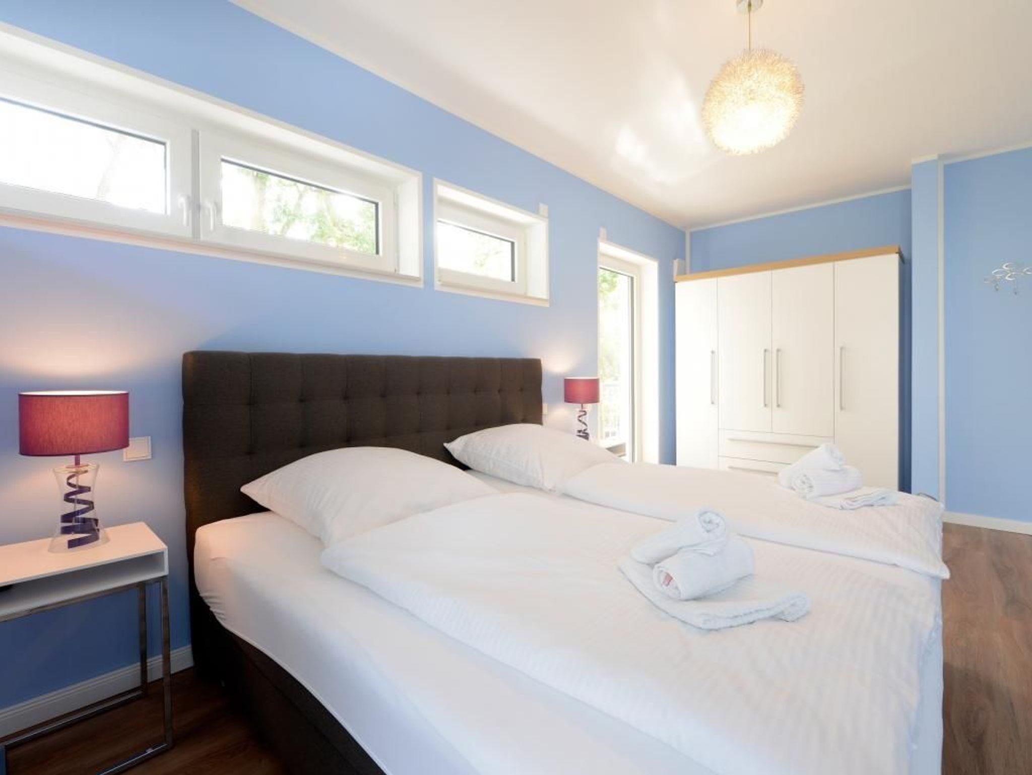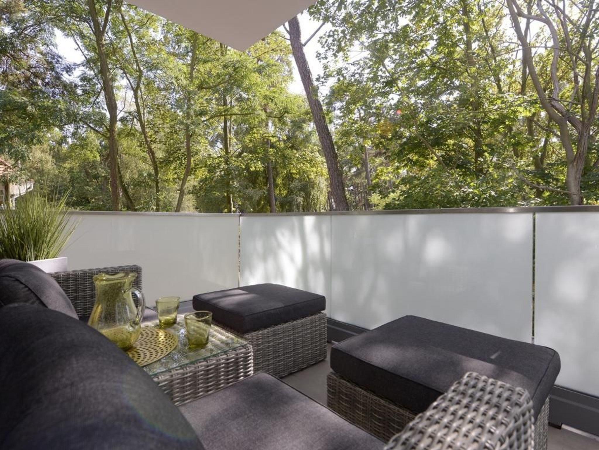 Das barrierefreie Appartement mit zwei Balkonen bietet auf 70qm sehr komfortablen Wohnraum für bis zu 4 Personen und eignet sich ideal für einen Traumurlaub in strandnaher Lage. Zwei saisonale Balkone, ein großzügiger Wohn- und Essbereich, eine voll ausgestattete Küche sowie ein separates Schlafzimmer und eine ausziehbare Couch im Wohnbereich, schaffen beste Voraussetzungen für erholsame Ferientage mit bis zu 4 Personen. Der helle Wohnbereich, mit bodentiefen Fenstern, ist mit einem hochwertigen Sofa, das in ein Schlafsofa mit zwei weiteren Schlafplätzen umfunktioniert werden kann, sowie einem Essplatz und einer modernen Küche eingerichtet. Für die optimale Selbstversorgung stehen Herd, Backofen, Mikrowelle, Geschirrspüler und weitere umfangreiche Ausstattung zur Verfügung. Die Geschirrschränke sind in handelsüblicher Höhe angebracht. WLAN, ein internetfähiger Fernseher und eine Musikanlage sorgen für zeitgemäßen Komfort. Das Wohlfühlschlafzimmer verfügt ebenfalls über einen Balkonzugang und ist hochwertig mit Boxspringbett und Kleiderschrank möbliert. Ein zweites Fernsehgerät ist im Schlafzimmer vorhanden. Bei Anreise sind bezogene Betten für zwei Personen inklusive. Das moderne, rollstuhlgerechte Tageslichtbad ist mit ebenerdiger Dusche, unterfahrbarem Waschbecken - Höhe 75cm- sowie einem WC mit Sitzhöhe 49cm und Haltegriff in 85cm Höhe ausgestattet. Auch eine Waschmaschine kann genutzt werden. Fußbodenheizung und Klimatisierung sorgen ganzjährig für angenehme Temperaturen. Elektrische Verschattung sowie ein extrabreiter Tiefgaragenstellplatz gegen Gebühr (max. Höhe 1,95 m, max. Länge 5,30 m) und eine Fahrradabstellmöglichkeit für mitgebrachte Fahrräder runden das Angebot ab. Ein komfortables Feriendomizil für Gäste, die Barrierefreiheit, Erholung und die Nähe zum Meer ? nur 50Meter- schätzen. Nichtraucher. Keine Haustiere. Sie erreichen das Appartement bequem mit dem Lift.