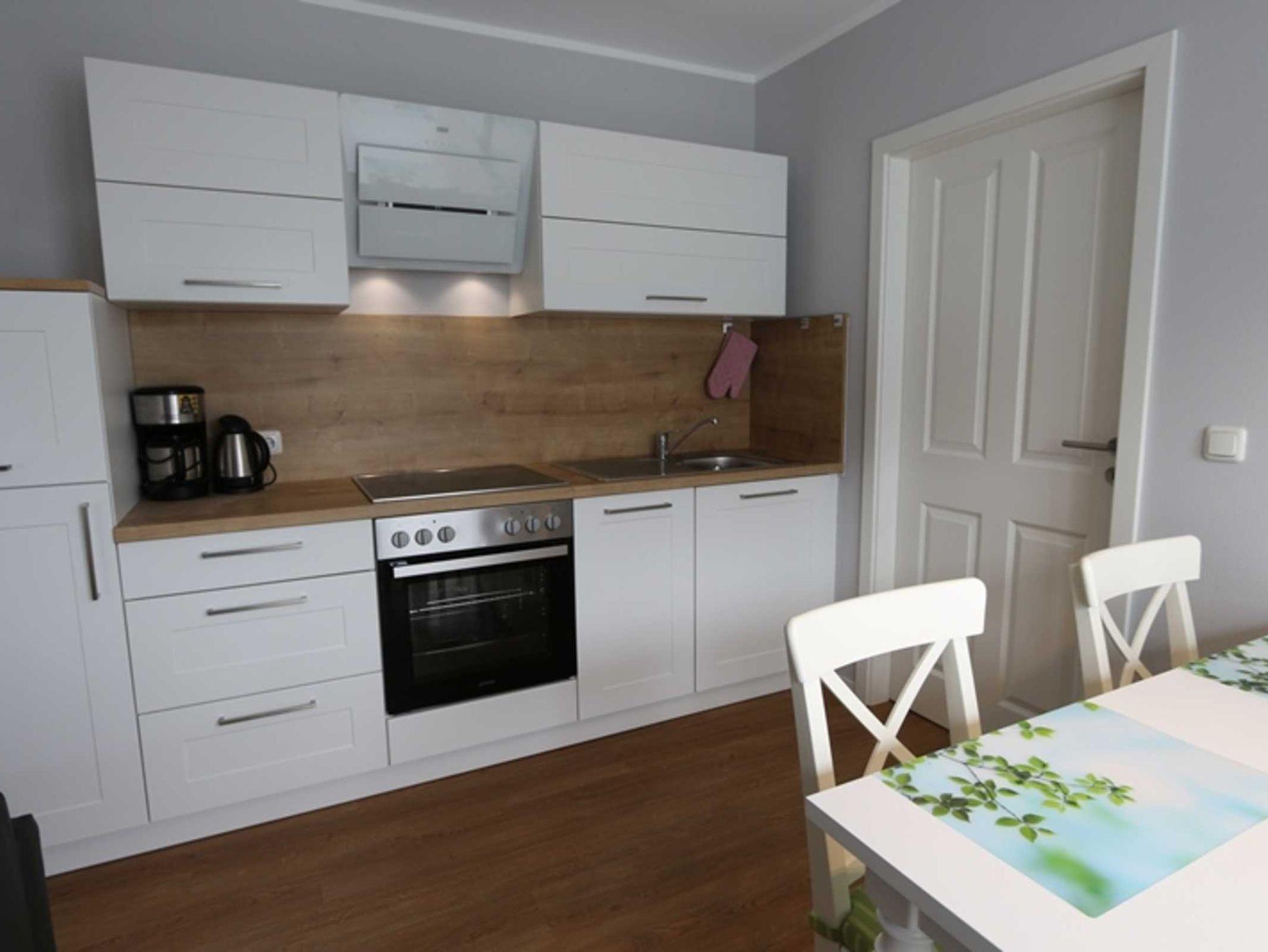 Der Wohn-/Essbereich verfügt über eine moderne Nolte-Einbauküche mit Cerankochfeld, Backofen, Mikrowelle mit Ofenfunktion und Geschirrspüler. Eine Vielzahl an Küchenutensilien ? darunter Toaster, Kaffeemaschine, Wasserkocher und Geschirr ? runden das Angebot ab. Die hochwertige Ledercouch mit Ottomane lässt sich mühelos zu einem bequemen Bett für zwei Personen umbauen.