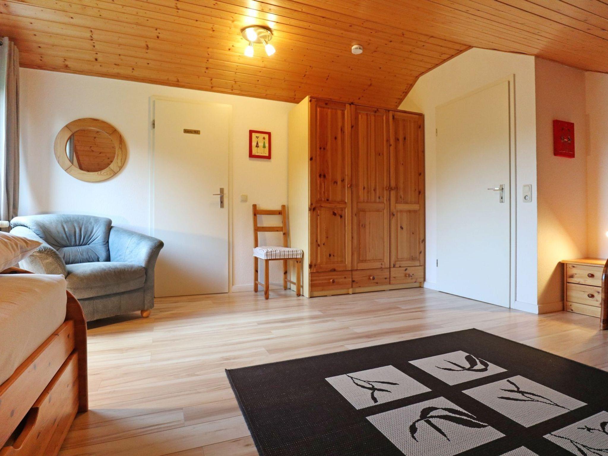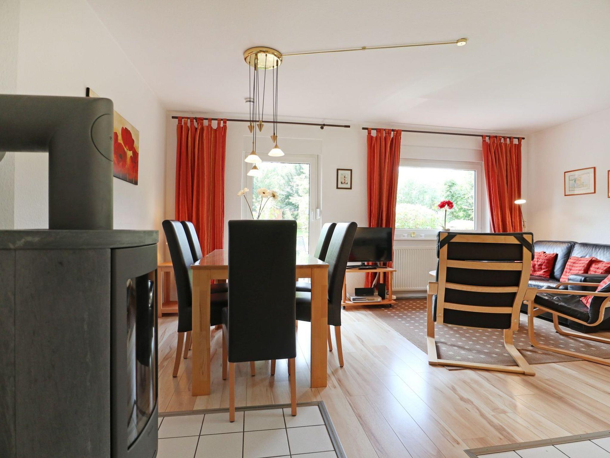 Das Ferien Reihenhaus ? Urlauberdorf 52B - mit Süd Terrasse bietet auf 62qm familienfreundliche Ferien zum Wohlfühlen. Der gemütliche Wohn- und Essbereich ist mit einem Sofa, Lesesessel, Kaminofen, Fernseher, Musikanlage, WLAN und einem Esstisch ausgestattet ? ideal für entspannte Stunden mit der Familie. Zwei separate Schlafzimmer sowie ein Duschbad und ein Gäste-WC sorgen für Komfort und Privatsphäre. Die integrierte Küchenzeile ist gut ausgestattet mit Herd, Backofen, Mikrowelle, Geschirrspüler, Kaffeemaschine, Wasserkocher, Toaster u.v.m. Erholung finden Sie auf der saisonal möblierten Süd Terrasse. Im Erdgeschoss befinden sich ein Schlafzimmer mit Doppelbett und Kleiderschrank sowie ein Tageslicht Duschbad mit Waschtisch, Fön, WC und kostenfreier Waschmaschinen Nutzung. Über eine Treppe gelangen Sie ins Obergeschoss mit einem weiteren Schlafzimmer mit zwei Einzelbetten, Kleiderschrank, Sitzgelegenheit, 2. Fernseher. Ein Gäste-WC sowie ein Wäschetrockner sind auf dieser oberen Etage ebenso vorhanden. Auch ein Bügeleisen und Bügelbrett können genutzt werden. Familienfreundlich gehören ein Kinderhochstuhl, Kinderbett, Bollerwagen zur Ausstattung. Das Nichtraucherhaus ist für bis zu 4 Personen ideal geeignet, ein PKW-Stellplatz befindet sich kostenfrei am Haus. Weitere PKW-Stellplätze stehen in der Umgebung im öffentlichen Bereich kostenpflichtig zur Verfügung. Haustiere nicht erlaubt. Das Laden von Elektro und Hybridfahrzeugen ist nicht gestattet. Hiervon sind Akkus von E-Bikes & Pedelecs (unter Aufsicht) ausgenommen.