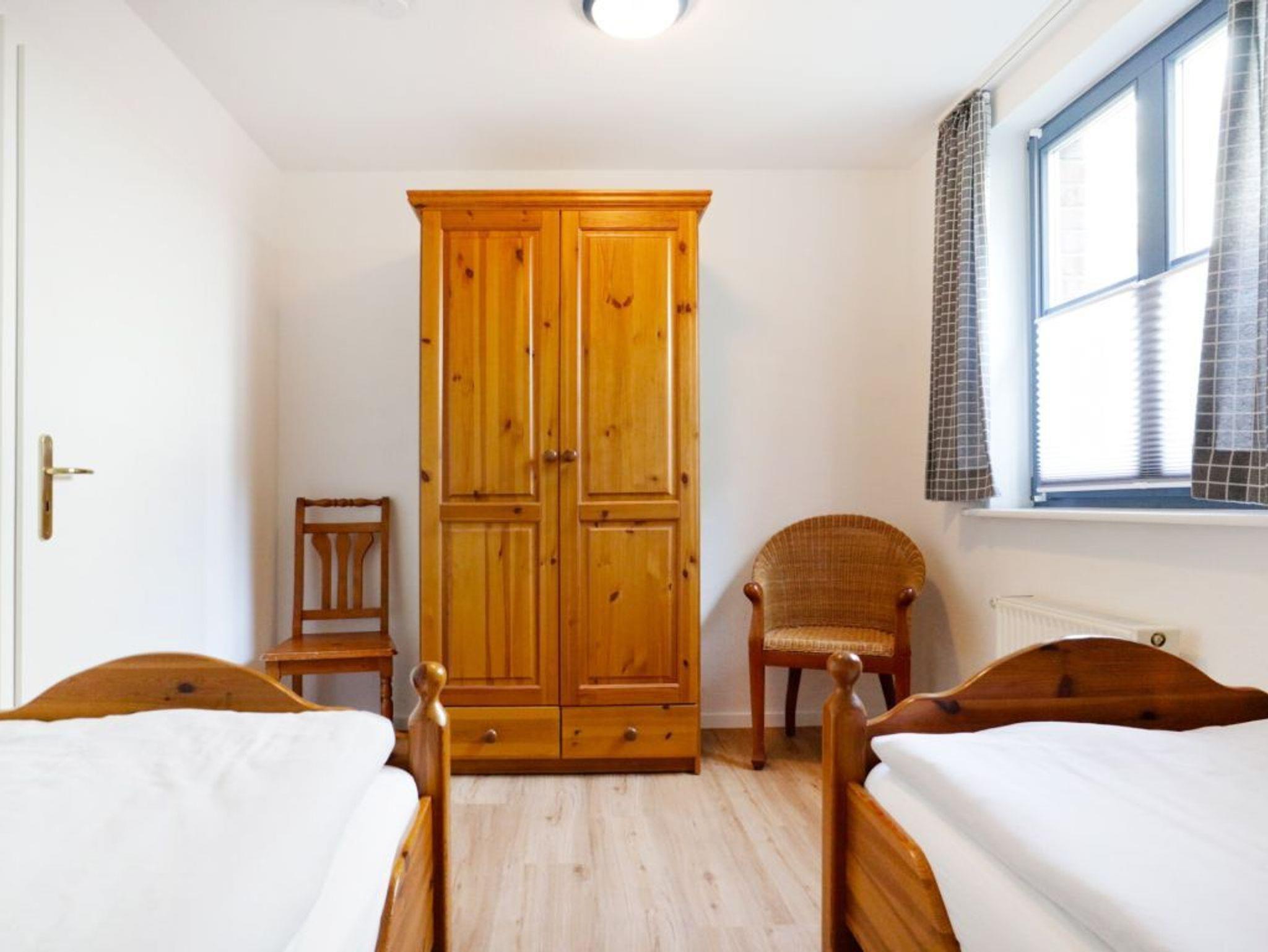 Für Gäste, die mit ihrem Hund anreisen möchten, ist die 2- Zimmer Ferienwohnung Papillon 6-4 mit Terrasse und Gartennutzung gut geeignet. Die Wohnfläche beträgt 55qm und ermöglicht eine Belegung mit bis zu 4 Personen. Den Internetzugang über WLAN nutzen Sie kostenfrei. Es empfängt Sie ein zweckmäßig möbliertes Appartement mit einem Wohn-Essbereich, in dem ein ausziehbares Sofa zwei zusätzliche Schlafmöglichkeiten bietet. Ein Esstisch sowie Fernsehgerät und Musikanlage sind ebenfalls vorhanden. Eine offene Küchenzeile mit Herd, Backofen, Mikrowelle, Geschirrspüler sowie Kaffeemaschine, Toaster und Wasserkocher ermöglicht Ihnen die Selbstversorgung. Des Weiteren verfügt das Ferienappartement über ein separates Schlafzimmer mit zwei Einzelbetten und Kleiderschrank. Selbstverständlich ist ein Duschbad mit WC vorhanden, welches sich über ein Fenster gut belüften lässt. Für mitgebrachte Fahrräder können Sie im Kellergeschoss einen Abstellraum nutzen. Hier befinden sich auch Waschmaschine und Wäschetrockner gegen Gebühr. Kostenfrei parken Sie Ihren PKW auf einem reservierten Außenstellplatz nah am Ferienhaus. Bitte beachten Sie, dass in dieser Wohneinheit geraucht werden darf und auch Haustiere gestattet sind.