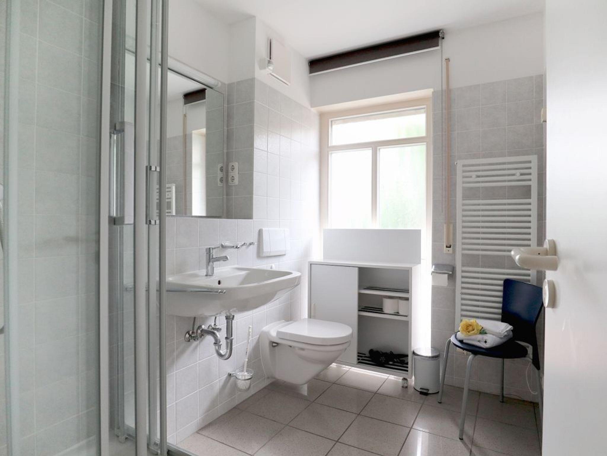 Die Wohnung besitzt ein geräumiges Tageslicht Duschbad mit Waschtisch, Föhn, Handtuchheizung, WC.