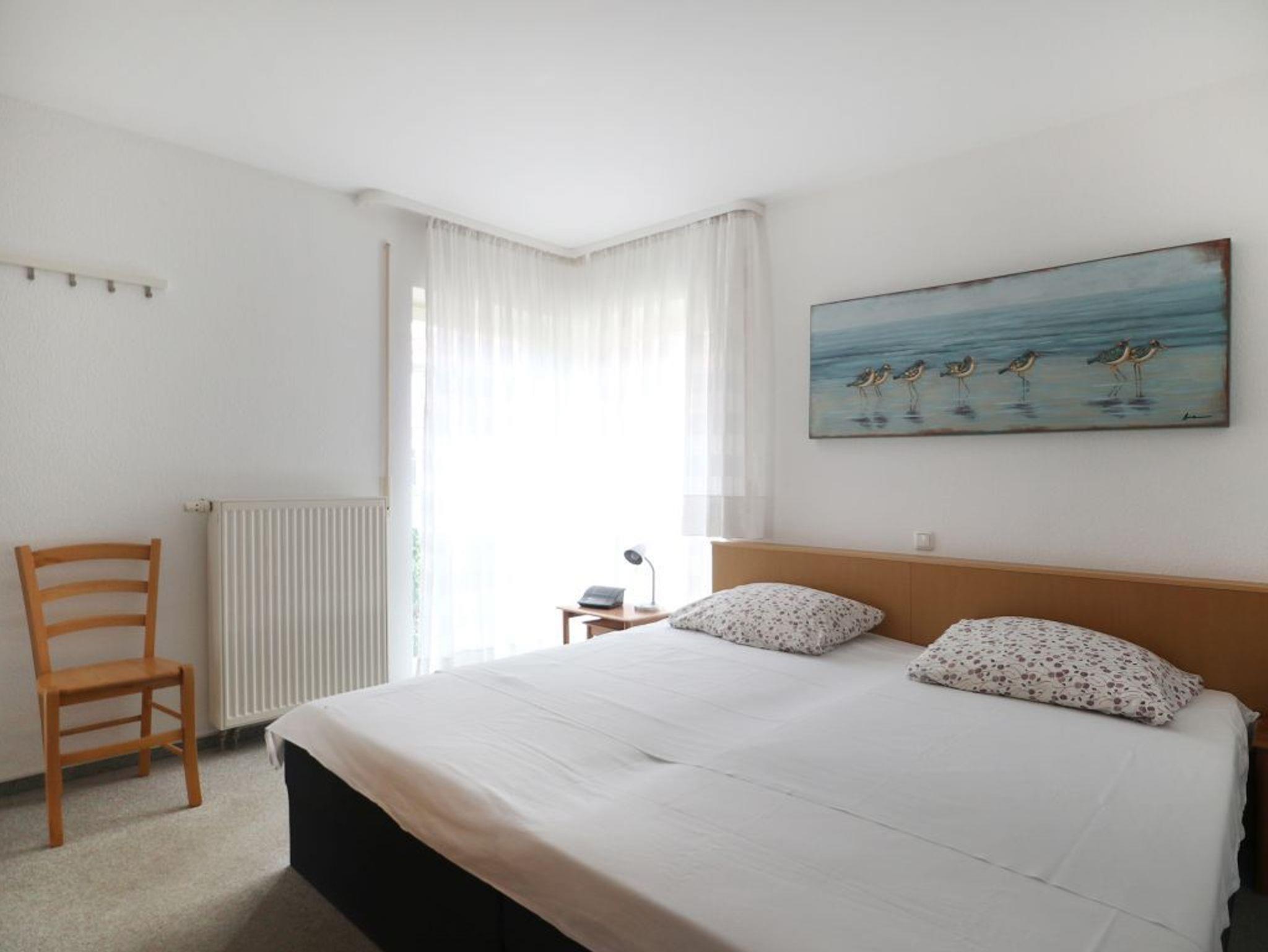 Das sehr komfortabel eingerichtete 2-Zimmer Ferienappartement mit Balkon, befindet sich im 1.Obergeschoss des Hauses. Mit einer Wohnfläche von 60qm ist das Domizil für eine Belegung mit max. 4 Personen geeignet. In dem, im gehobenen Stil möblierten Wohn-Essbereich erwartet Sie eine Komfort Couch mit Ruhesessel und Möglichkeit zur Beinablage. Ein Esstisch sowie Fernseher, Musikanlage und gebührenfreies WLAN sind ebenfalls vorhanden. Hervorzuheben sind die beiden Einzelschrankbetten jeweils 0,90m x 1,90m, die Ihnen zwei weitere, bequeme Schlafmöglichkeiten bieten.