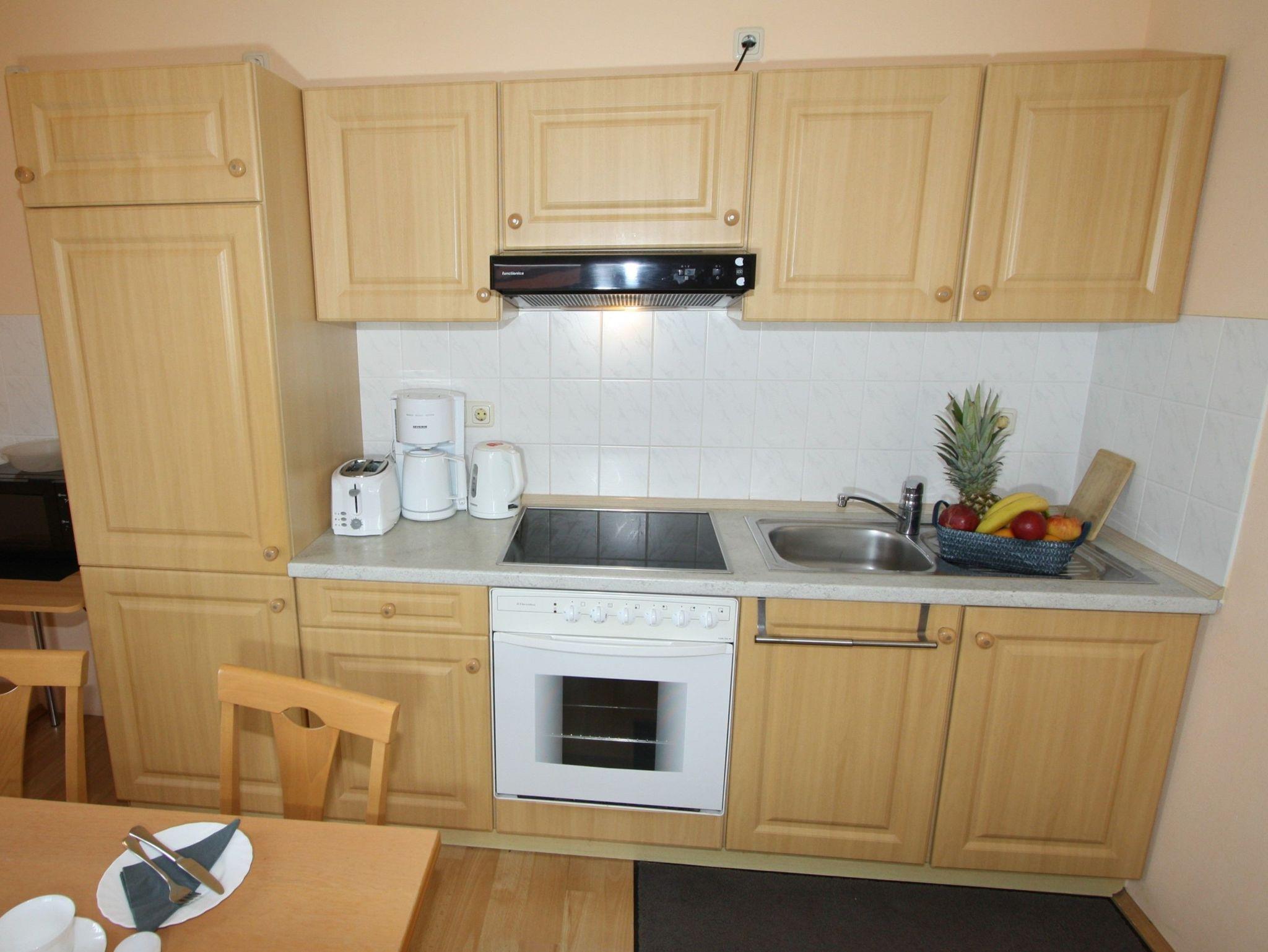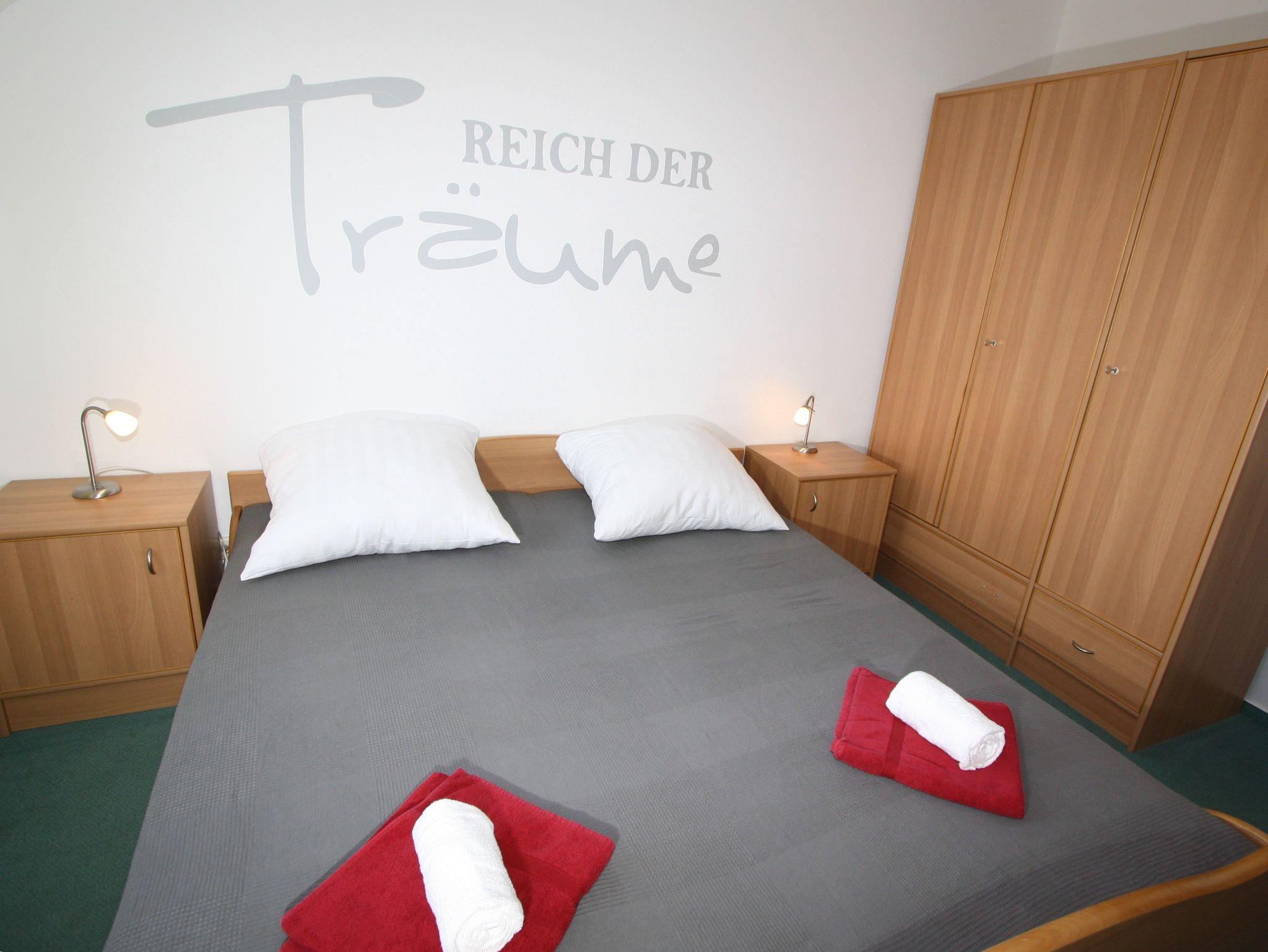 Sie wohnen in einem 2-Zimmer-Appartement bis 4 Personen, auf ca. 43 m² im Dachgeschoss. 1
