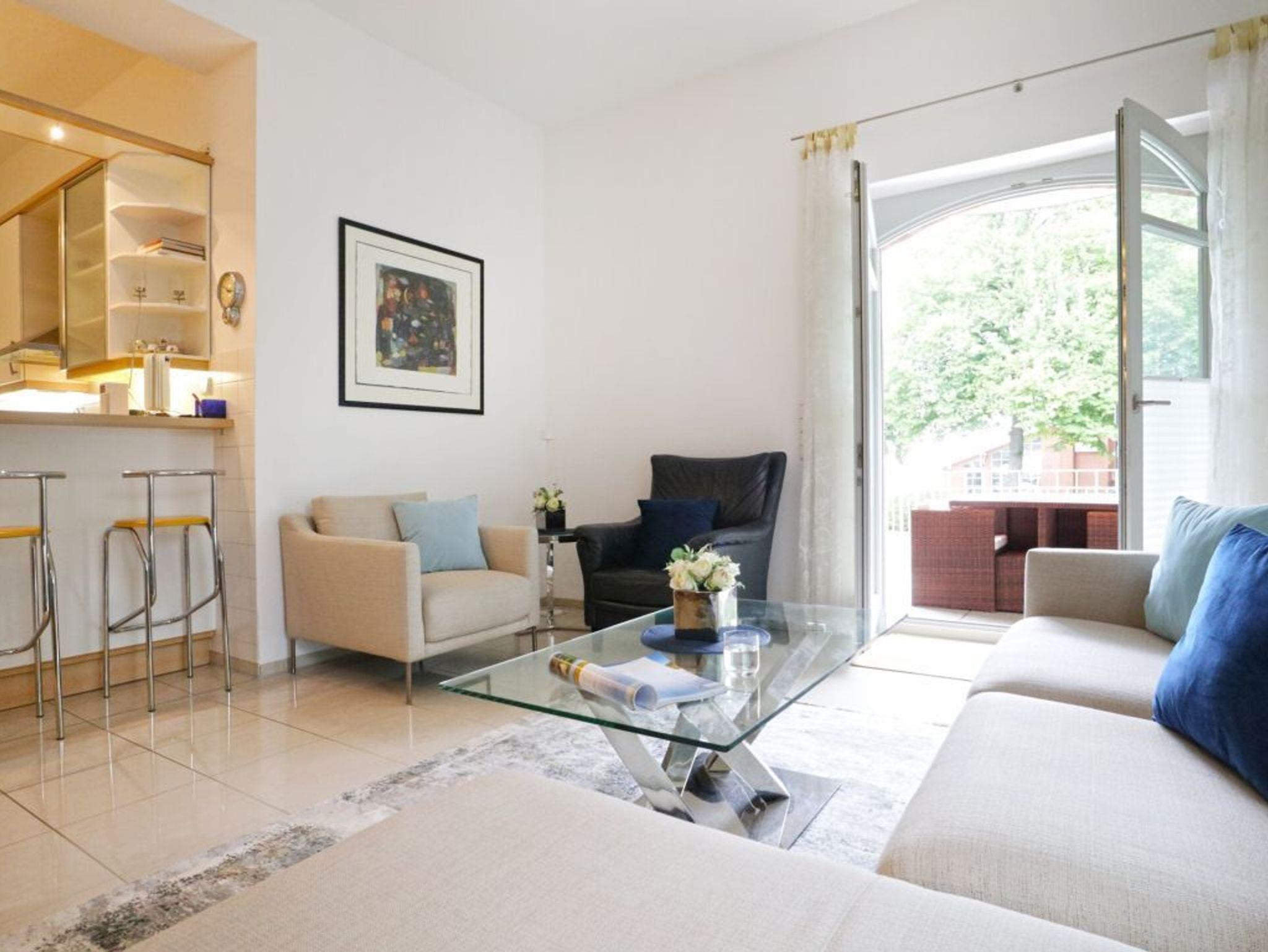 Die denkmalgeschützte Bädervilla beherbergt zwölf hochwertig eingerichtete 2 - 3-Zimmer-Wohnungen, einige mit Meerblick. Jede Einheit bietet einen Balkon oder eine Dachterrasse zum Entspannen und ist mit einer voll ausgestatteten Wohnküche zur Selbstversorgung ausgestattet. Alle Appartements verfügen über mindestens ein separates Schlafzimmer, Duschbad. Kostenfreies WLAN ist in fast allen Wohnungen vorhanden und teilweise kann eine Waschmaschine genutzt werden. Die Lage ist ideal: Der feinsandige Strand ist nur 50 Meter entfernt, während der Ortskern und die Seebrücke in ca. 100 Metern zu erreichen sind. In naher Umgebung befinden sich zahlreiche Restaurants, eine Eisdiele und ein fußläufig erreichbares Einkaufszentrum.