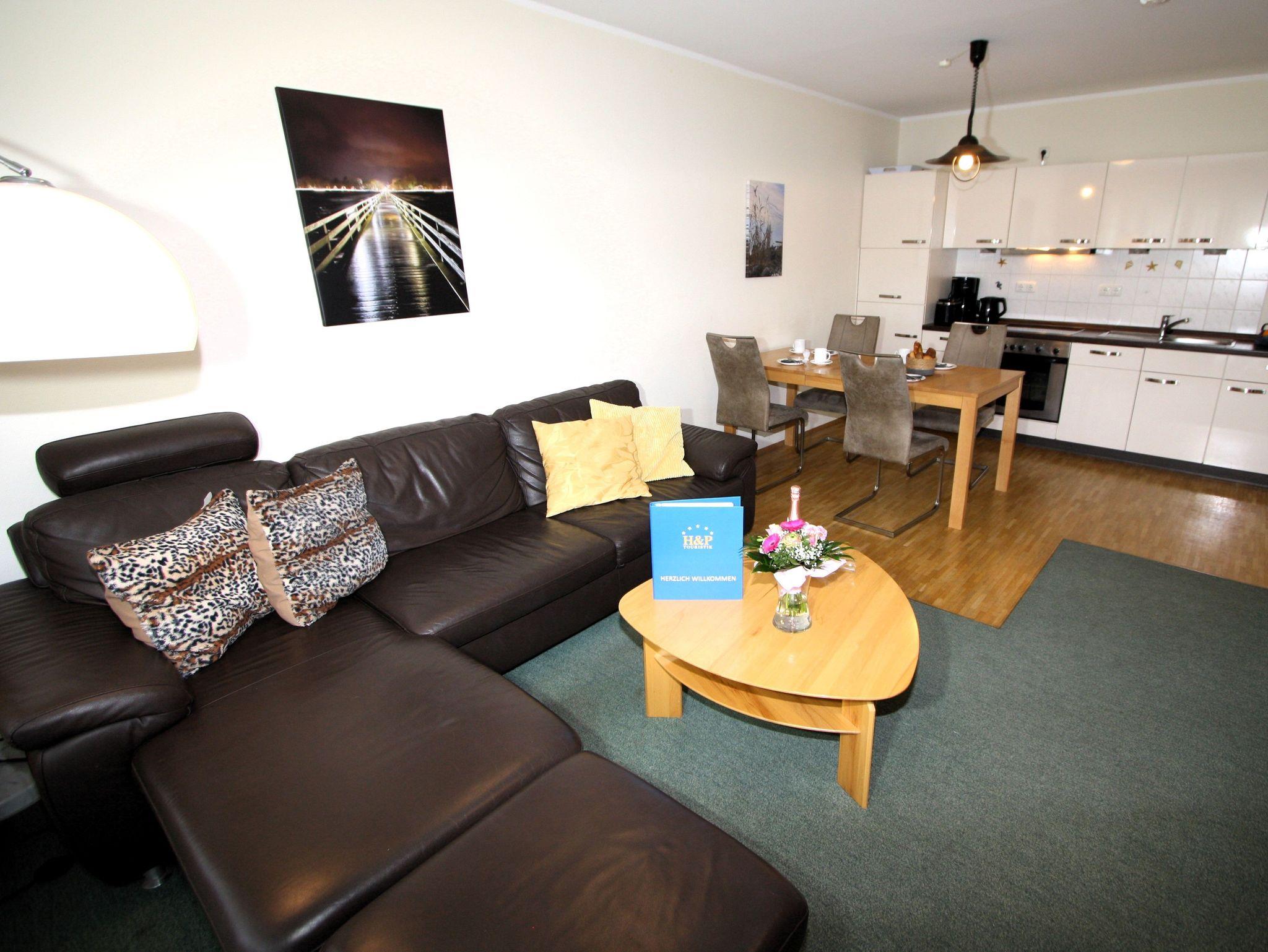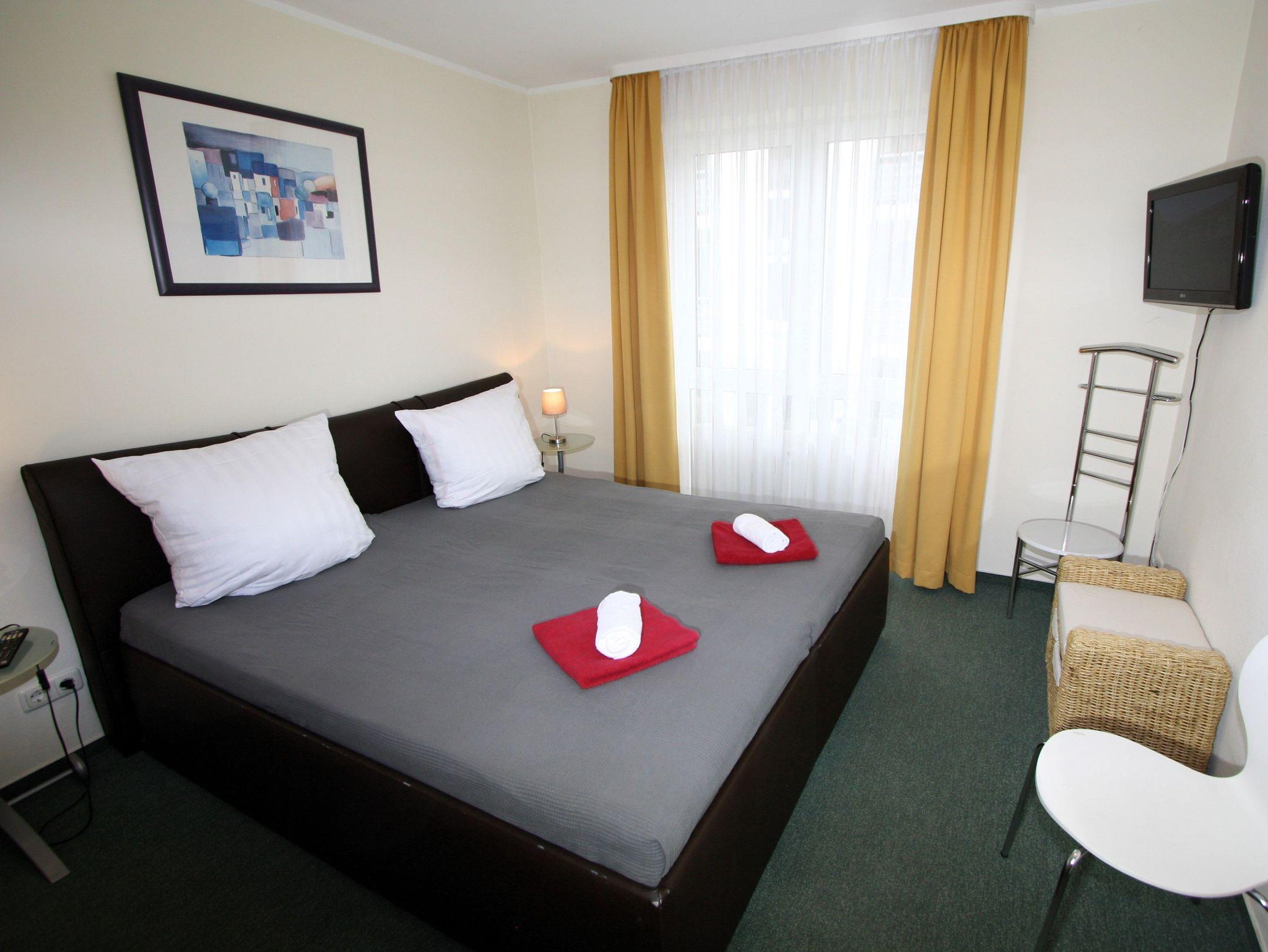 Ihre gut ausgestattete Zwei-Zimmer-Ferienwohnung für bis zu vier Personen verfügt über einen Balkon oder Terrasse, kostenfreies WLAN und sky-Empfang. Sie erreichen die Wohnung bequem mit dem Aufzug, für Ihren PKW steht ein Platz in der Tiefgarage zur Verfügung. Dort befindet sich zudem ein Waschraum mit Münzwaschmaschinen und Münzwäschetrockner und ein Platz für Ihre Fahrräder.