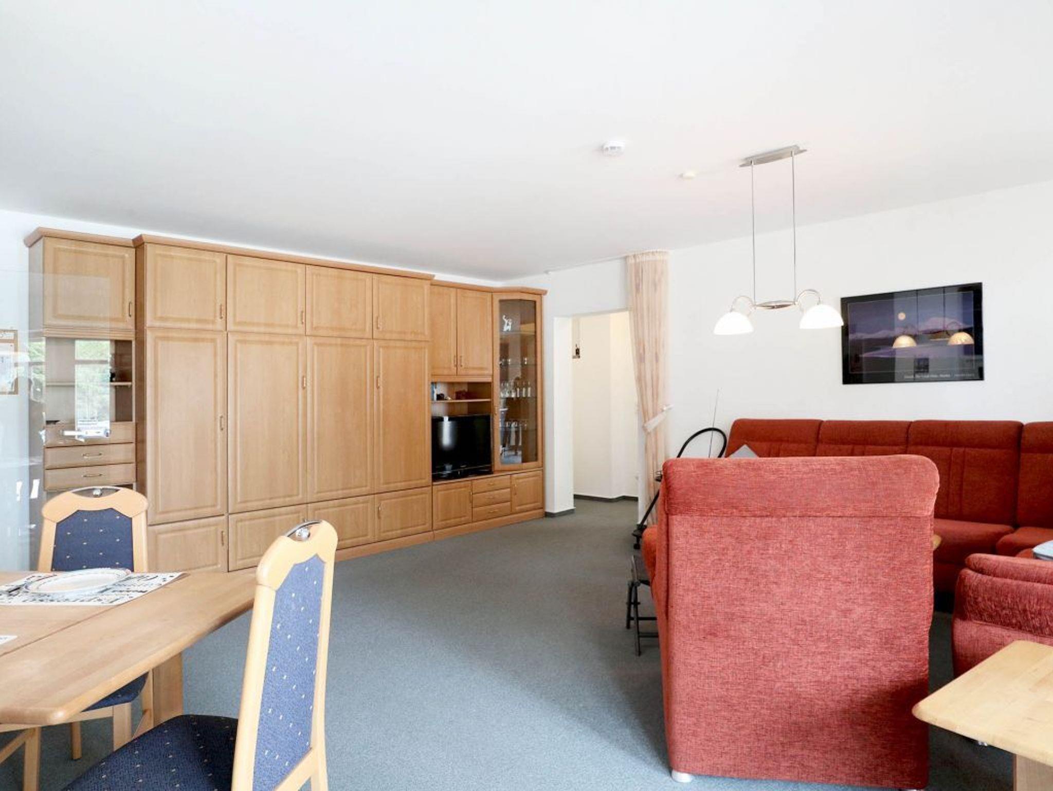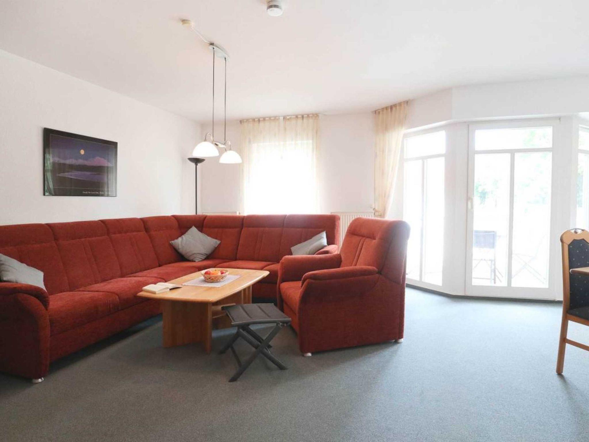 Die behagliche 2- Zimmer Ferienwohnung mit Balkon, befindet sich im ? Obergeschoss des Hauses. Mit einer Wohnfläche von 60qm ist die Wohnung für eine Belegung mit bis zu 4 Personen geeignet. Im geräumigen Wohn-Essbereich erwartet Sie eine Sofagarnitur, eine Schrankwand, Beistelltisch, Esstisch, Fernseher, Musikanlage. WLAN steht gebührenfrei zur Verfügung. Zudem stehen im Wohnbereich zwei weitere Schlafmöglichkeiten als Schrankbett bereit. Eine in den Wohnraum integrierte, offene Küchenzeile ist voll ausgestattet und ermöglicht somit die Selbstversorgung: Herd, Backofen, Mikrowelle Dunstabzug, Kühlschrank mit integr. Frostfach, Toaster, Kaffeemaschine, Wasserkocher, Geschirrspüler usw. sind vorhanden. Gemeinsame Mahlzeiten können Sie am Esstisch zu sich nehmen, oder Sie genießen Ihren Morgenkaffee auf dem saisonal möblierten Balkon in Nord-West Ausrichtung.
