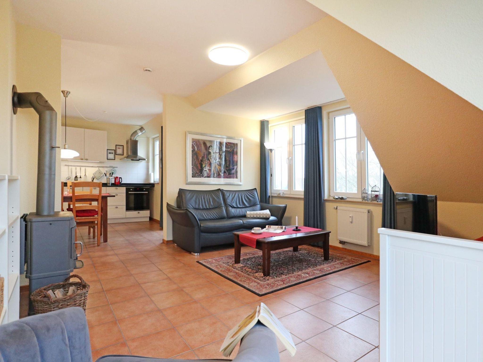 Das 2-Zimmer-Appartment ist für 2-4 Personen im 2. Obergeschoss liebevoll im Landhausstil eingerichtet. Die einzigartige Ecklage mit Balkon und windgeschützter Loggia nach Süden und Westen ermöglicht lichtdurchflutete Räume mit Blick in die unberührte hügelige Landschaft und das unverwechselbare Spiel des Himmels. An Schlechtwettertagen kann man sich am Kaminofen erwärmen und die freie Zeit zwischen