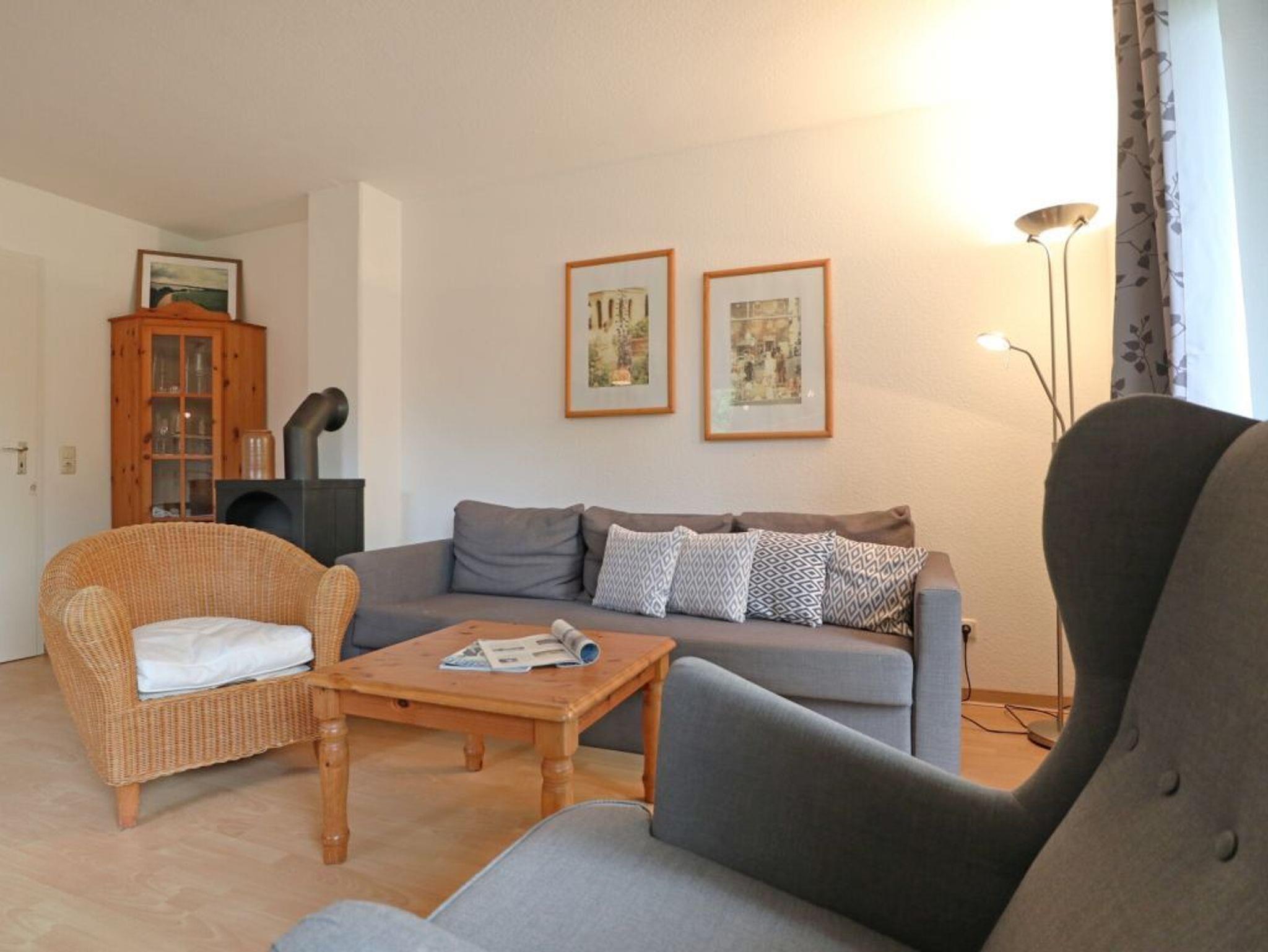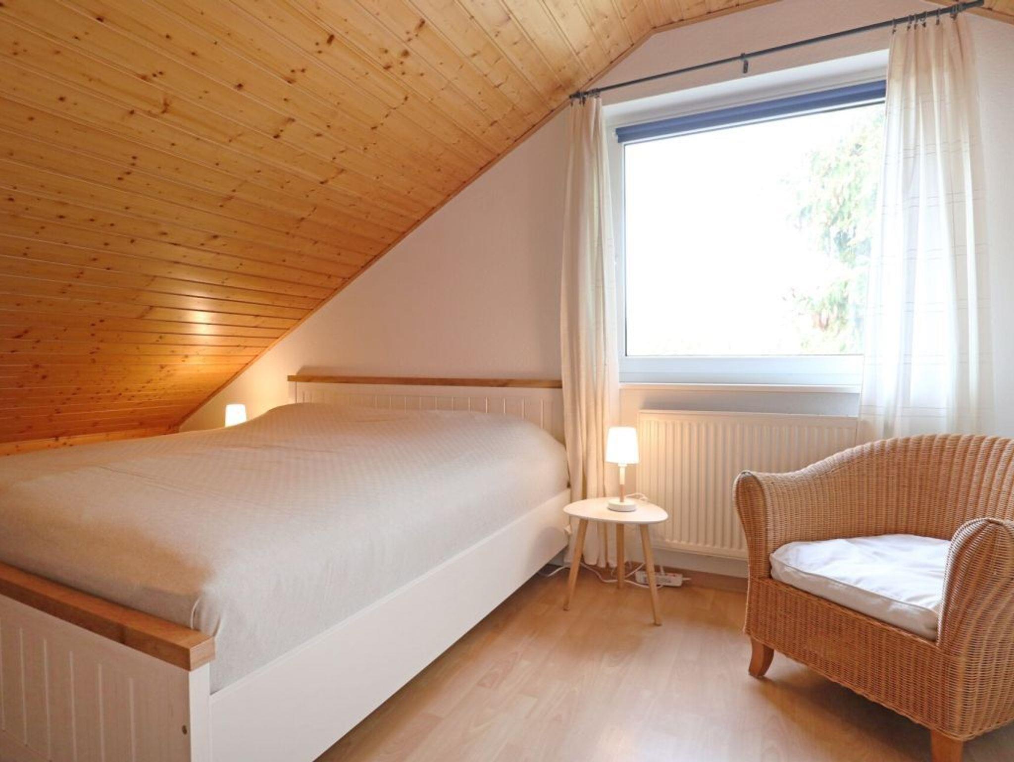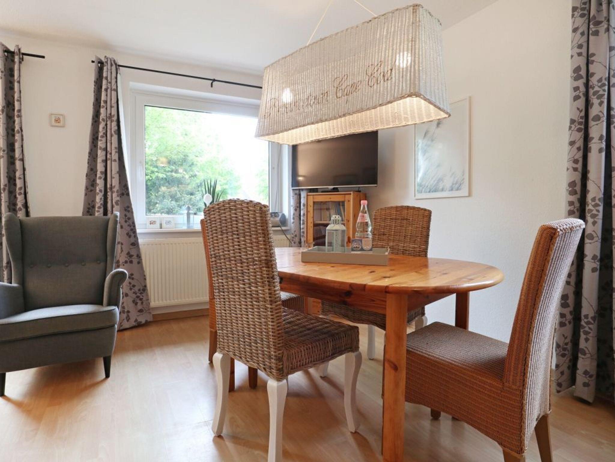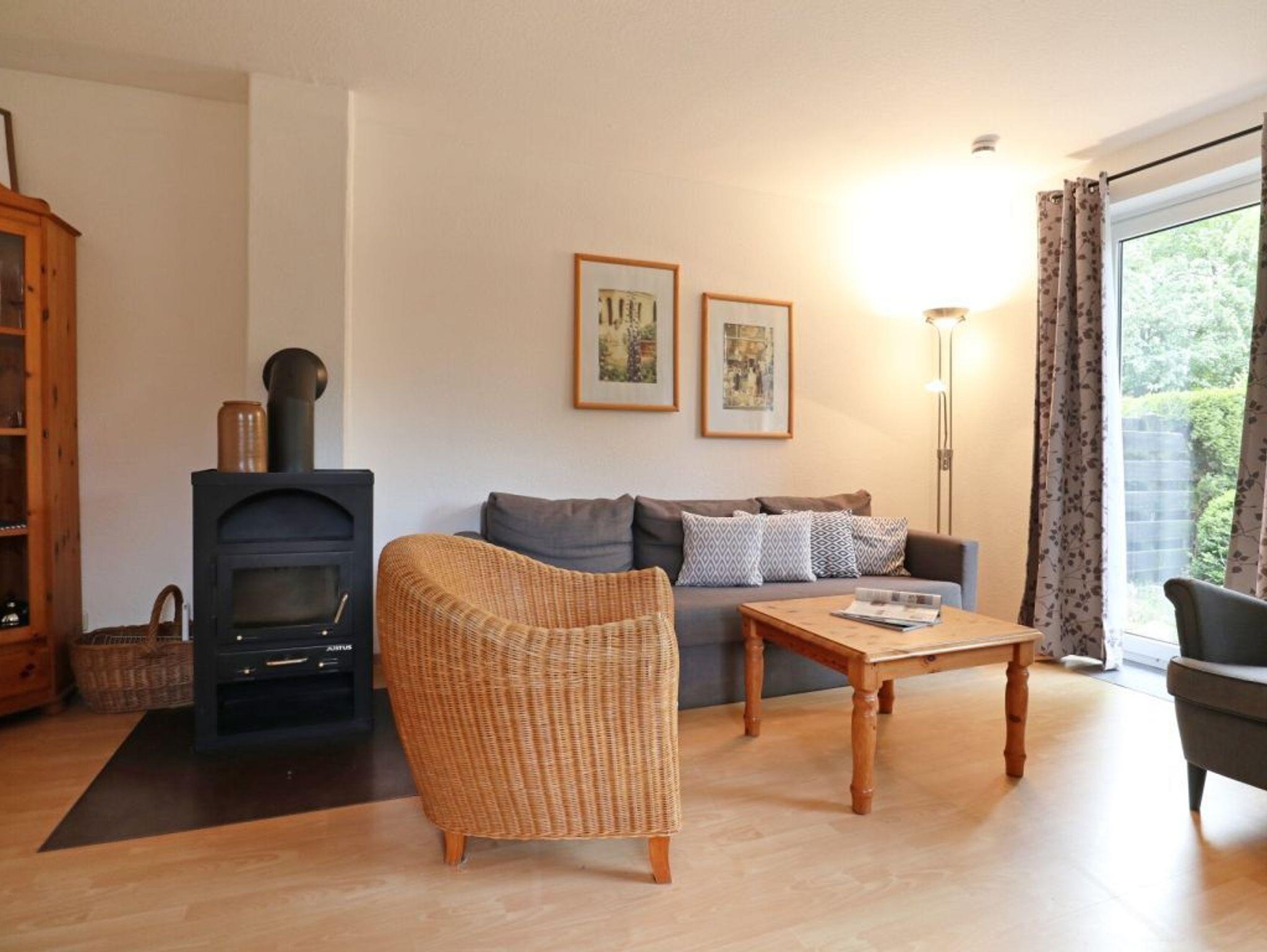 Das Reihendoppelhaus ? Urlauberdorf 56B - mit Süd Terrasse bietet auf 63qm Ferienwohnen zum Wohlfühlen. Der gemütliche Wohn- und Essbereich ist mit einem Sofa, Lehnsessel, Kaminofen, Fernseher, Radio und einem Esstisch ausgestattet ? ideal für entspannte Stunden mit der Familie. Zwei separate Schlafzimmer sowie ein weiterer Schlafbereich und ein Duschbad, Gäste-WC sorgen für Komfort und Privatsphäre. Die integrierte Küchenzeile ist gut ausgestattet mit Herd, Backofen, Geschirrspüler, Kühlschrank, Kaffeemaschine, Wasserkocher, Toaster u.v.m. Erholung finden Sie auf der saisonal möblierten Süd Terrasse. Im Erdgeschoss befinden sich ein Schlafzimmer mit Etagenbett, Kleiderschrank, Sitzgelegenheit sowie ein Tageslicht Duschbad mit WC und kostenfreier Waschmaschinen Nutzung. Über eine Treppe gelangen Sie ins Obergeschoss mit einem weiteren Schlafzimmer mit Doppelbett 1,60m mal 2,00m, Kleiderschrank, 2. Fernseher, Sitzgelegenheit. Zudem ist ein separater Schlafbereich mit Doppelbett angrenzend, der als 3. Schlafzimmer zur Verfügung steht. Das Nichtraucherhaus ist für bis zu 4 Personen buchbar. Ein PKW-Stellplatz befindet sich kostenfrei am Haus. Weitere PKW-Stellplätze stehen in der Umgebung im öffentlichen Bereich kostenpflichtig zur Verfügung. Haustiere nicht erlaubt. Das Laden von Elektro und Hybridfahrzeugen ist nicht gestattet. Hiervon sind Akkus von E-Bikes & Pedelecs (unter Aufsicht) ausgenommen. Bitte beachten Sie, dass in diesem Ferienobjekt kein WLAN vorhanden ist.