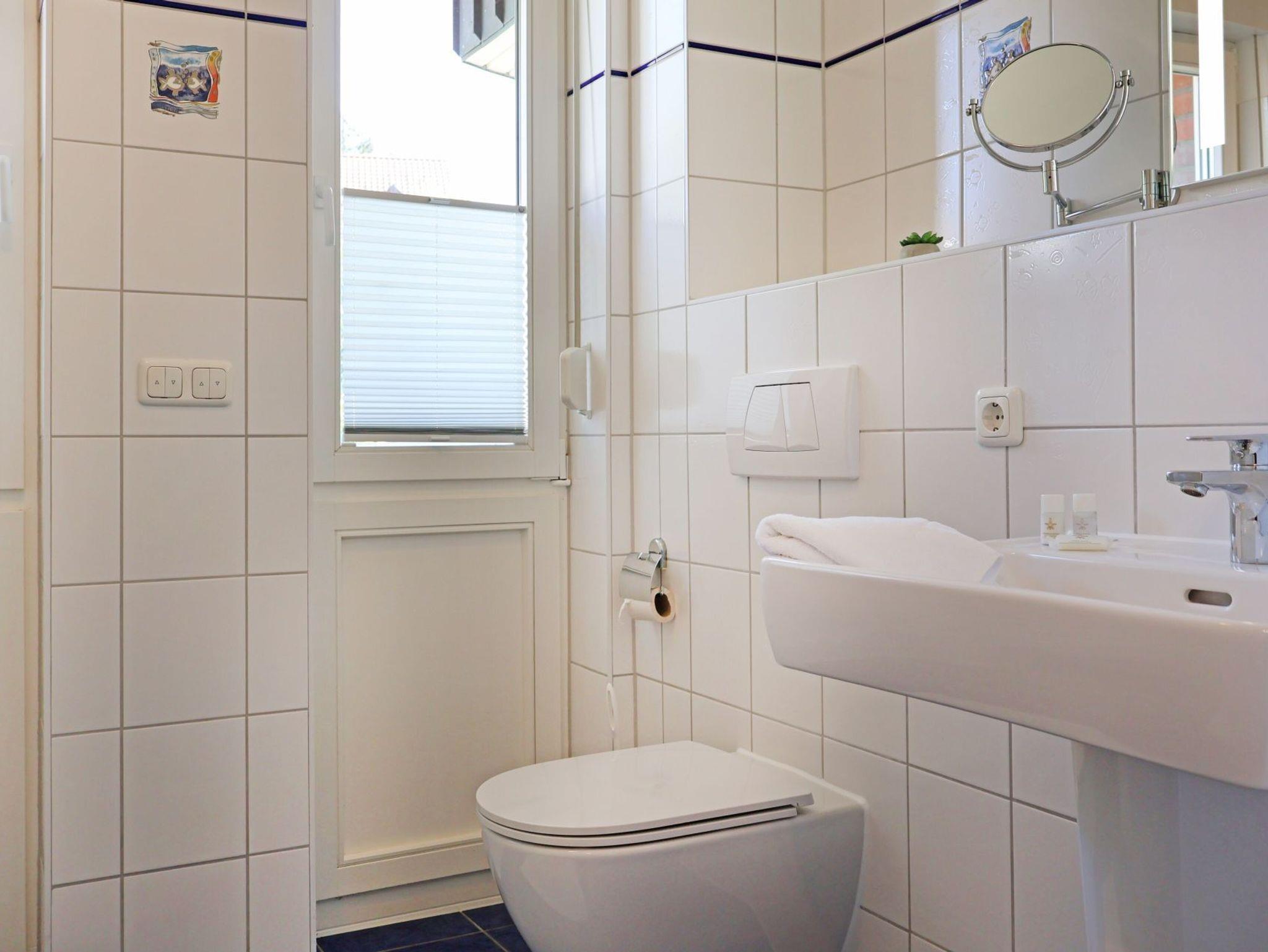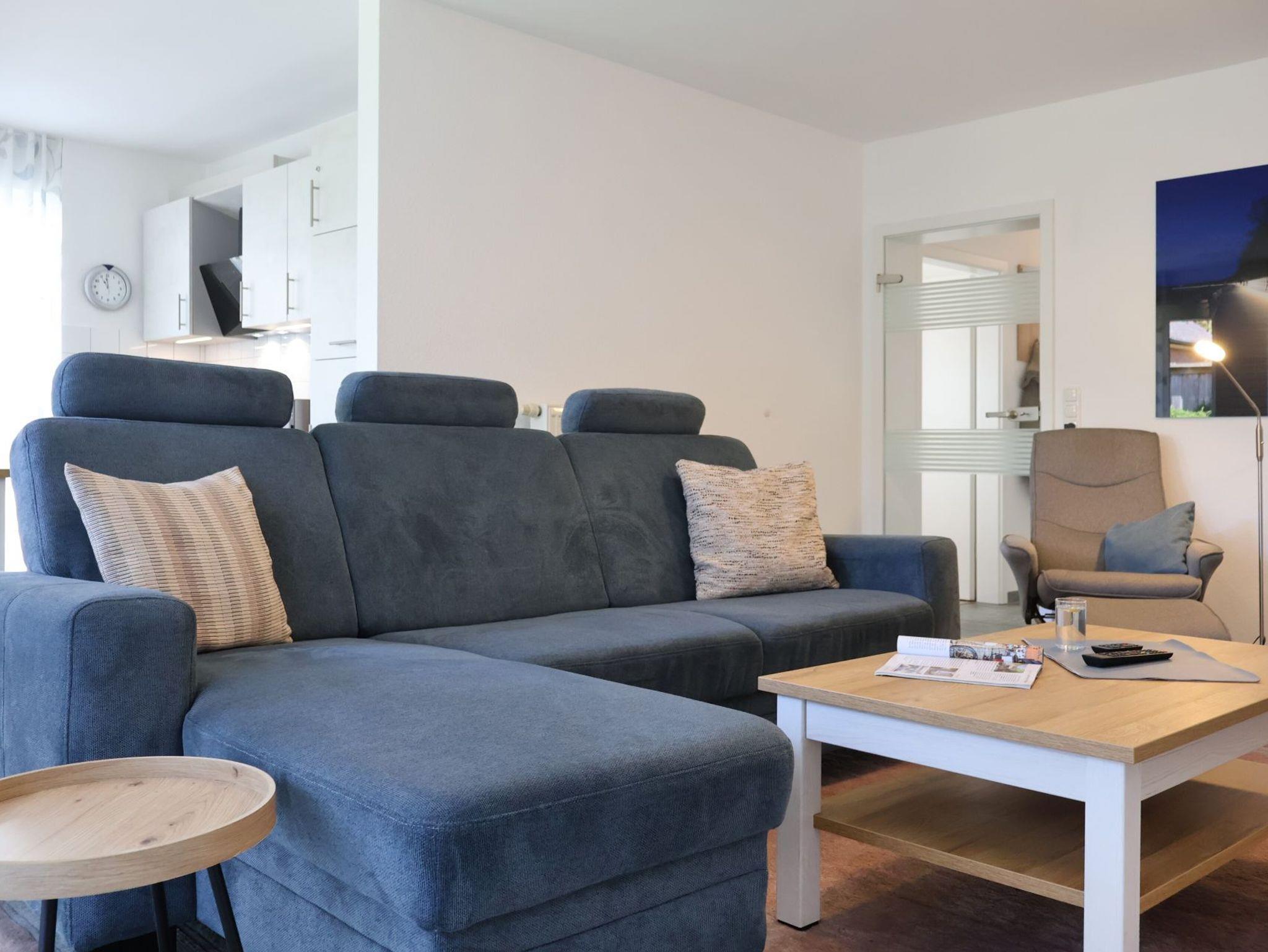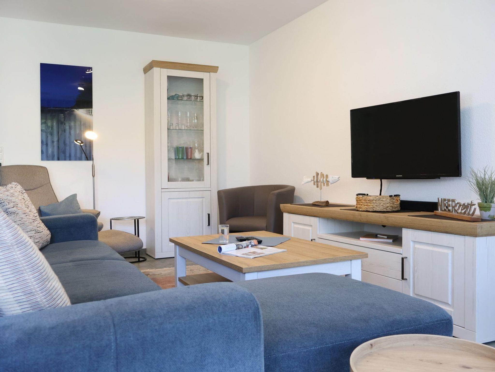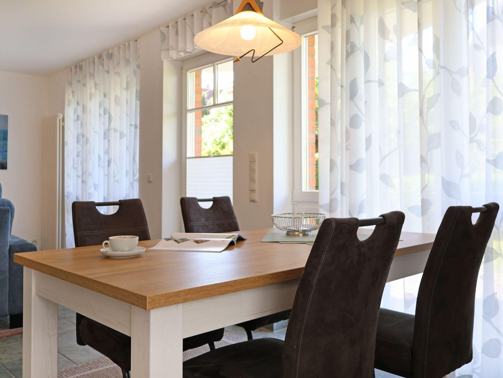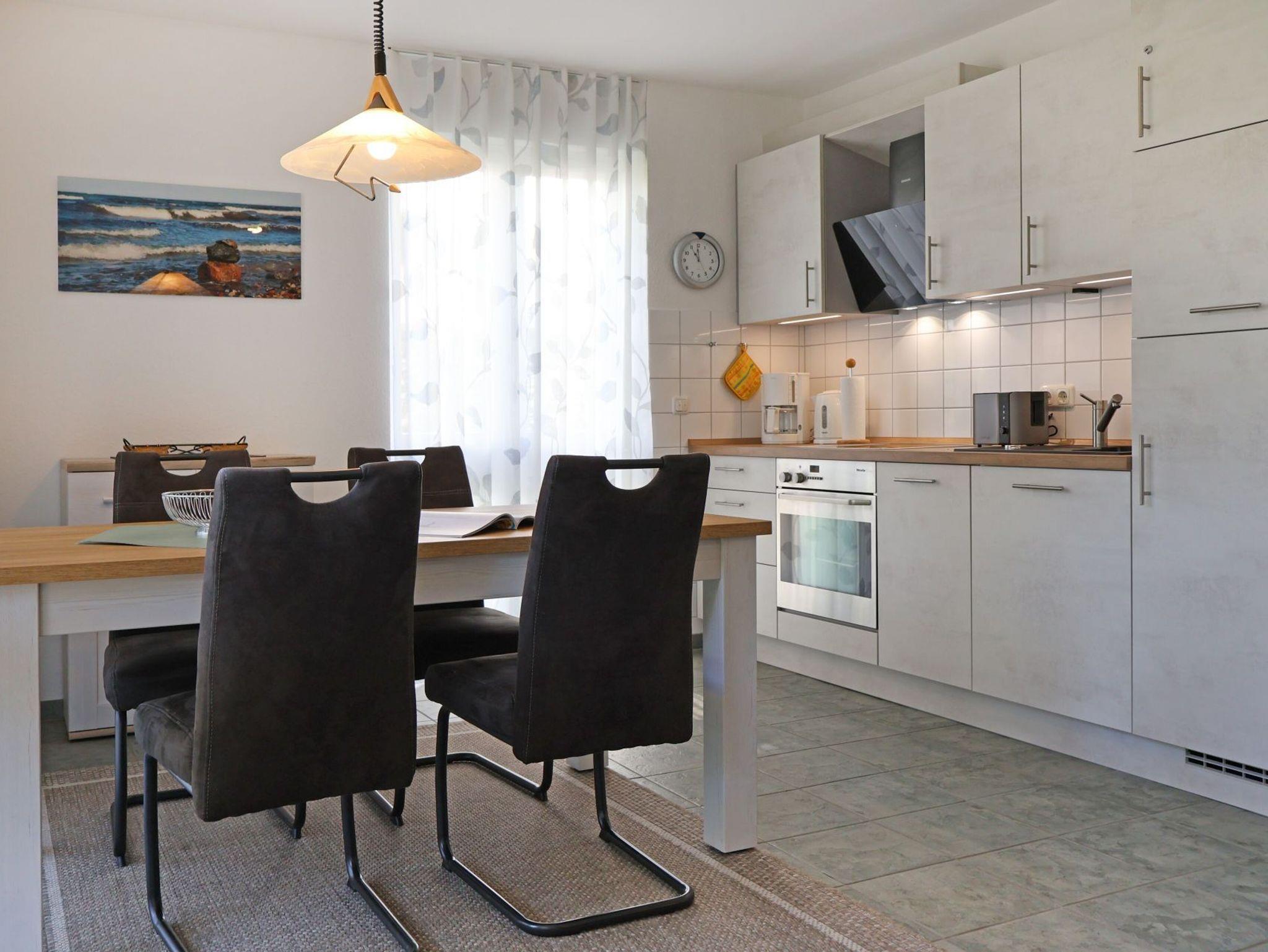 Nur 100 Meter zum feinsandigen Strand mit sehr guten Bademöglichkeiten befindet sich die 3- Zimmer Nichtraucher- Ferienwohnung 1 in der Residenz am Teich. Die zentrumsnahe, in einer Anliegerstraße liegende Wohnung, bietet mit einer schönen Terrasse Ruhe und Erholung. Auf einer Wohnfläche von 72 qm findet der Gast alles, was zu einem entspannten Aufenthalt gehört. Insbesondere die beiden separaten Schlafzimmer ? eines mit Doppelbett, das weitere mit zwei Einzelbetten- bieten bis zu 4 Personen erholsamen Schlaf. Der großzügige Wohnbereich beinhaltet eine offene, komplett ausgestattete Küchenzeile mit Geschirrspüler, Herd mit Ceranfeld, Dunstabzugshaube, Kühlschrank mit Gefrierfach, Kaffeemaschine, Toaster, Mikrowelle sowie ausreichend Geschirr und Töpfe. Die Mahlzeiten können bequem am großen Esstisch eingenommen werden. Der gemütliche Wohnbereich mit Zugang auf die Terrasse ist mit einem Sofa, zwei Sesseln sowie einer Regalwand eingerichtet. Selbstverständlich sind auch Fernsehgerät und Musikanlage vorhanden. Ein Duschbad ist vorhanden. Im Ferienhaus befinden sich Fahrradkeller, Wasch- und Trockenraum. Waschmaschinennutzung gegen Gebühr.