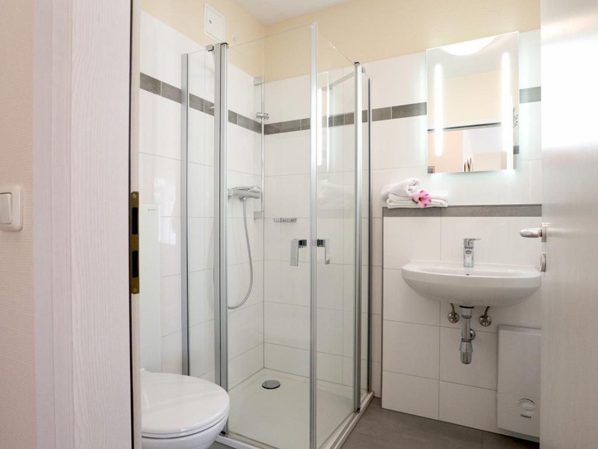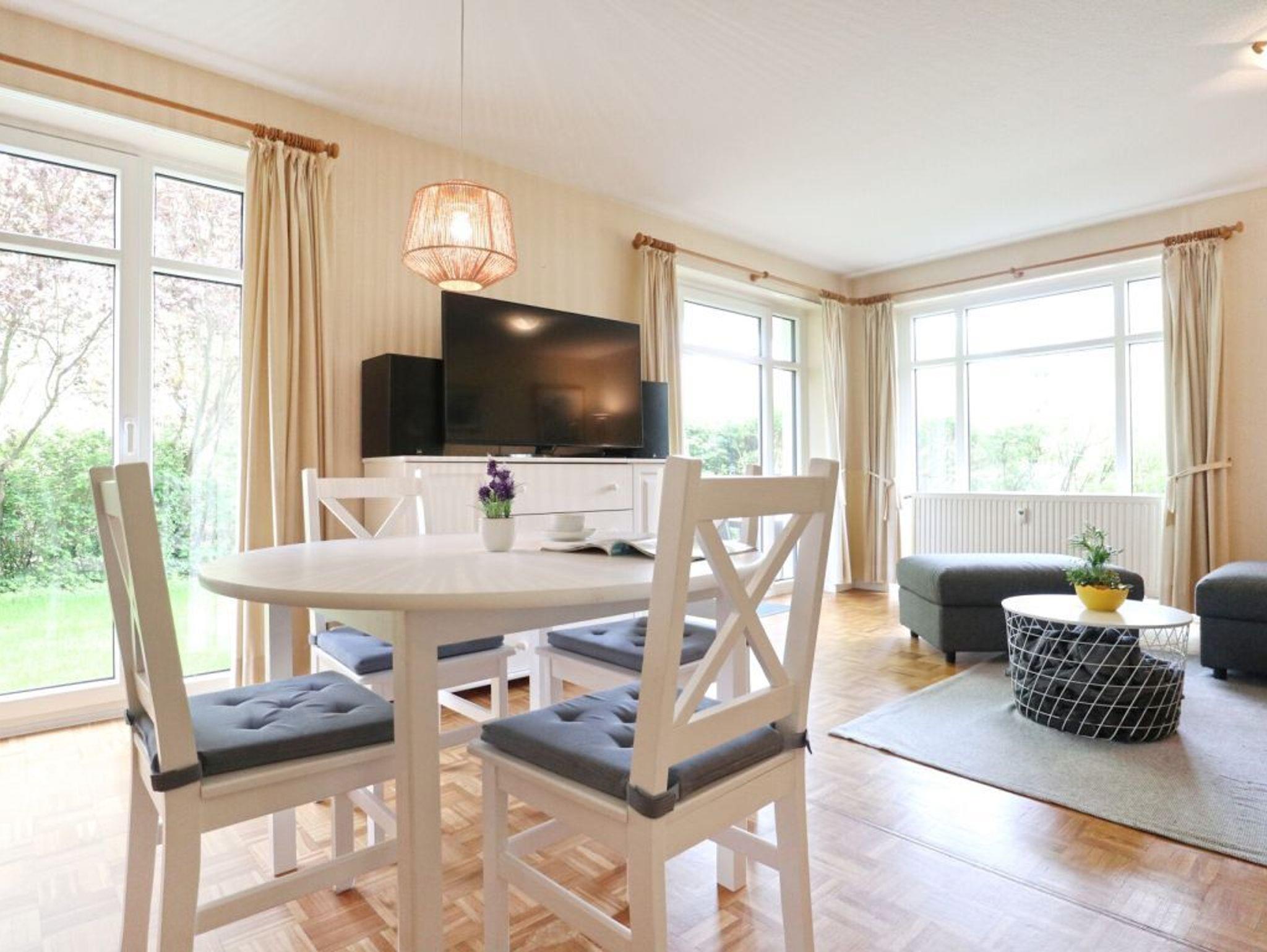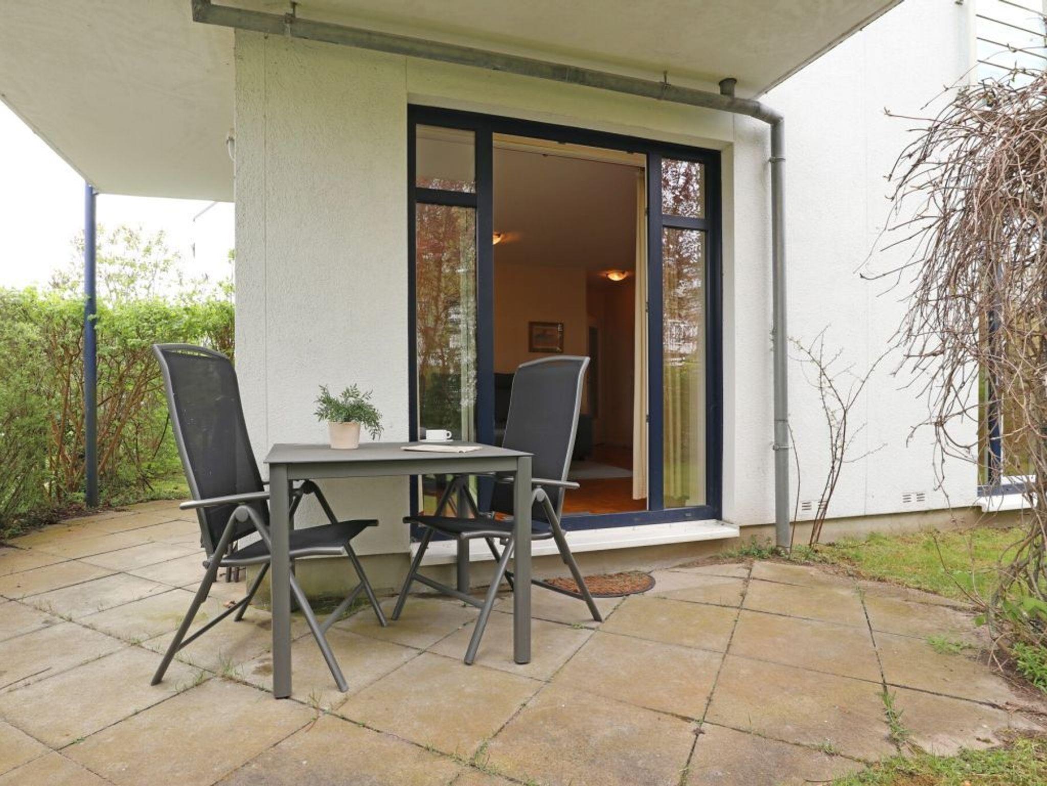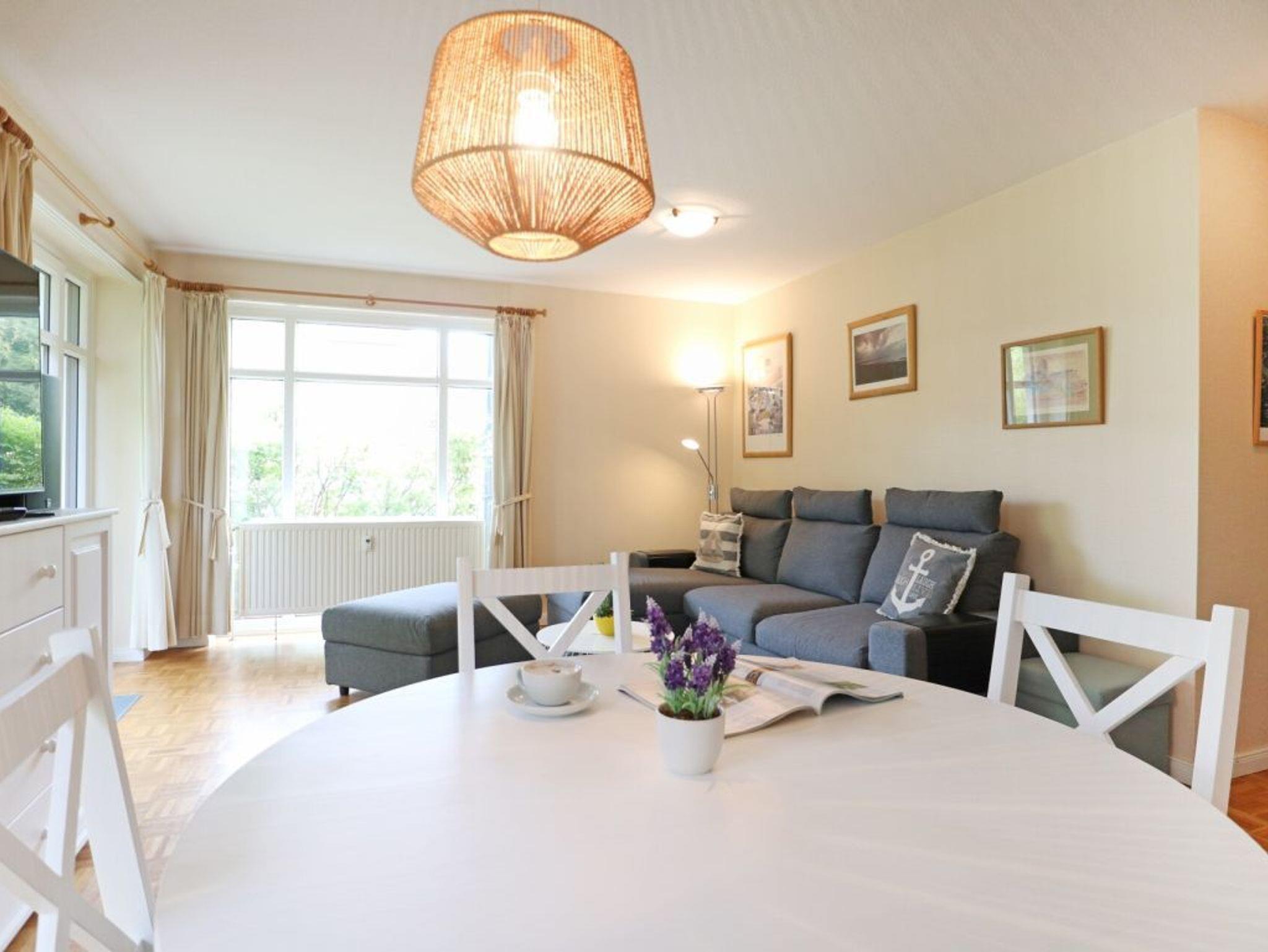 Es erwartet Sie ein 2-Zimmer-Ferienappartement mit einer Wohnfläche von 54qm und sonniger Terrasse in südliche Richtung. Mit maximal 4 Personen können Sie einen entspannten Aufenthalt in dieser strandnahen Erdgeschosswohnung verbringen. Der gesamte Bodenbelag der Wohnung ist mit Parkett verlegt. Der Wohn und Essbereich bietet eine gemütliche Sitzgarnitur, die in ein Schlafsofa umgewandelt werden kann und Ihnen zwei weitere Schlafplätze ermöglicht. Für gemeinsame Mahlzeiten ist ein großer Esstisch im Wohnraum vorhanden. In der voll ausgestatteten Küchenzeile, die in den Wohnbereich integriert ist, können Sie bequem Ihre Urlaubsmahlzeiten zubereiten. Herd, Backofen, Mikrowelle, Kühlschrank sowie Toaster, Kaffeemaschine und Wäschetrockner sind vorhanden. Des Weiteren bieten ein Fernseher und eine Musikanlage Unterhaltung. Gebührenfrei nutzen Sie den Internetzugang über WLAN. Das geräumige Schlafzimmer ist mit einem Doppelbett und einem großen Kleiderschrank möbliert. Zugehörig ist ein modernes Duschbad mit Waschtisch und WC. Direkt vor der Wohnanlage befindet sich für Ihren PKW ein gebührenfrei reservierter Außenstellplatz. Allen Hausgästen stehen zudem gegen Gebühr Waschmaschine und Wäschetrockner gemeinschaftlich zur Verfügung. Bitte beachten Sie, dass es sich um eine Wohnung für Nichtraucher handelt. Haustiere sind gegen eine Gebühr in Höhe von 8 Euro/ Tag gestattet. In wenigen Gehminuten gelangen Sie an die Ostsee mit dem wunderschönen feinsandigen Strand.