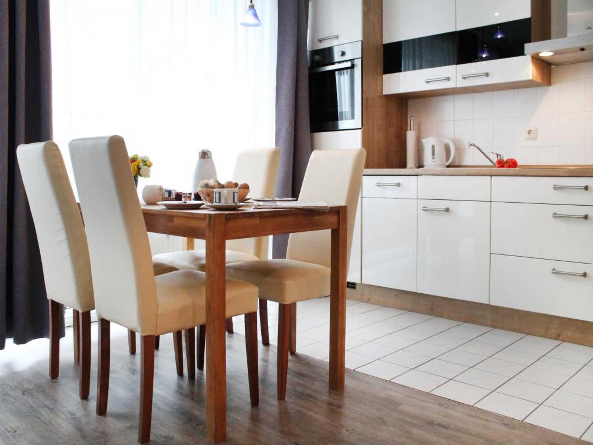 Die modern komfortabel möblierte 2-Zimmerwohnung befindet sich im 1. OG und besitzt eine Wohnfläche von 36qm. Eine Belegung ist mit bis zu 4 Personen möglich. Der geschmackvoll eingerichtete Wohn-Essbereich ist mit einem Sofa, welches sich in ein Schlafsofa mit zwei weiteren Schlafgelegenheiten umwandeln lässt- und mit einem Esstisch ausgestattet. Ebenso sind Fernseher, Musikanlage und gebührenfreies WLAN vorhanden. In der offenen Wohnküche können Sie Ihre Urlaubsmahlzeiten zubereiten mit: Herd, Backofen, Dunstabzug, Kühlschrank mit integriertem Gefrierfach, Spülmaschine usw. Ihre Mahlzeiten nehmen Sie am Esstisch zu sich, oder Sie machen es sich auf dem saisonal möblierten West- Balkon gemütlich. Das Appartement verfügt über ein separates Schlafzimmer mit Doppelbett 1,60m x 2,00m, Kleiderschrank. Das innenliegende Badezimmer besitzt eine Dusche, Waschtisch, Fön und WC. Im Haus können Waschmaschine sowie Wäschetrockner geben Gebühr gemeinschaftlich genutzt werden. Für Ihren PKW steht ein Außen - Stellplatz zur Verfügung. Haustiere sind nicht gestattet. Nichtraucher.