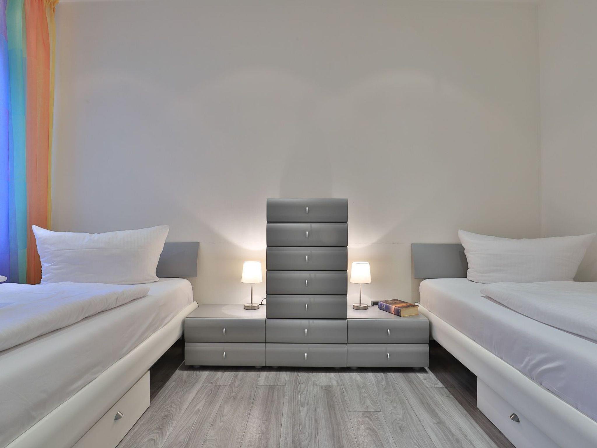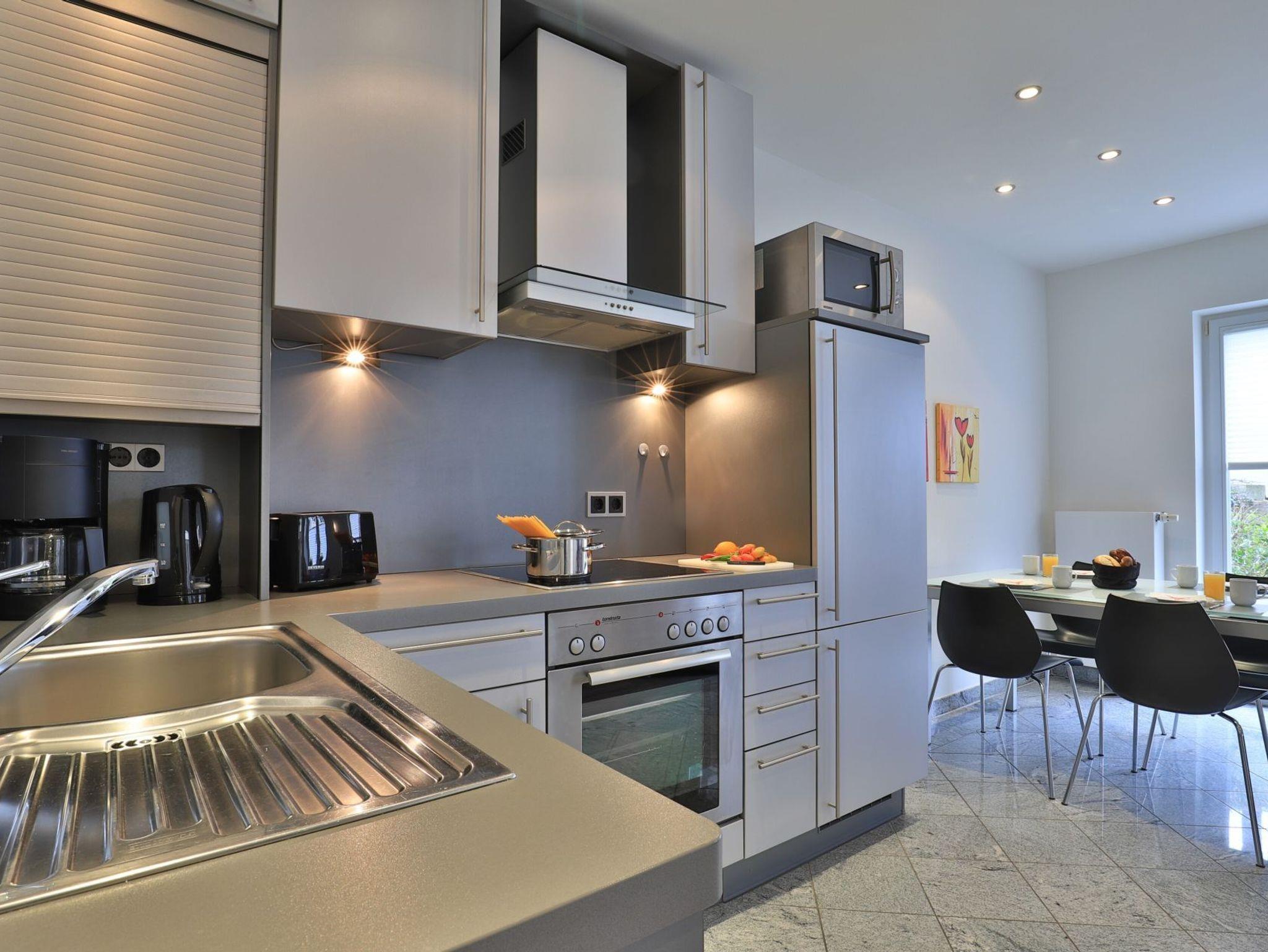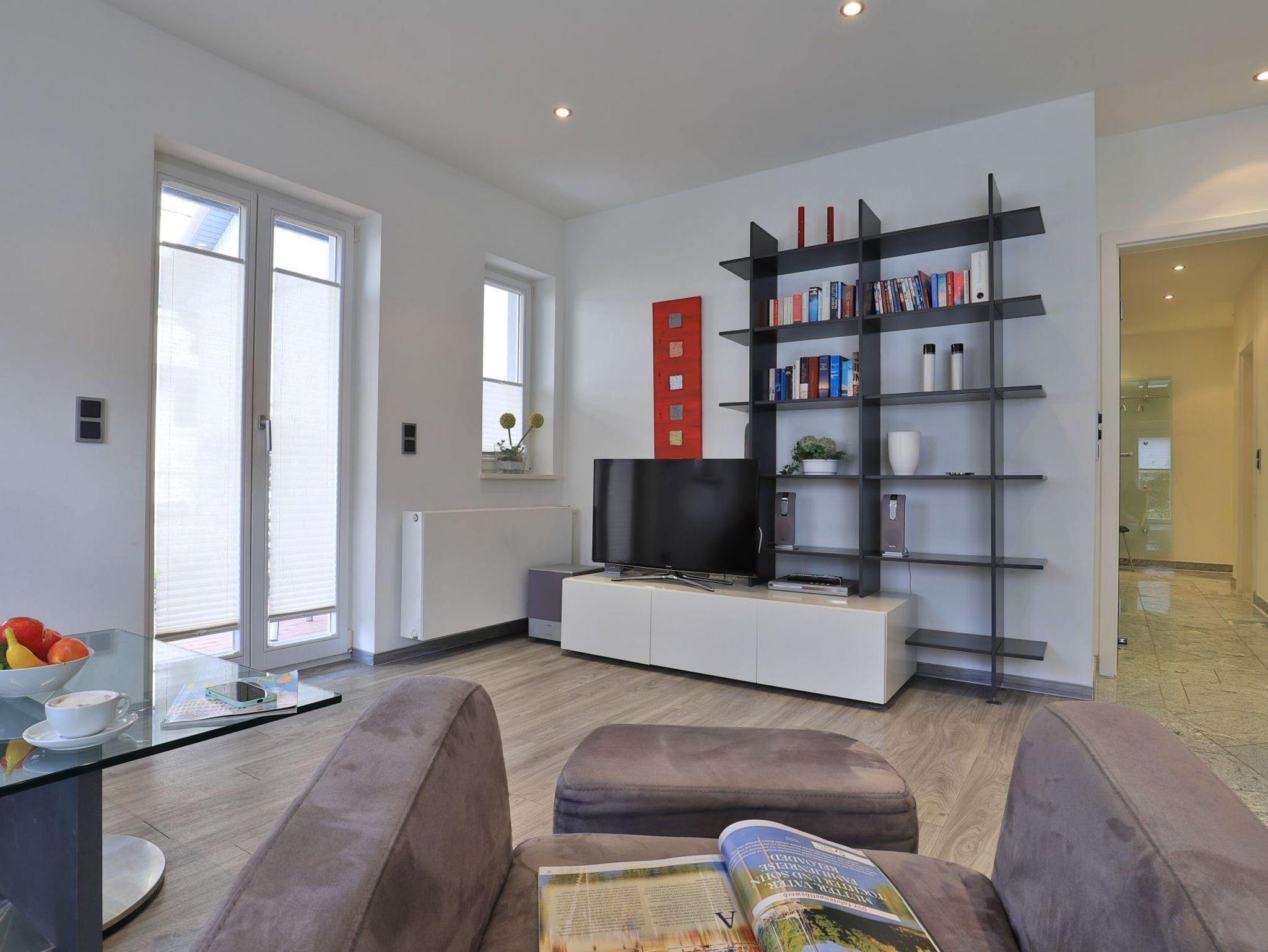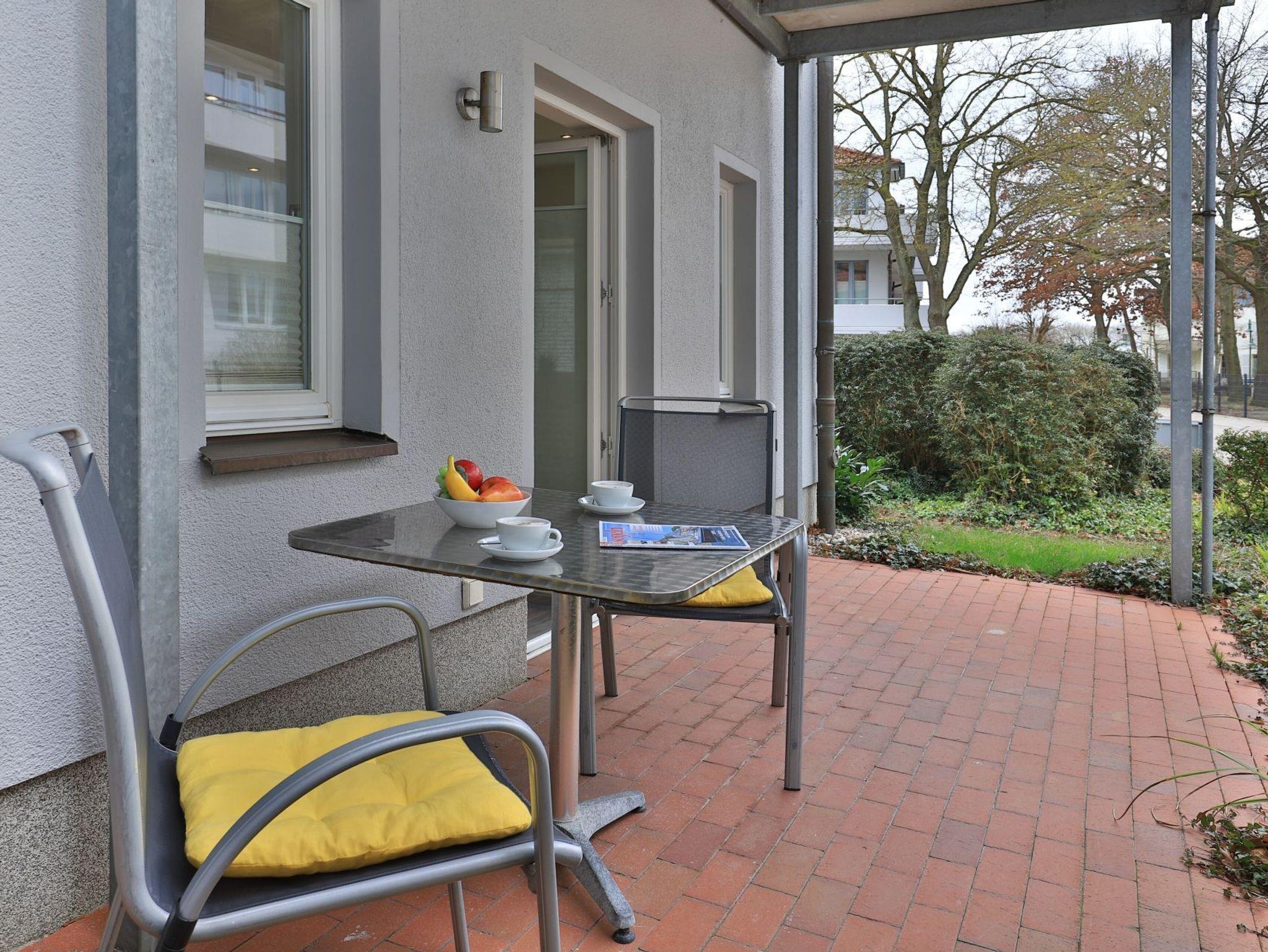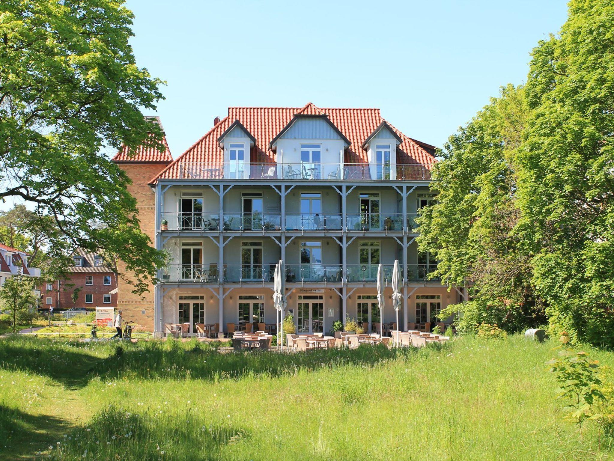 Nur 30 Meter vom Strand entfernt erwartet Sie die exklusive 3-Zimmer-Ferienwohnung ?Villa Wagenknecht? im Erdgeschoss mit einer Wohnfläche von 62 m² und hochwertiger Ausstattung. Das stilvolle Feriendomizil mit Südwest-Terrasse bietet idealen Raum für bis zu vier Personen. Der modern und geschmackvoll gestaltete Wohnbereich empfängt Sie mit einem komfortablen Sofa, Sessel, Esstisch sowie TV, DVD-Player, Musikanlage und kostenfreiem WLAN. Die integrierte, hochwertige Küchenzeile ist mit Ceranfeld, Mikrowelle, Backofen, Kühlschrank und Geschirrspüler bestens ausgestattet und lässt keine Wünsche offen. Eines der separaten Schlafzimmer verfügt über ein Doppelbett, einen Kleiderschrank und einen zusätzlichen Fernseher. Das zweite Schlafzimmer ist mit zwei Einzelbetten eingerichtet. Das moderne Duschbad mit hochwertiger Granitausstattung und Fußbodenheizung sowie ein zusätzliches Gäste-WC sorgen für angenehmen Komfort. Bei Ihrer Anreise sind die Betten bereits bezogen, Hand- und Duschtücher liegen für Sie bereit. Ein Strandkorb ist saisonal von etwa Mai bis zum 30. September im Mietpreis enthalten. Für Ihren Pkw steht ein reservierter Stellplatz in der Tiefgarage zur Verfügung. Waschmaschine und Wäschetrockner befinden sich im Haus und können gegen Gebühr genutzt werden. Ein Fahrradkeller ist ebenfalls vorhanden. Es handelt sich um eine Nichtraucher-Ferienunterkunft; Haustiere sind nicht gestattet. Sie verbringen Ihren Aufenthalt in einer privaten Villa in direkter Lage an der Mittelpromenade. Herzlich willkommen bei uns an der Ostsee.