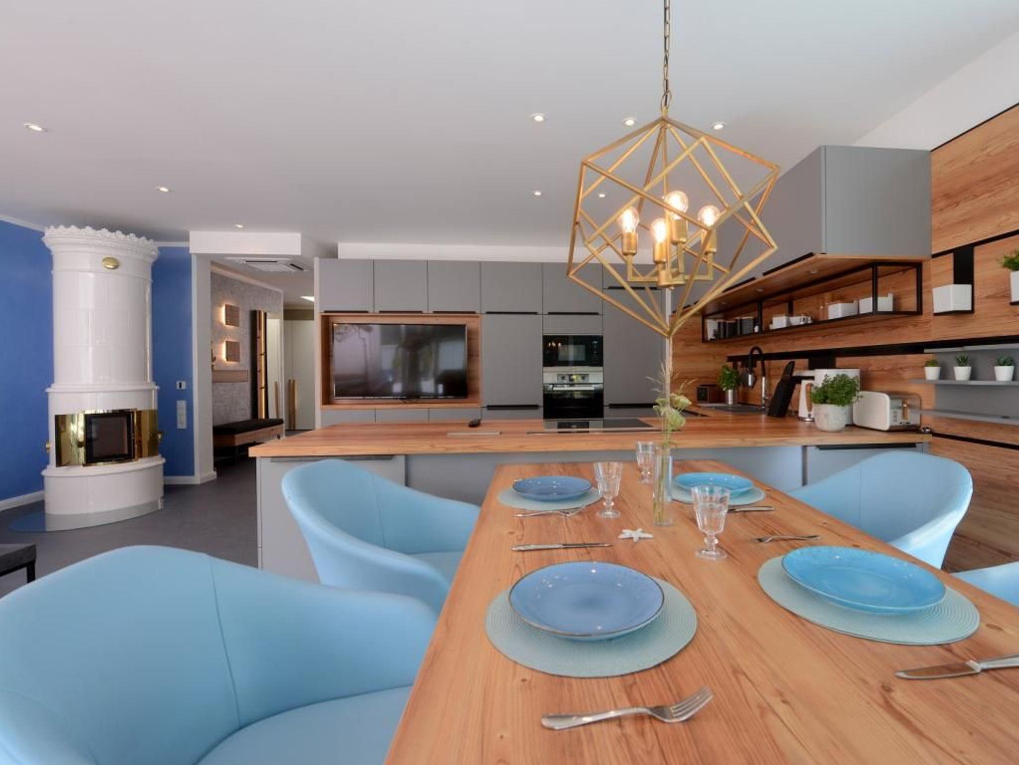 Diese außergewöhnliche 5-Sterne-Penthouse-Wohnung ? Gehzeiten 5 - bietet auf 98qm luxuriösen Wohnkomfort für bis zu 4 Personen ? nur 50 Meter vom Meer entfernt. Ein exklusives Feriendomizil für Gäste, die höchsten Anspruch, Privatsphäre und unmittelbare Strandnähe schätzen. Von der Tiefgarage aus gelangen Sie mit dem Lift in Vorzugsfahrt direkt bis in das Penthouse ? komfortabler und diskreter geht es nicht. Der großzügige Wohn- und Essbereich begeistert mit bodentiefen Fenstern, viel Tageslicht und einem stilvollen Ambiente. Ein hochwertiges Sofa, der behagliche Kaminofen sowie der elegante Essplatz schaffen Wohlfühlatmosphäre. Die moderne, voll ausgestattete Luxus-Küche lässt keine Wünsche offen: Herd, Backofen, Mikrowelle, Geschirrspüler und umfangreiche Küchenausstattung ermöglichen höchsten Komfort bei der Selbstversorgung. Drei Balkone ? alle saisonal möbliert ? laden zu sonnigen Frühstücksmomenten oder entspannten Abendstunden ein. Das Penthouse verfügt über zwei separate Schlafzimmer, jeweils mit hochwertigem Doppelbett, eigenem Fernseher und Balkonzugang. Zwei moderne Tageslicht-Duschbäder mit ebenerdigen Duschen sorgen für maximalen Komfort und Privatsphäre. Zur hochwertigen Ausstattung gehören selbstverständlich WLAN, drei internetfähige Fernseher, eine Musikanlage sowie eine Waschmaschine. Fußbodenheizung und Klimatisierung garantieren zu jeder Jahreszeit ein angenehmes Raumklima. Elektrische Verschattungssysteme unterstreichen den exklusiven Wohnkomfort. Ein extrabreiter Tiefgaragenstellplatz (gegen Gebühr, max. Höhe 1,95 m, max. Länge 5,30 m) sowie Fahrradabstellmöglichkeiten für mitgebrachte Fahrräder stehen ebenfalls zur Verfügung. Bei Anreise erwarten Sie bezogene Betten und Handtücher. Nichtraucherwohnung. Keine Haustiere. Ein luxuriöses Penthouse-Refugium für unvergessliche Tage am Meer.