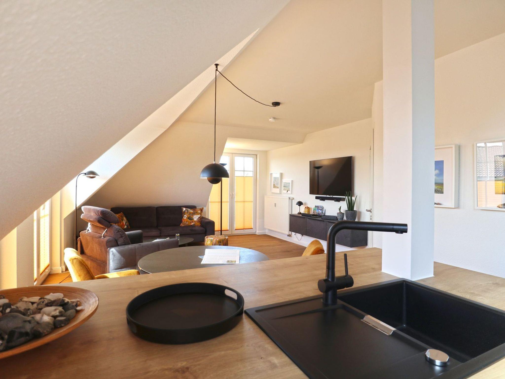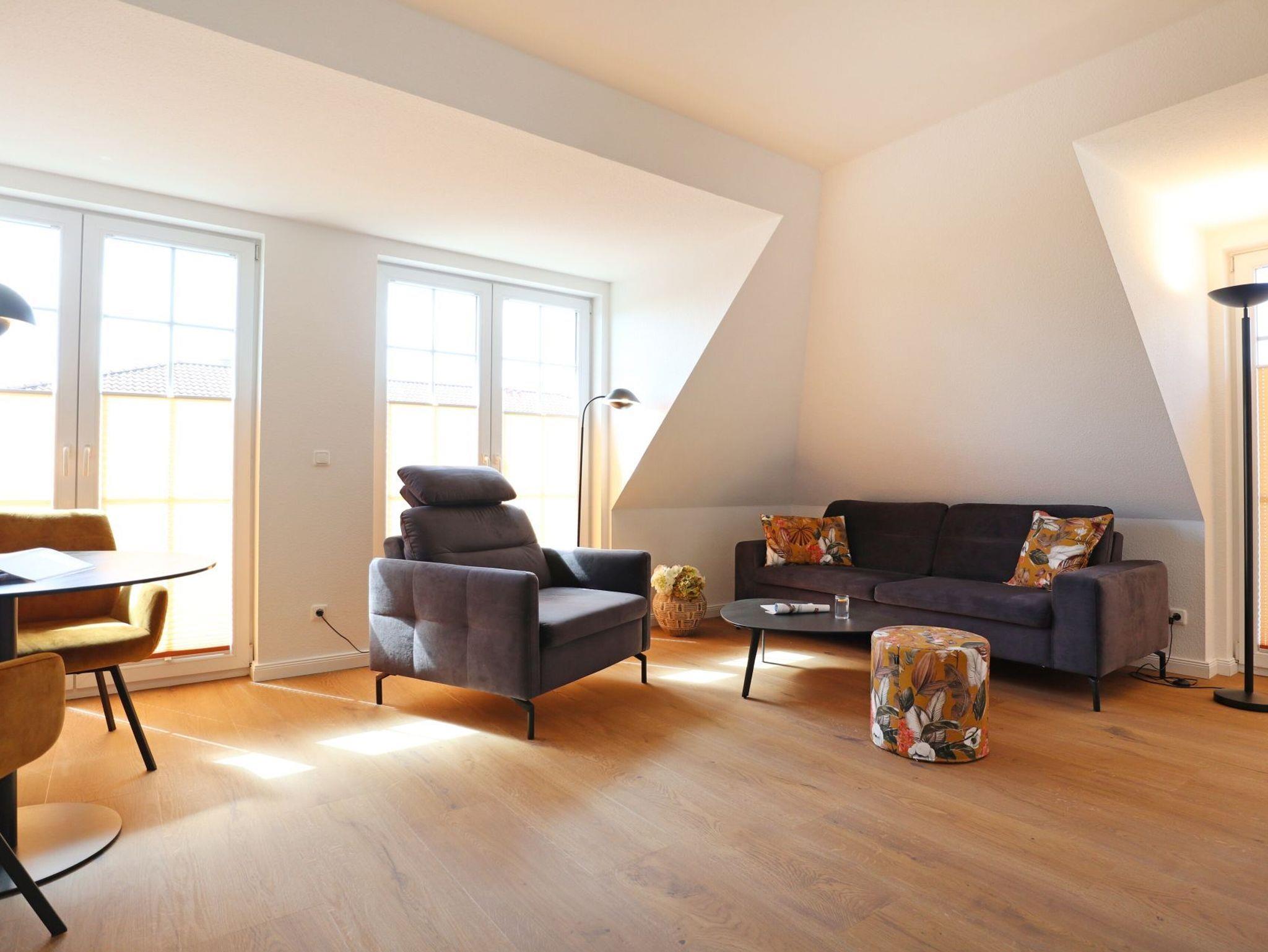 Die hochwertig möblierte 2-Zimmer Dachgeschoss Wohnung besitzt eine geräumige Wohnfläche von 55qm. Sie bewohnen das 2. Obergeschoss, welches Sie bequem von der Tiefgarage aus mit dem Personenaufzug erreichen. Es empfängt Sie eine helle stilvolle Wohneinheit, die mit zwei sonnigen Balkonen zum Entspannen einlädt. Der offene Wohn-Essbereich mit Smart-TV, Soundbar und gebührenfreies WLAN, bietet zudem eine bestens ausgestattete, sehr moderne Küche mit Herd, Backofen, Kühlschrank, Spülmaschine usw. Das schicke Appartement verfügt über ein separates Schlafzimmer. Das innenliegende Badezimmer besitzt eine Badewanne mit Duschvorhang, Waschtisch und WC. Für Ihren PKW ist ein Stellplatz in der hauseigenen Tiefgarage reserviert. Mitgebrachte Fahrräder können nach Verfügbarkeit in einem abschließbaren Fahrradabstellraum untergestellt werden. Wir weisen darauf hin, dass es sich um eine Nichtraucherwohnung handelt, in der Haustiere nicht gestattet sind. Die Ferienwohnung befindet sich in einem ruhigen Appartementhaus, nur ca. 250 Meter zum naturbelassenen Strand.