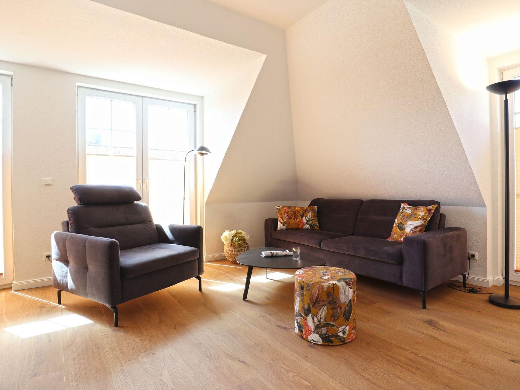 Ankommen und wohlfühlen gilt in dieser in 2023 komplett modernisierten und mit Liebe zum Detail eingerichteten Ferienwohnung. Im hellen und großzügigen Wohnzimmer mit offener, hochwertig ausgestattete Küche, bequemen Sitzmöbeln, Smart-TV und Soundbar werden Sie sich schnell heimisch fühlen. Komfortable Betten sorgen für erholsamen Schlaf. Zwei Balkone nach Osten und Süden und der nahe Ostseestrand laden zum Erholen sein.