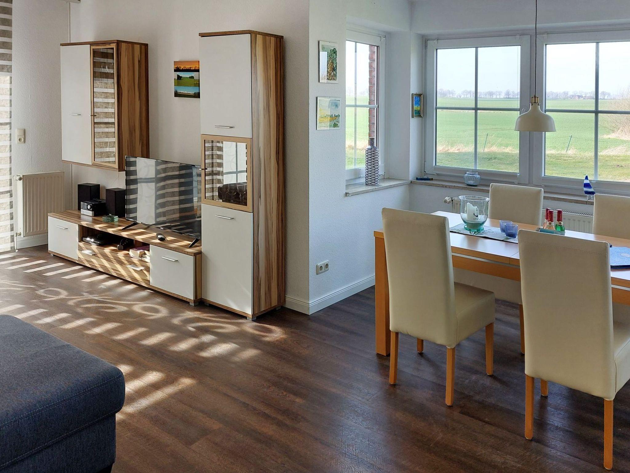 Die modernisierte 3-Zimmerwohnung besitzt eine geräumige Wohnfläche von 74qm. Sie wohnen im Erdgeschoss des Hauses und genießen die Vorzüge einer wohnungseigenen Terrasse mit Strandkorb. Eine Belegung ist mit max. 4 Personen möglich. Der behaglich möblierte Wohn-Essbereich ist mit einer Sofalandschaft und einem Esstisch möbliert. Ebenso sind Fernseher, Musikanlage und WLAN gebührenfrei vorhanden.