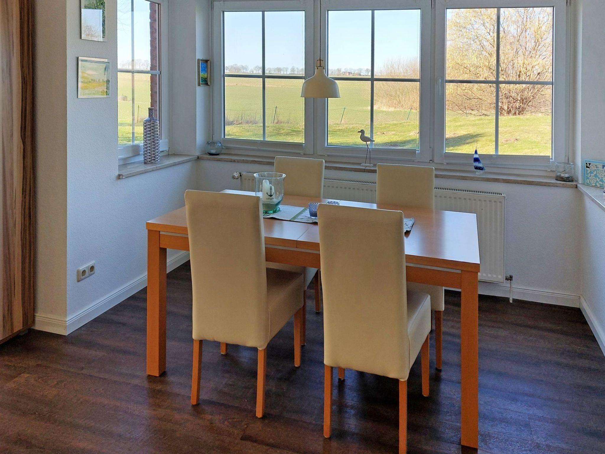 In der separaten Küche können Sie Ihre Urlaubsmahlzeiten zubereiten mit: Herd, Backofen, Mikrowelle, Dunstabzug, Kühlschrank mit integr. Gefrierfach, Spülmaschine usw. Ihre Urlaubsmahlzeiten nehmen Sie am Esstisch zu sich, oder Sie nutzen die saisonal möblierte Terrasse.