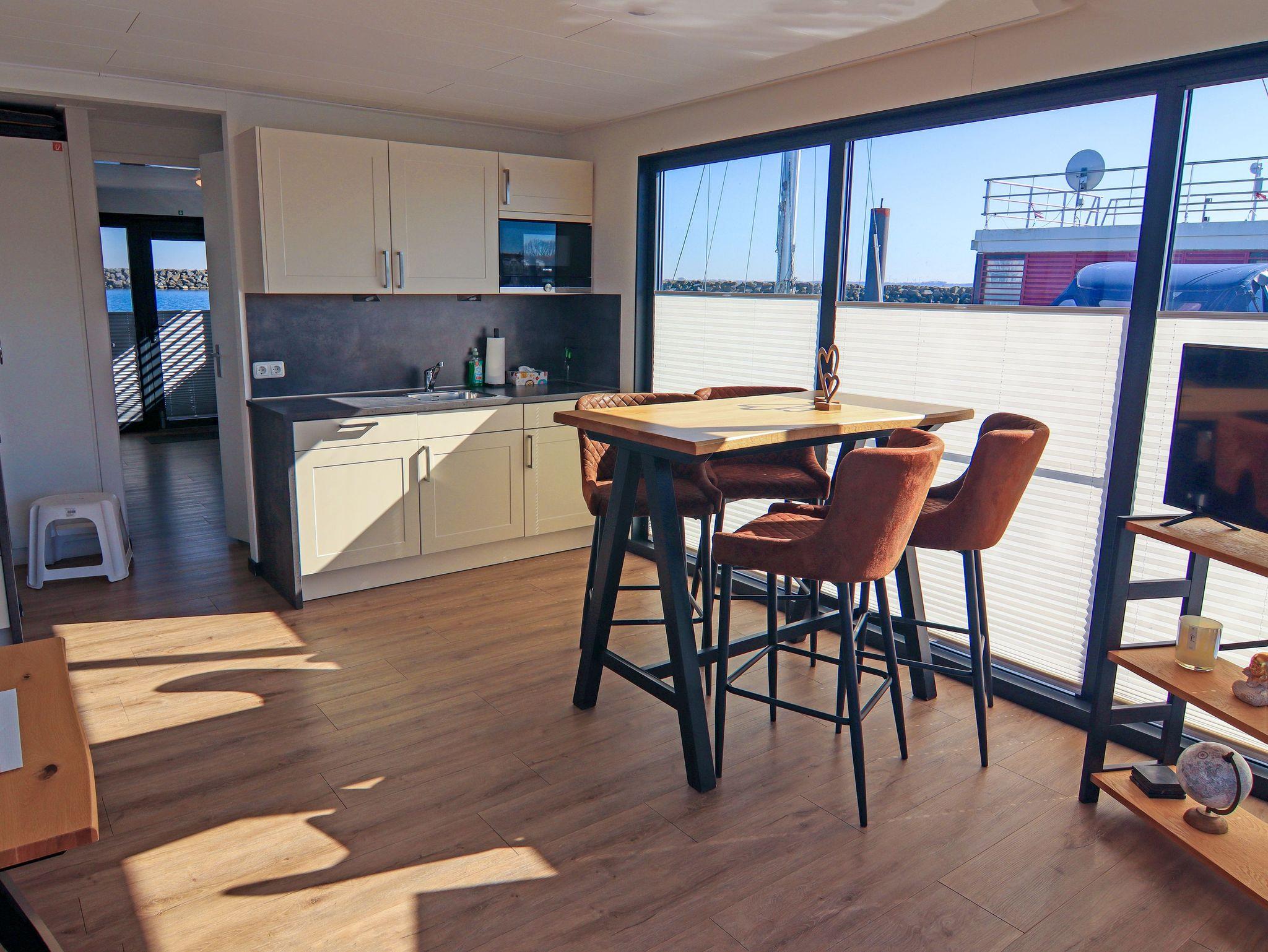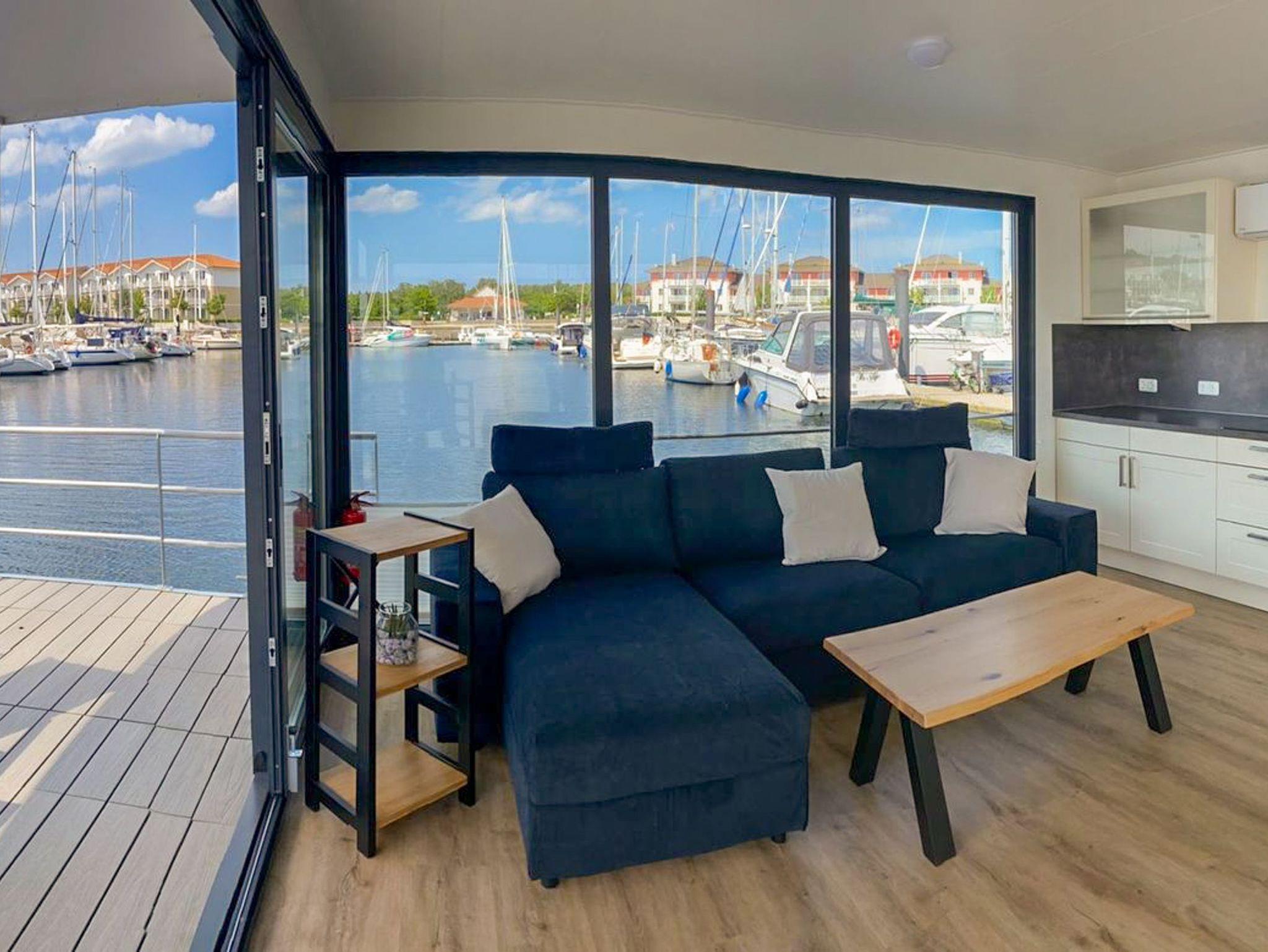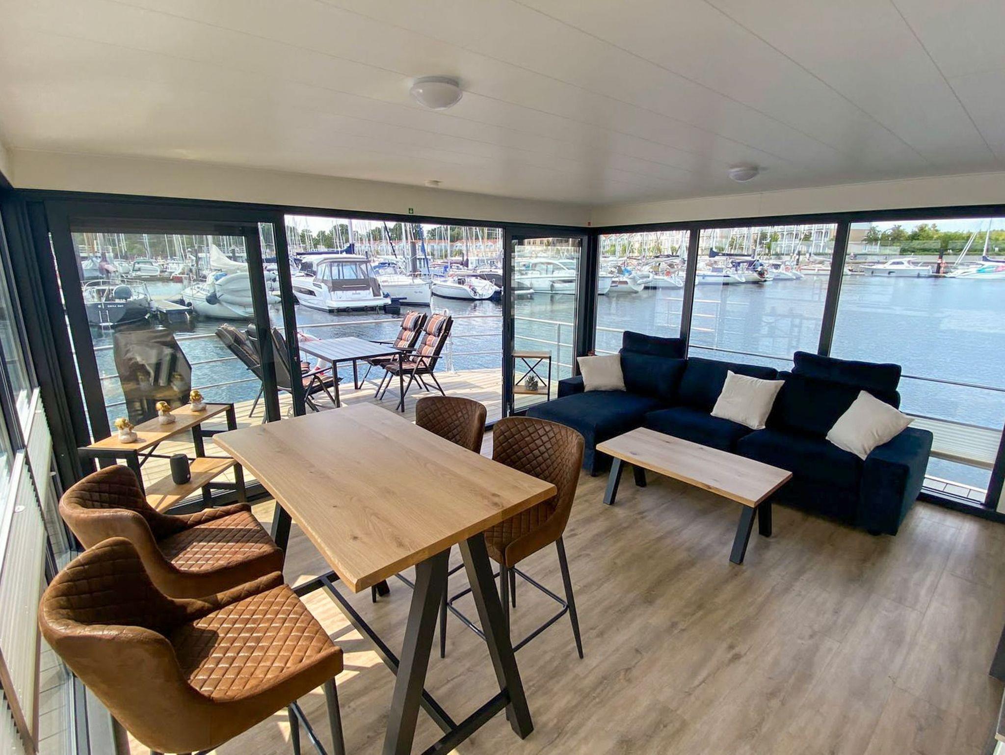 Floating Houses 44 im Ostseebad Boltenhagen bieten dir maritimes Urlaubsgefühl auf eine ganz besondere Art festliegend im Hafen und doch frei wie auf hoher See. Die modernen Hausboote sind für 3 bis 6 Personen geeignet und verbinden das ruhige Schaukeln des Wassers mit hochwertigem Wohnkomfort, viel Licht und ganz viel Luft zum Durchatmen. Jedes Hausboot verfügt über eine überdachte Terrasse am Bug und eine großzügige Dachterrasse ideal, um in den Tag zu starten, den Abend ausklingen zu lassen oder einfach die Sonne über dem Wasser zu genießen. Die Wohnbereiche sind offen gestaltet, mit gemütlicher Sofaecke, moderner Küchenzeile, Essplatz und großen Fensterfronten, die dir das Gefühl geben, direkt draußen zu sein. Ein bis zwei Schlafzimmer und ein hochwertiges Bad machen die Boote zum perfekten Rückzugsort für Paare, Familien oder Freunde. Ein Parkplatz pro Hausboot steht dir natürlich zur Verfügung.