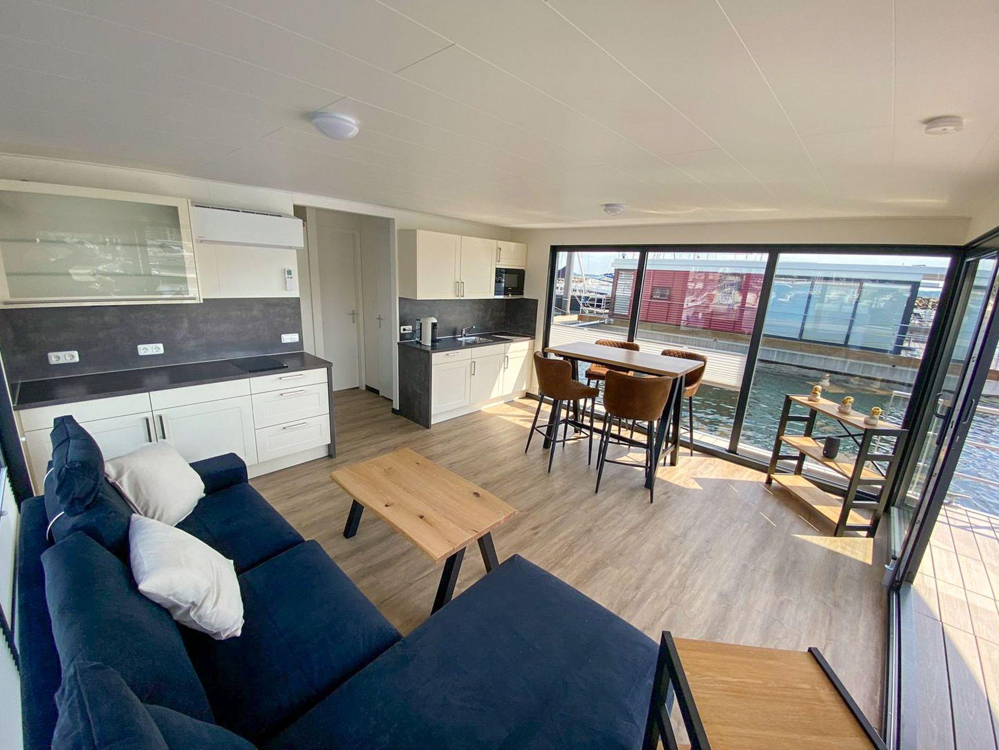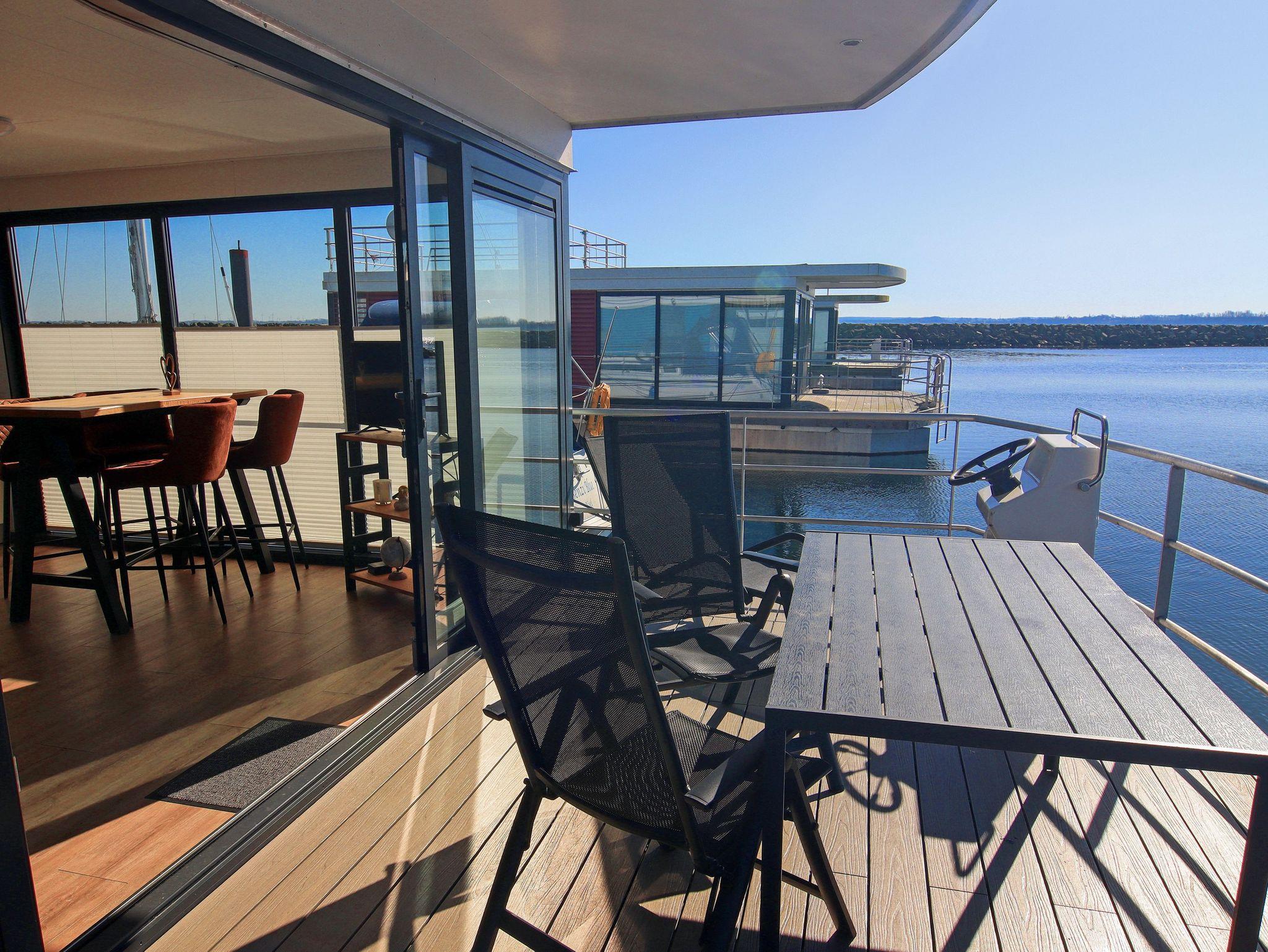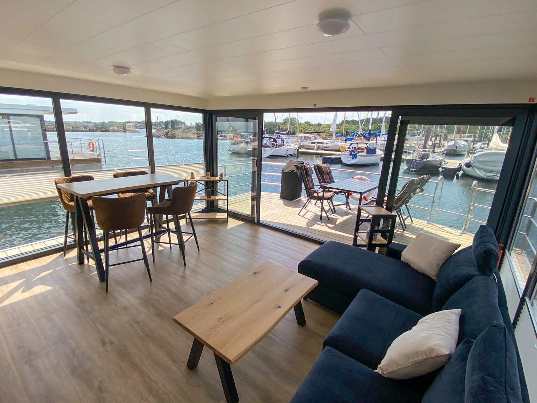 Floating Houses 44 im Ostseebad Boltenhagen bieten dir maritimes Urlaubsgefühl auf eine ganz besondere Art festliegend im Hafen und doch frei wie auf hoher See. Die modernen Hausboote sind für 3 bis 6 Personen geeignet und verbinden das ruhige Schaukeln des Wassers mit hochwertigem Wohnkomfort, viel Licht und ganz viel Luft zum Durchatmen. Jedes Hausboot verfügt über eine überdachte Terrasse am Bug und eine großzügige Dachterrasse ideal, um in den Tag zu starten, den Abend ausklingen zu lassen oder einfach die Sonne über dem Wasser zu genießen. Die Wohnbereiche sind offen gestaltet, mit gemütlicher Sofaecke, moderner Küchenzeile, Essplatz und großen Fensterfronten, die dir das Gefühl geben, direkt draußen zu sein. Ein bis zwei Schlafzimmer und ein hochwertiges Bad machen die Boote zum perfekten Rückzugsort für Paare, Familien oder Freunde. Ein Parkplatz pro Hausboot steht dir natürlich zur Verfügung.