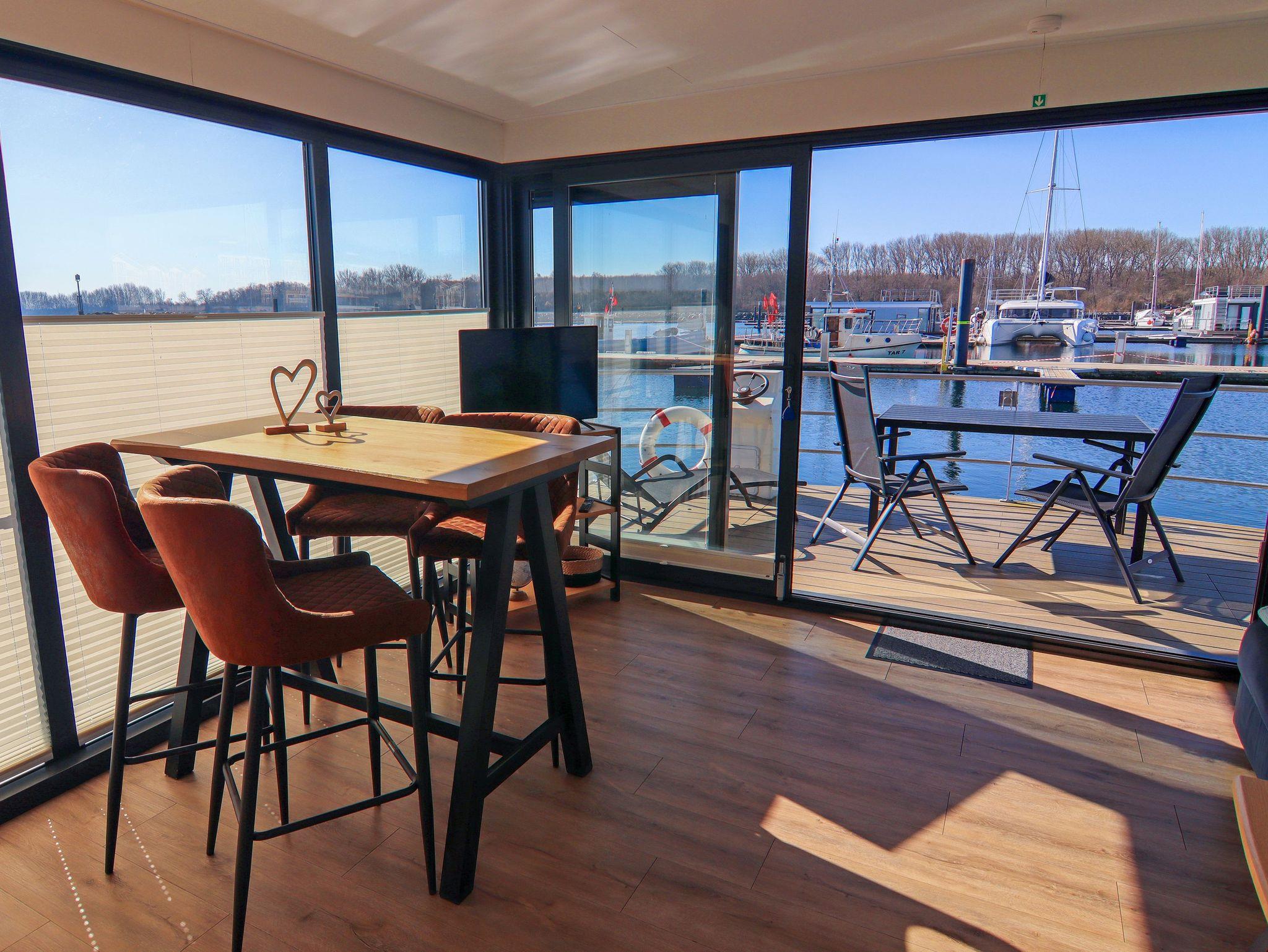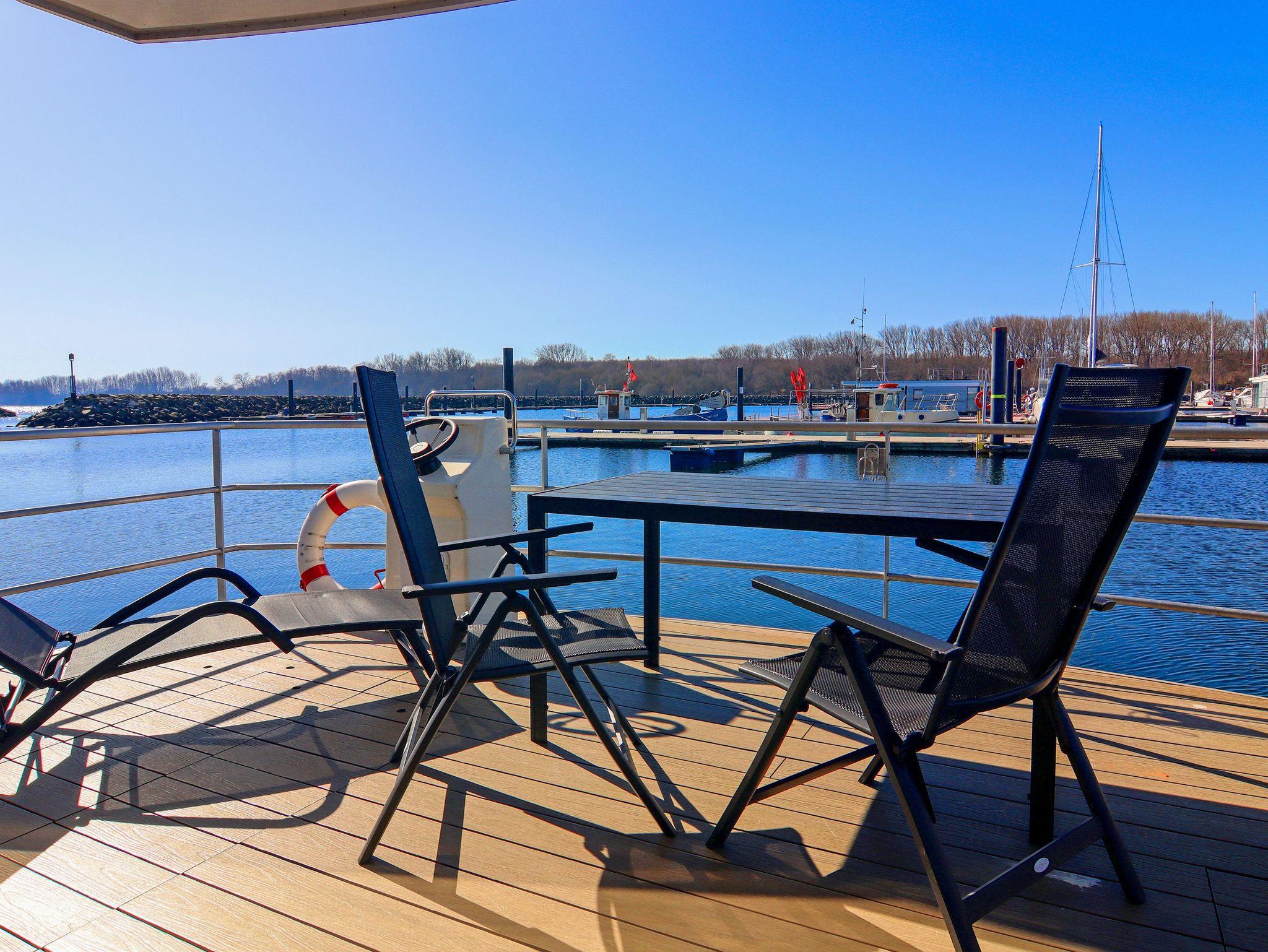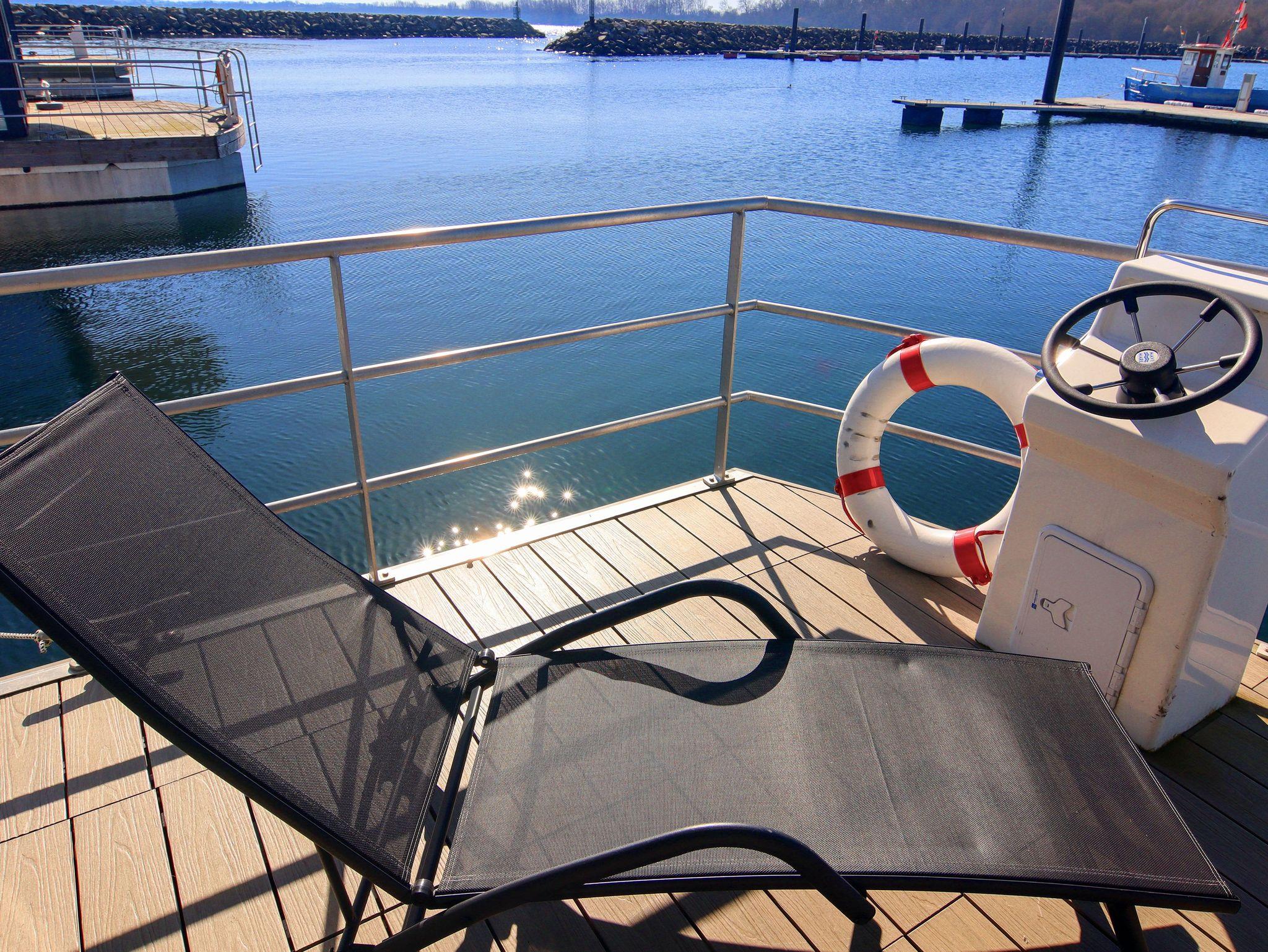 Floating House 10 im Ostseebad Boltenhagen ist dein gemütlicher Rückzugsort auf dem Wasser, perfekt für Paare oder kleine Familien, die das besondere Lebensgefühl eines Hausboots erleben möchten. Mit einem festen Liegeplatz im Yachthafen gelegen, bietet es Raum für bis zu 3 Personen. Das gesamte Leben an Bord spielt sich auf einer Ebene ab. Der Wohnraum ist offen gestaltet, hell und luftig mit großer Eck-Couch (140x200), Esstisch und direktem Zugang zur möblierten Terrasse am Bug (15m²). Hier startet dein Tag mit Blick aufs Wasser und endet mit einem Glas Wein in der Abendsonne. Die Küche ist in den Wohnbereich integriert und bietet alles, was du brauchst: Spülmaschine, Mikrowelle, Kühlschrank, Kaffeemaschine, Toaster, Wasserkocher und Geschirr. Das Schlafzimmer mit Doppelbett (160x200) und Kleiderschrank bietet dir viel Ruhe und Komfort. Ein modernes Duschbad und ein separates WC mit Waschtisch sorgen für praktischen Komfort. Besonderes Highlight ist die große Dachterrasse mit 25m² Fläche dein ganz privater Sonnenplatz über dem Hafen mit viel Weitblick und Raum für erholsame Stunden. Für dein Wohlbefinden an Bord sorgen Klimaanlage mit Warmluftheizung, Smart-TV, Radio und CD-Player. WLAN ist über das Hafennetz verfügbar und ein kostenfreier Parkplatz in Hafennähe ist ebenfalls inklusive.