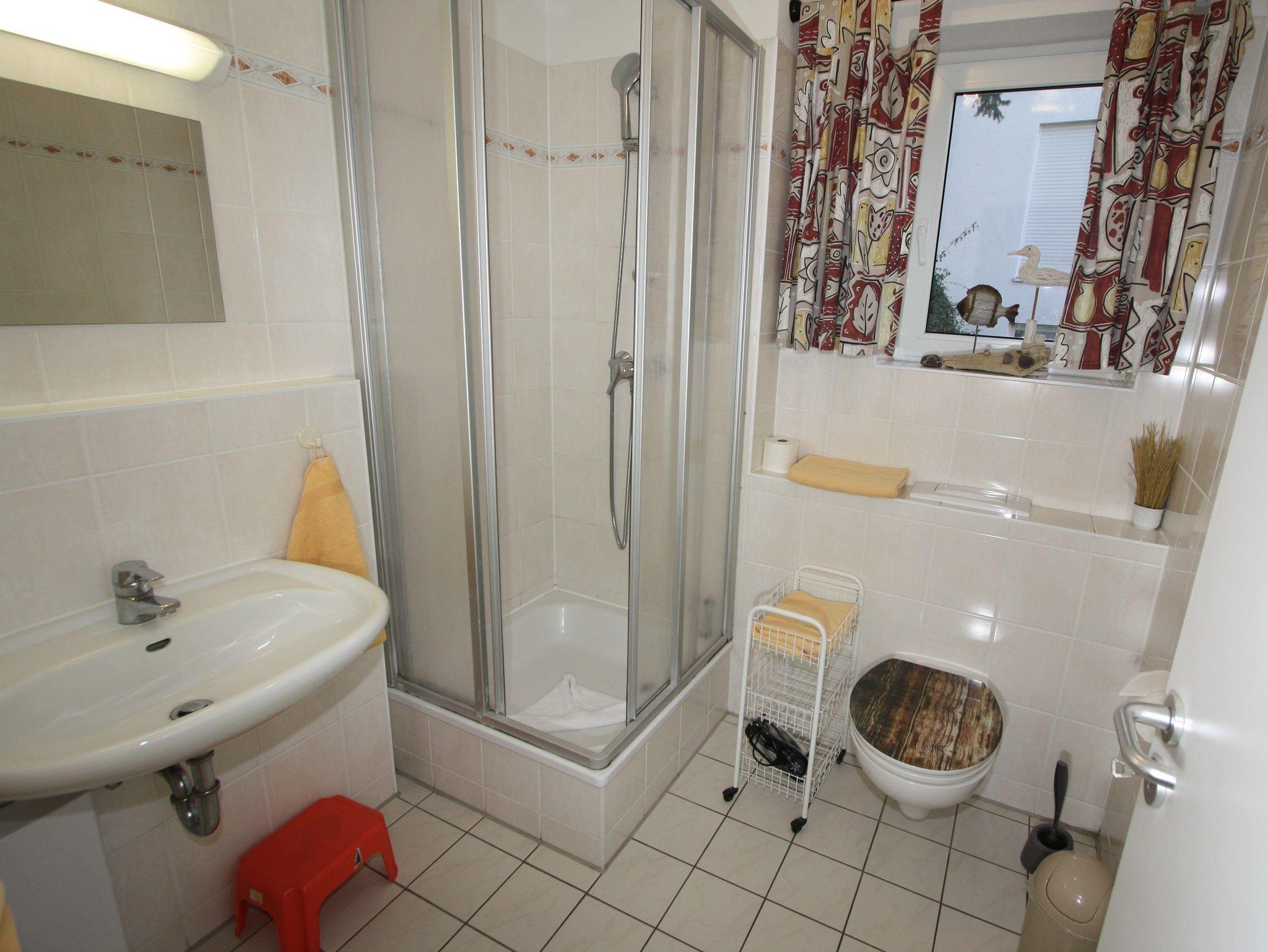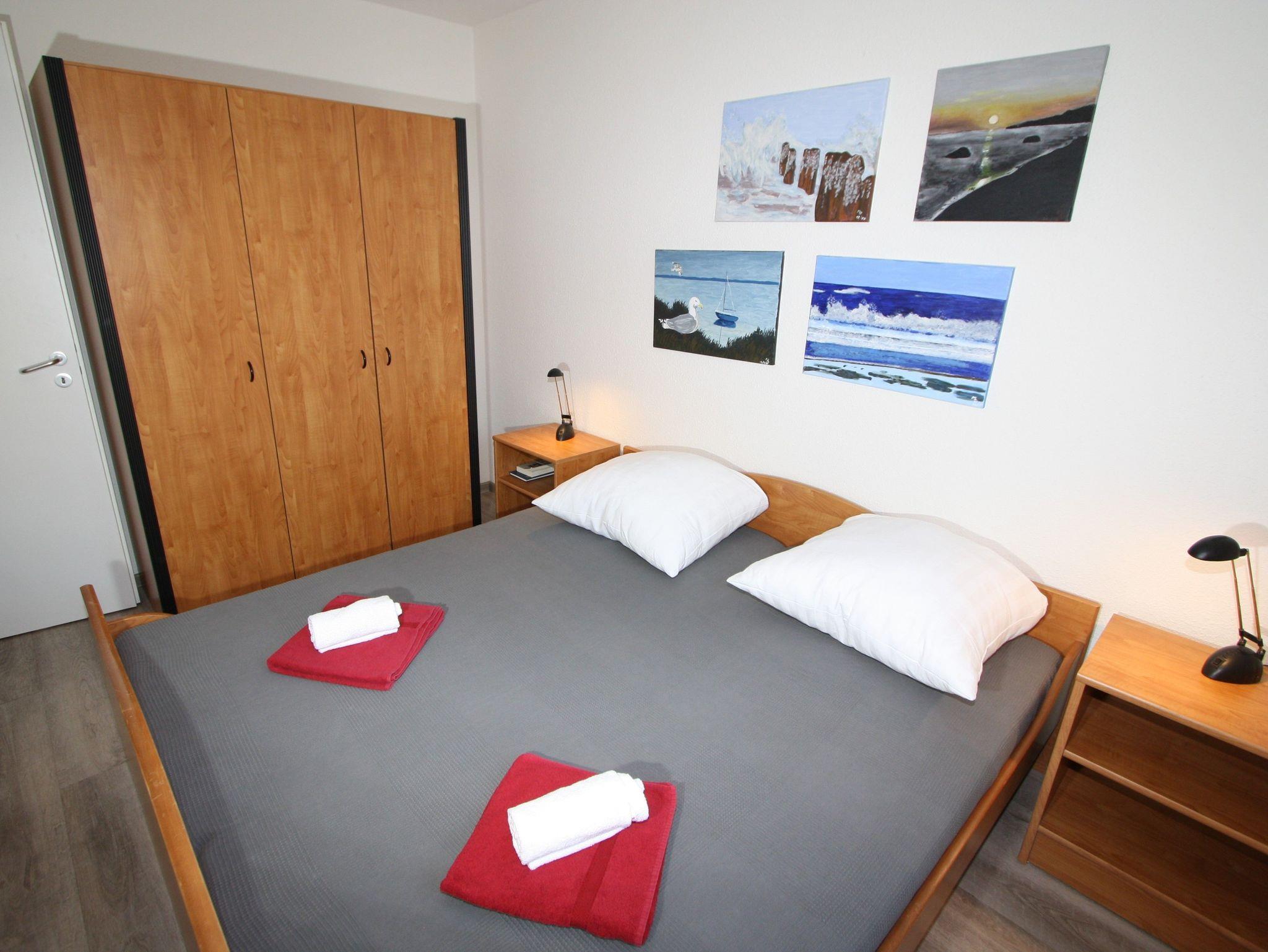 Sie wohnen in einem 2-Zimmer-Appartement für bis zu 4 Personen auf 40 m² Wohnfläche im Erdgeschoss, ein Schlafzimmer mit Doppelbett, Wohn-/Schlafraum mit bequemer Doppelbettcouch, separater Essplatz, voll ausgestatteter Küchenbereich mit Mikrowelle, Dusche/WC, Terrasse und SAT-Farb-TV. PKW-Stellplatz am Haus.