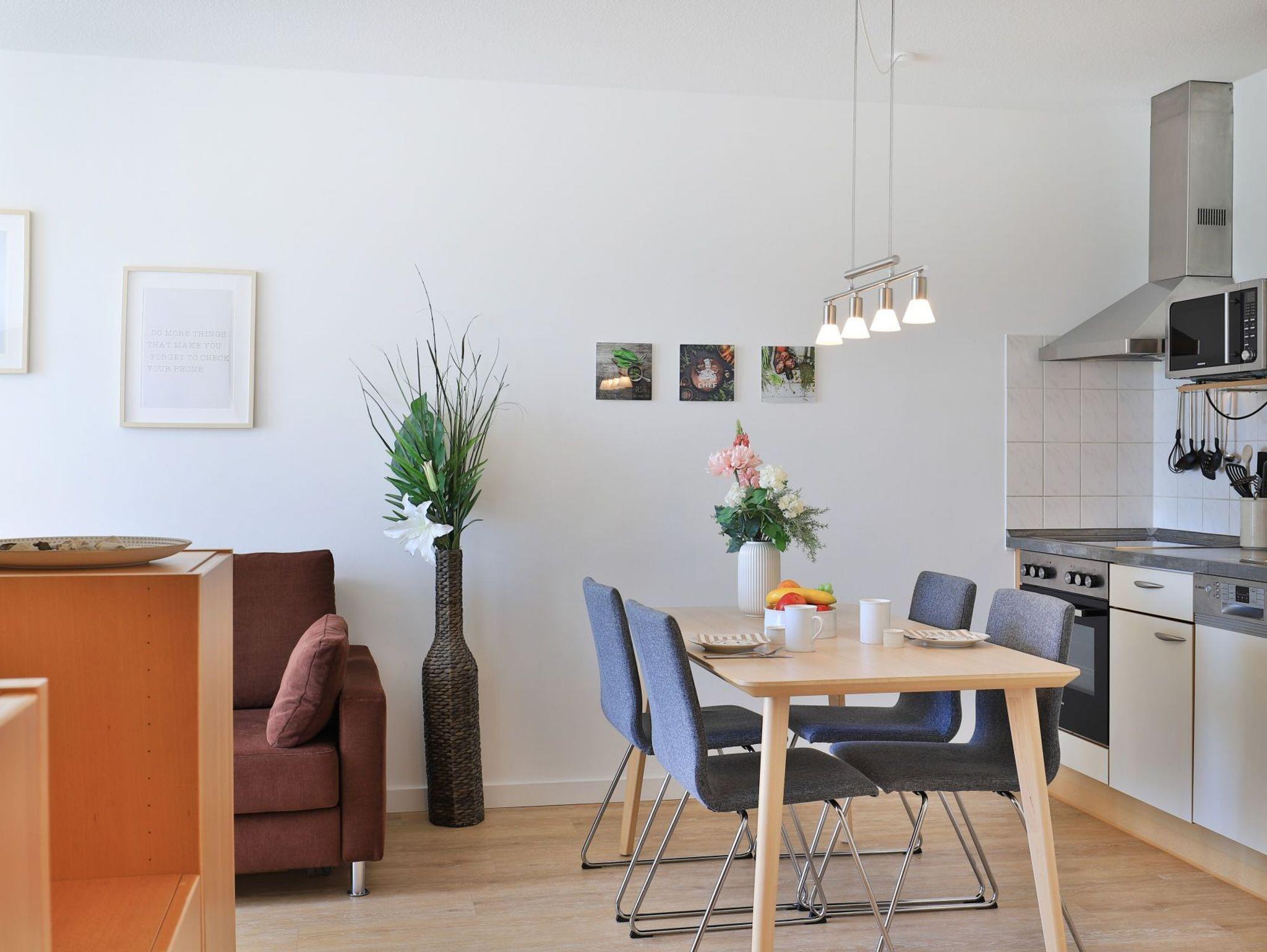 Das moderne 2-Zimmer-Appartement befindet sich im 2. Obergeschoss mit Balkon und einem traumhaften Blick auf die Wiesen. Auf 42 qm Wohnfläche können 3 Personen Ihren Urlaub verbringen. Das Appartement verfügt über einen kostenfreien Internet Zugang über WLAN, Sky-TV Cinema, -Sport, - Fußball-Bundesliga und ?Disney - Channel. Im Haus stehen Ihnen ein Fitnessraum/ Sauna gegen Gebühr zur Verfügung.