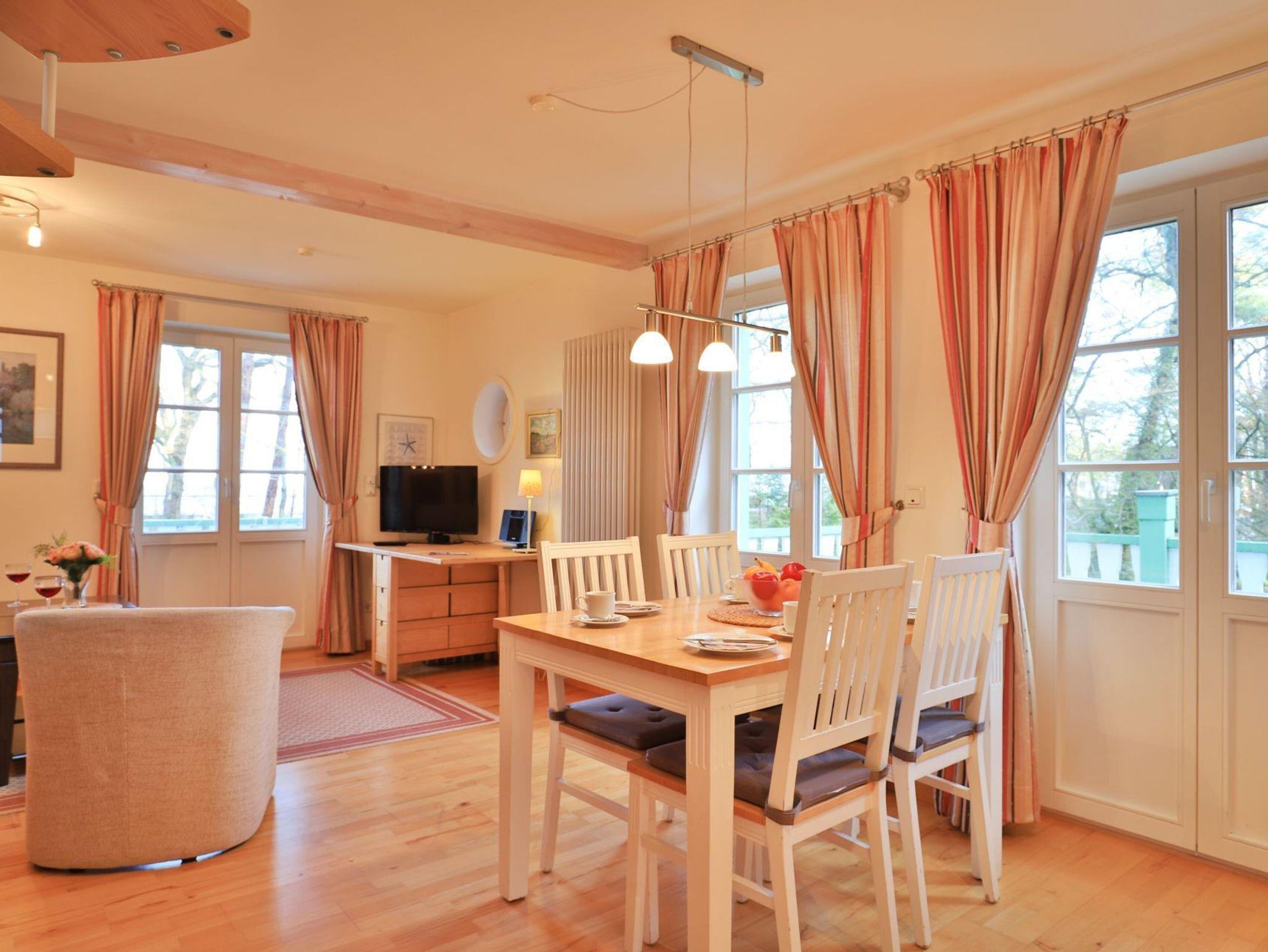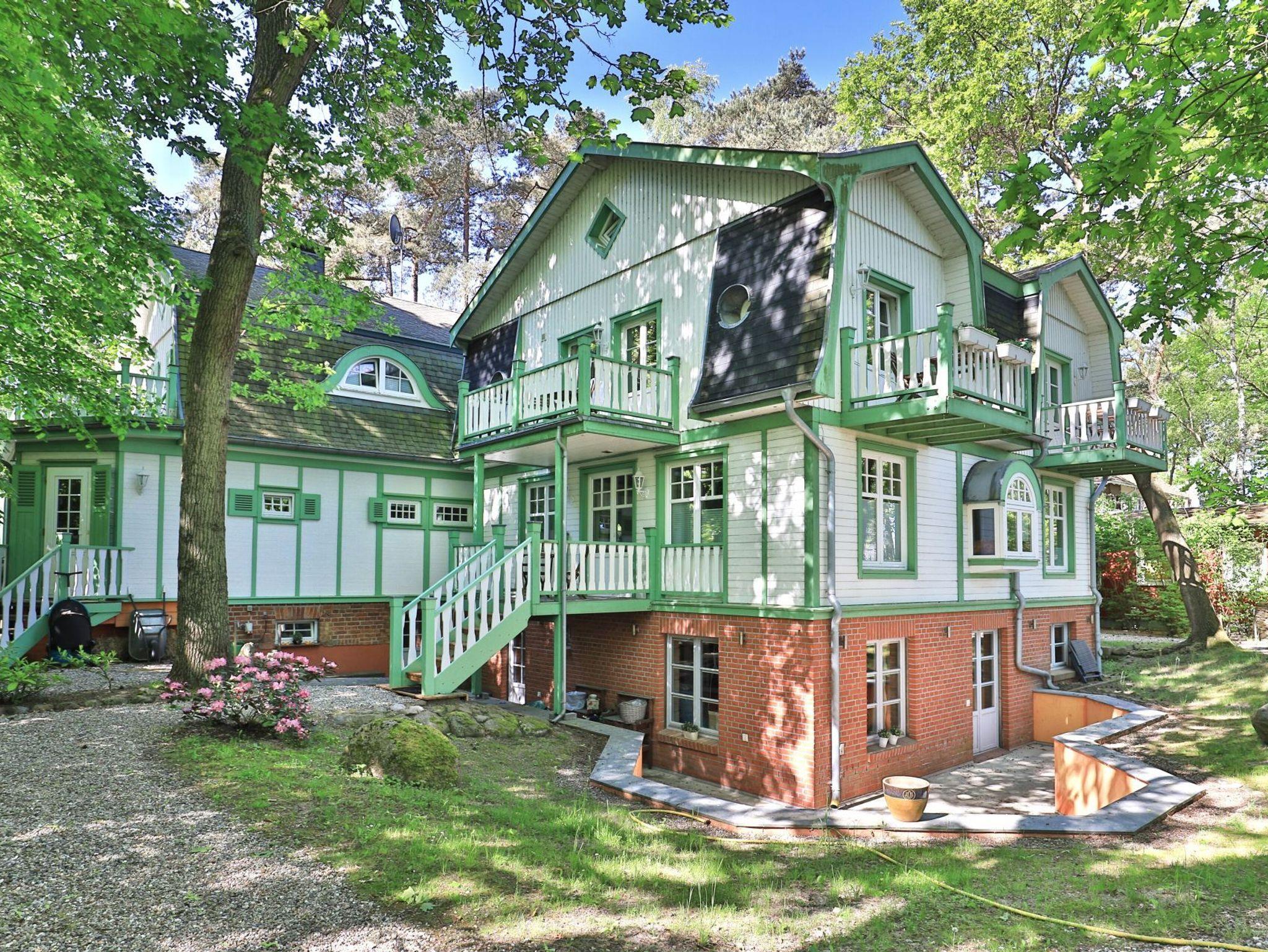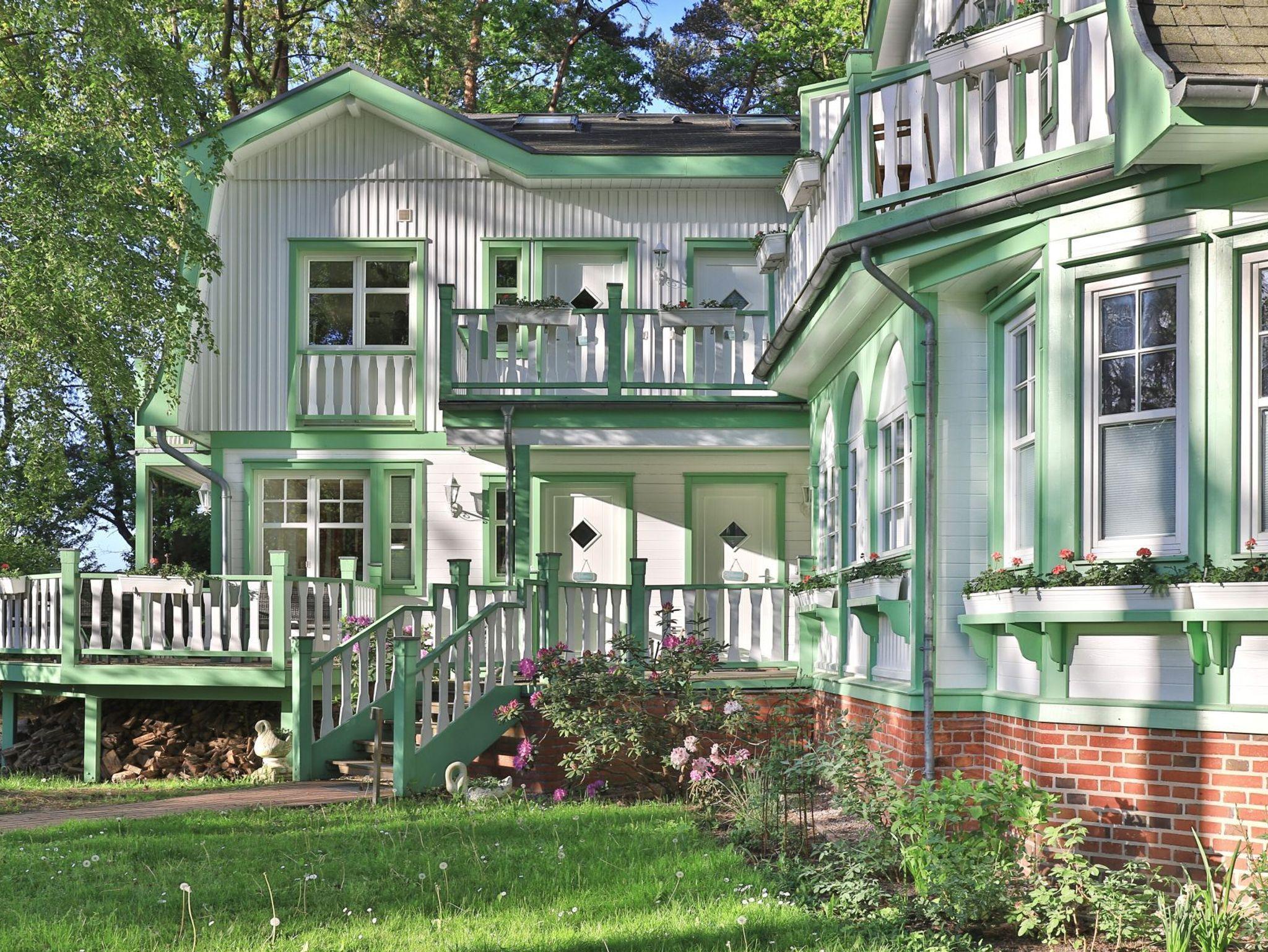Wellenrauschen inklusive. In dieser Traumvilla wohnen Sie nur 30m zum Strand. Die vollständig sanierte Villa im Landhausstil der 20iger Jahre, beheimatet sieben exklusive Suiten je Haus. Die edlen Appartements bieten überwiegend Seeblick, sind teilweise mit Kaminofen ausgestattet und bieten Raum für 2 bis 4 Gäste. Bezogene Betten und Handtücher bei Anreise inklusive. Sämtliche Wohnungen verwöhnen mit Balkon, bzw. zwei Balkonen oder ggf. Balkonterrasse mit Gartenzugang. Einige Suiten sind Maisonetten Wohnungen. Das anmutige Landhaus ist umgeben von einem 2000qm Waldpark mit Kiefern und Rhododendron. Kostenfreies WLAN und PKW-Außenstellplätze auf dem hauseigenen Grundstück. Keine Haustiere. Nichtraucher.