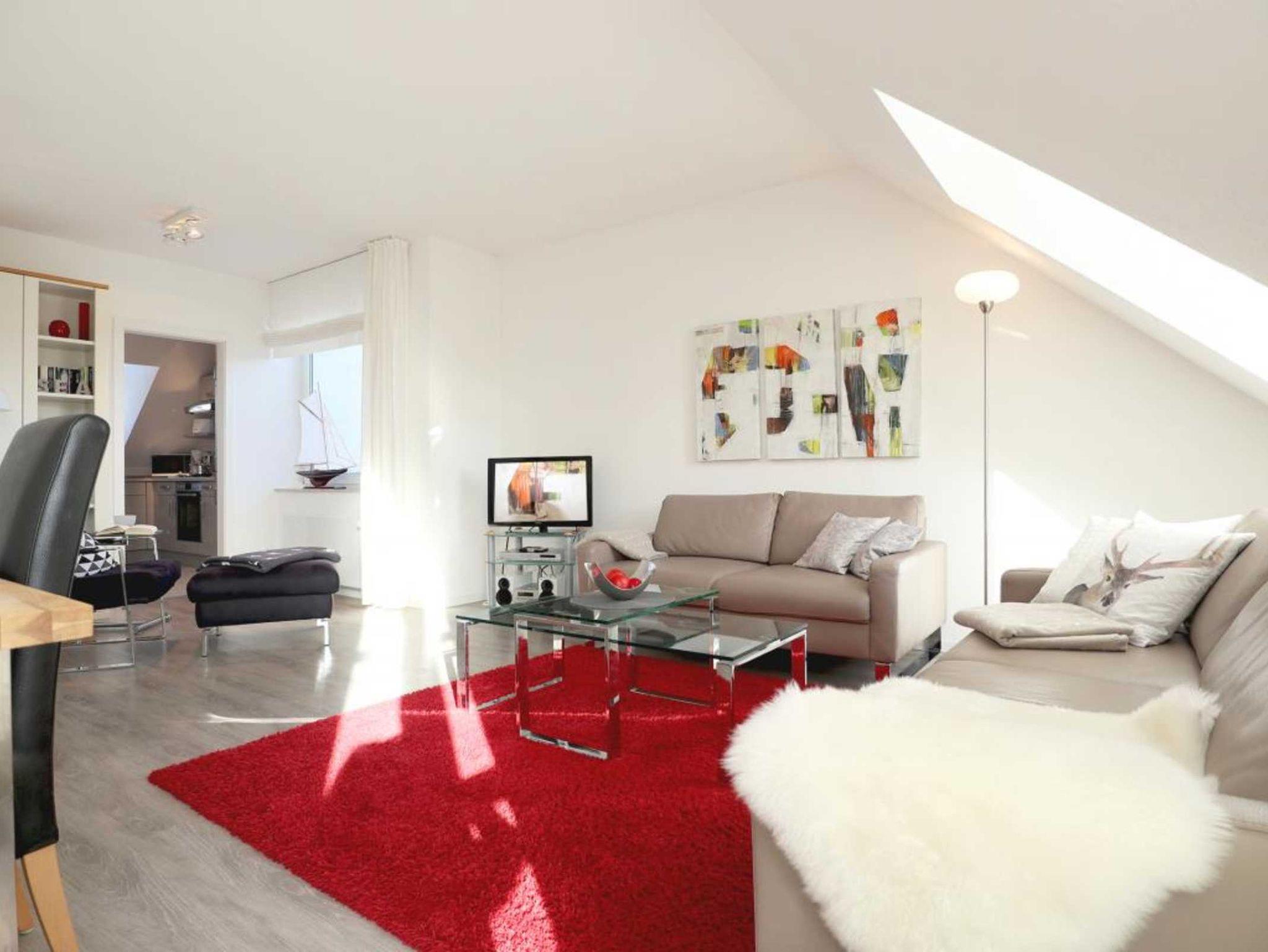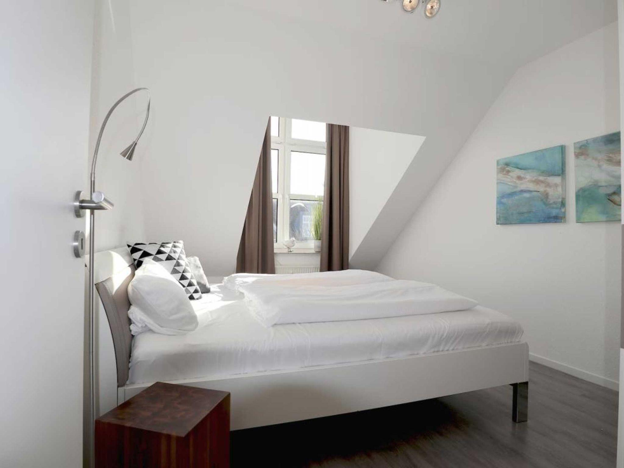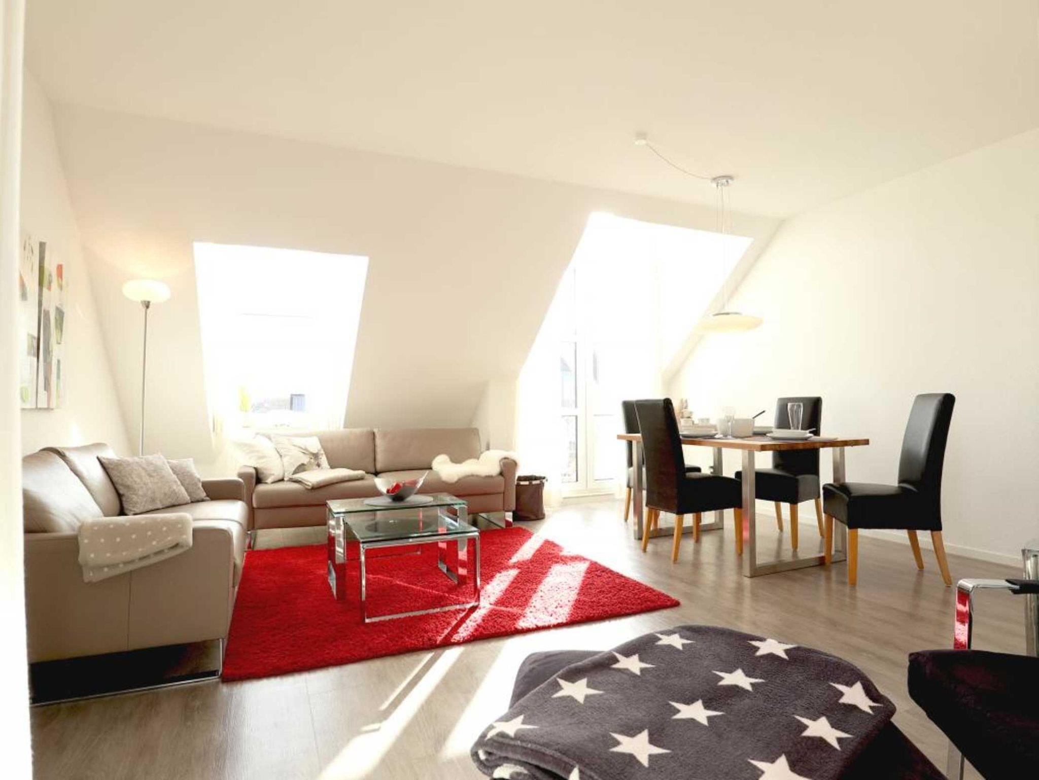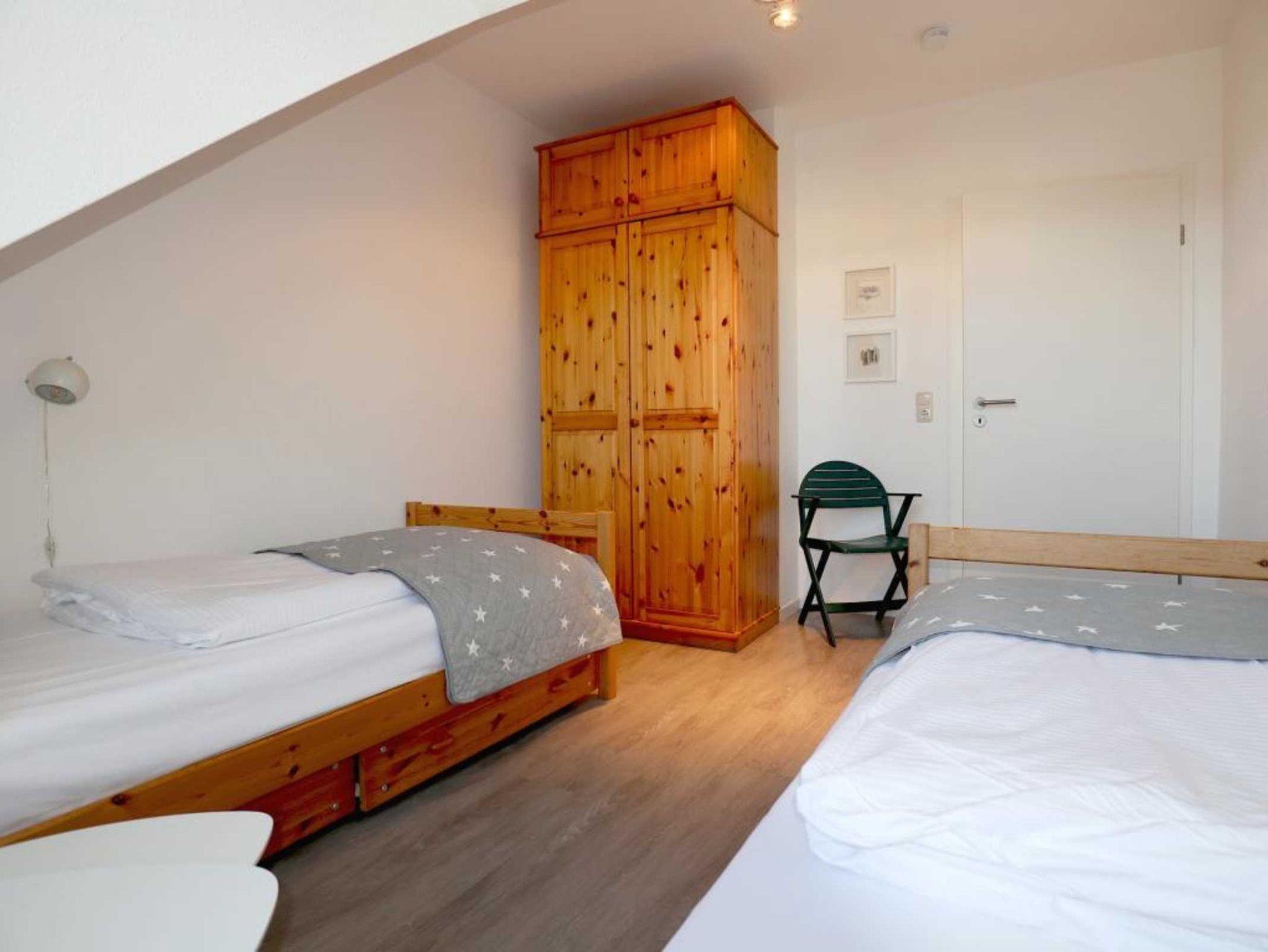 Nur 350 Meter vom Strand entfernt befindet sich die modernisierte 3-Zimmer-Ferienwohnung ? Sünnslag 13-59 -mit Balkon im Dachgeschoss einer gepflegten Ferienwohnanlage. Das hochwertig ausgestattete Appartement bietet auf ca. 63 qm Wohnfläche Platz für bis zu 4 Personen. Der helle Wohnbereich verfügt über ein bequemes Sofa, einen gemütlichen Ruhesessel sowie einen Esstisch für gemeinsame Mahlzeiten. Zur Unterhaltung stehen ein Flachbild-TV, DVD-Player, Musikanlage und kostenfreies WLAN zur Verfügung. Die separate Küche ist voll ausgestattet mit Cerankochfeld, Backofen, Mikrowelle, Kühlschrank, Geschirrspüler sowie Kaffeemaschine, Toaster und Wasserkocher. Zwei separate Schlafzimmer sorgen für erholsamen Schlaf: eines mit Doppelbett und Kleiderschrank, das zweite mit zwei Einzelbetten. Ein zweckmäßig ausgestattetes Duschbad ist vorhanden. Für kleine Kinder steht ein Reisebett im Appartement. Ebenso sind Bügeleisen und Bügelbrett vorhanden. Ein kostenfreier, reservierter PKW-Stellplatz befindet sich direkt am Haus. Nichtraucherwohnung, Haustiere sind nicht erlaubt. Zur Erleichterung des Reisegepäcks können Bettwäsche und Handtücher gegen Gebühr hinzugebucht werden; die Wäschepakete erhalten Sie bei Anreise im Büro.
