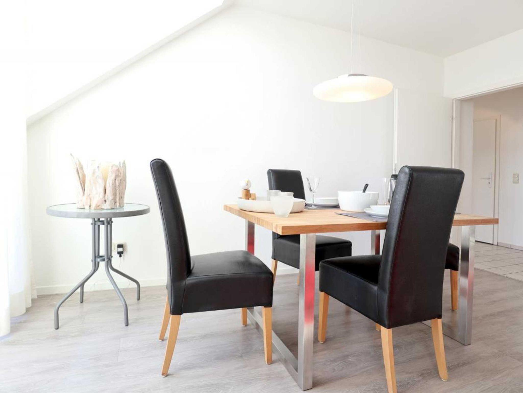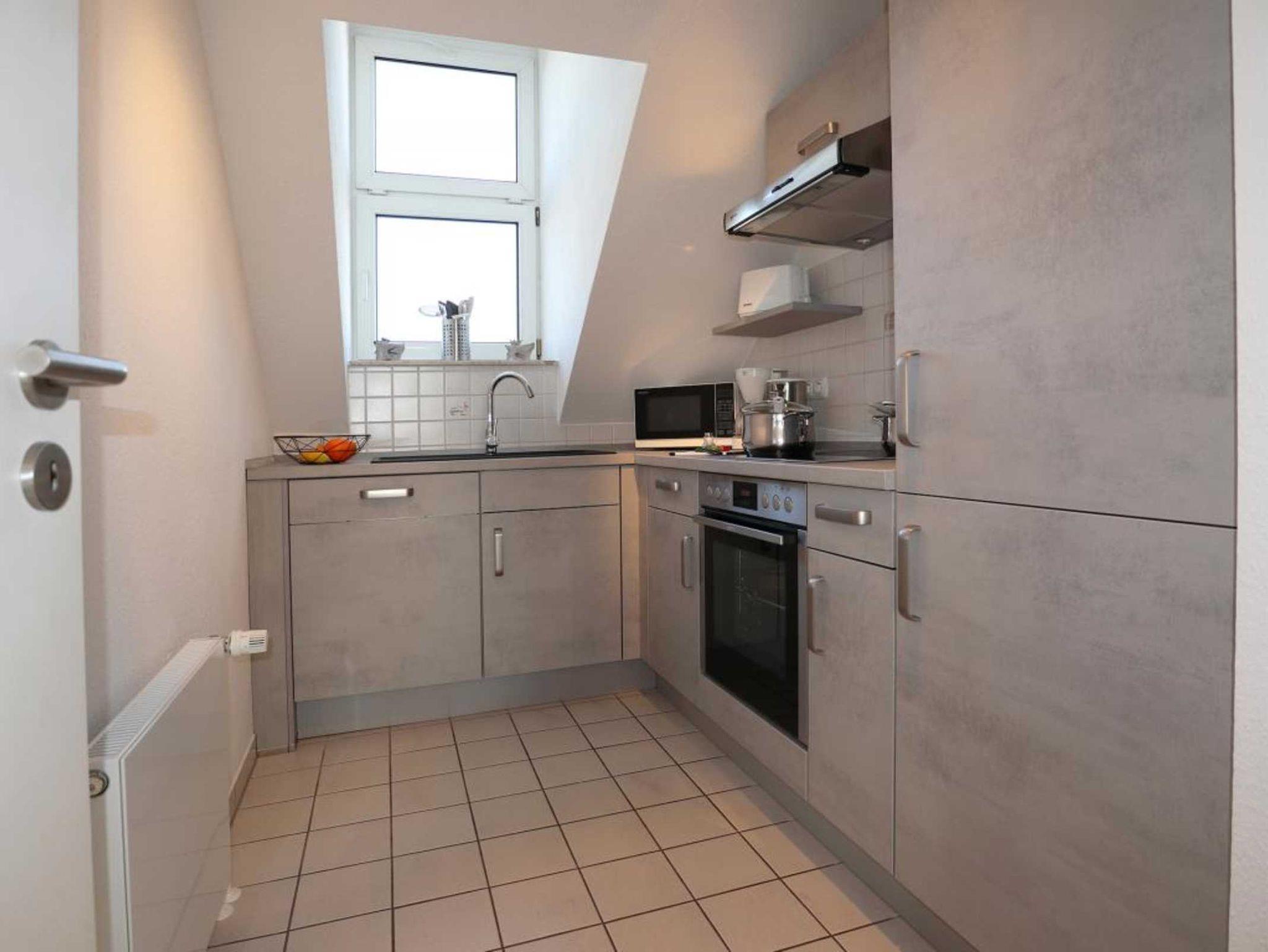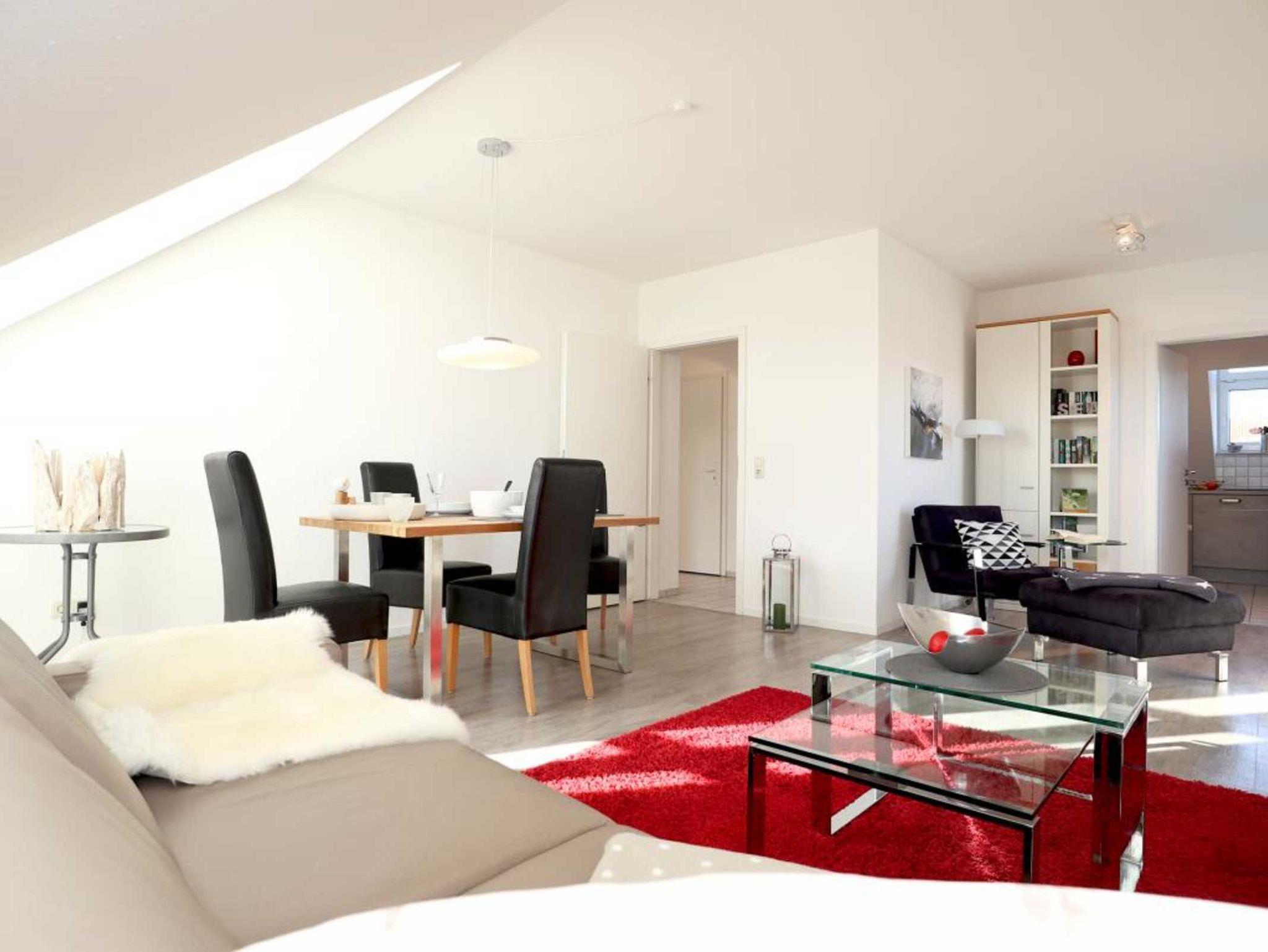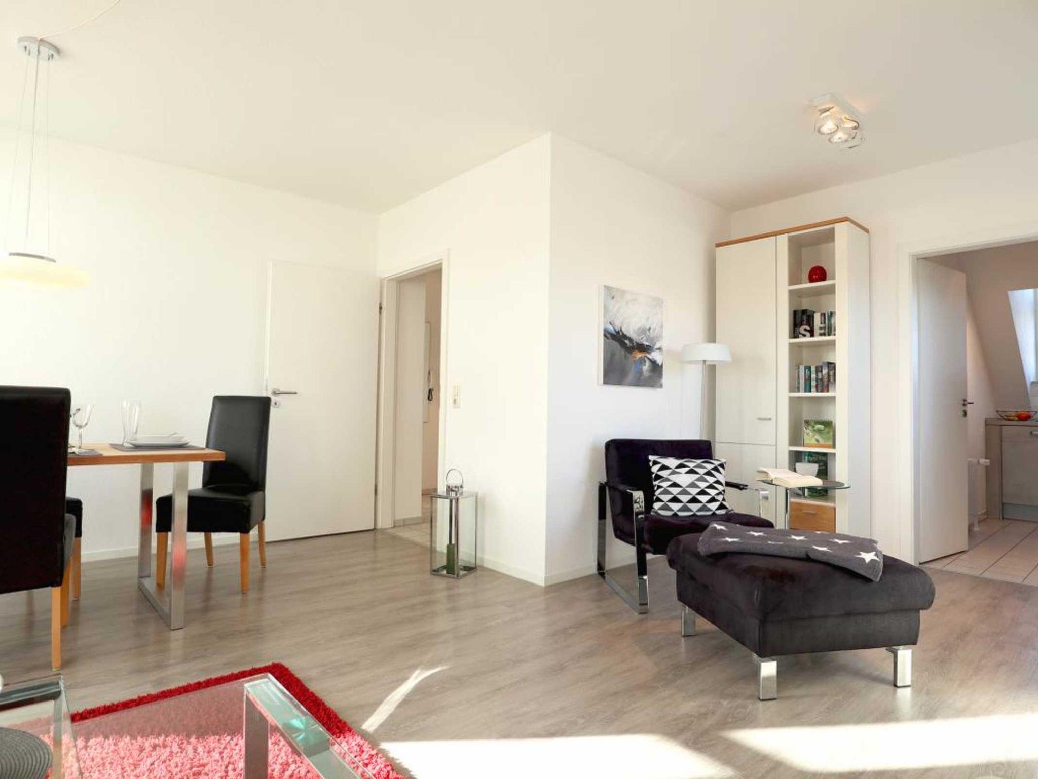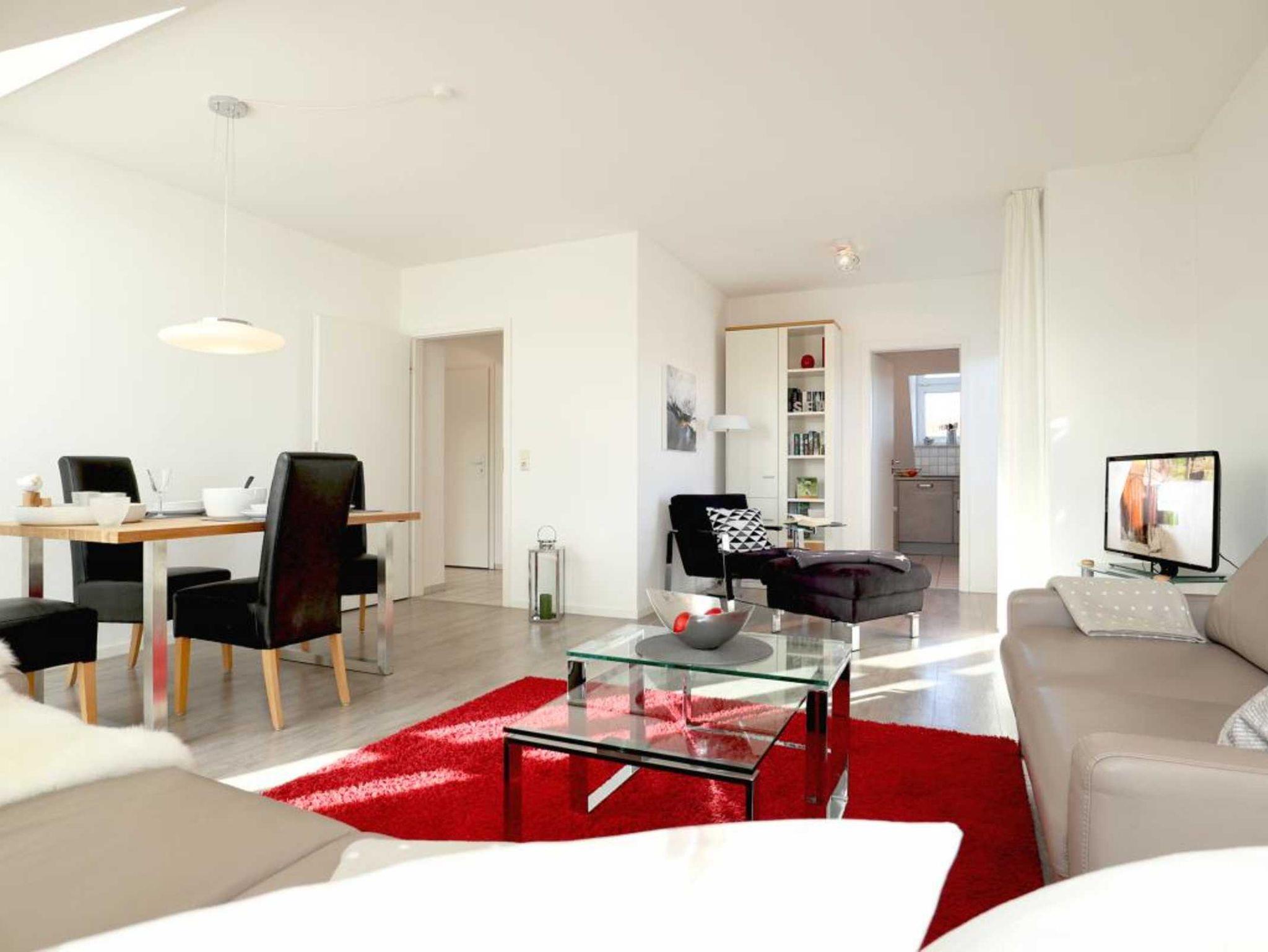 Nur 350 Meter vom Strand entfernt befindet sich die modernisierte 3-Zimmer-Ferienwohnung ? Sünnslag 13-59 -mit Balkon im Dachgeschoss einer gepflegten Ferienwohnanlage. Das hochwertig ausgestattete Appartement bietet auf ca. 63 qm Wohnfläche Platz für bis zu 4 Personen. Der helle Wohnbereich verfügt über ein bequemes Sofa, einen gemütlichen Ruhesessel sowie einen Esstisch für gemeinsame Mahlzeiten. Zur Unterhaltung stehen ein Flachbild-TV, DVD-Player, Musikanlage und kostenfreies WLAN zur Verfügung. Die separate Küche ist voll ausgestattet mit Cerankochfeld, Backofen, Mikrowelle, Kühlschrank, Geschirrspüler sowie Kaffeemaschine, Toaster und Wasserkocher. Zwei separate Schlafzimmer sorgen für erholsamen Schlaf: eines mit Doppelbett und Kleiderschrank, das zweite mit zwei Einzelbetten. Ein zweckmäßig ausgestattetes Duschbad ist vorhanden. Für kleine Kinder steht ein Reisebett im Appartement. Ebenso sind Bügeleisen und Bügelbrett vorhanden. Ein kostenfreier, reservierter PKW-Stellplatz befindet sich direkt am Haus. Nichtraucherwohnung, Haustiere sind nicht erlaubt. Zur Erleichterung des Reisegepäcks können Bettwäsche und Handtücher gegen Gebühr hinzugebucht werden; die Wäschepakete erhalten Sie bei Anreise im Büro.