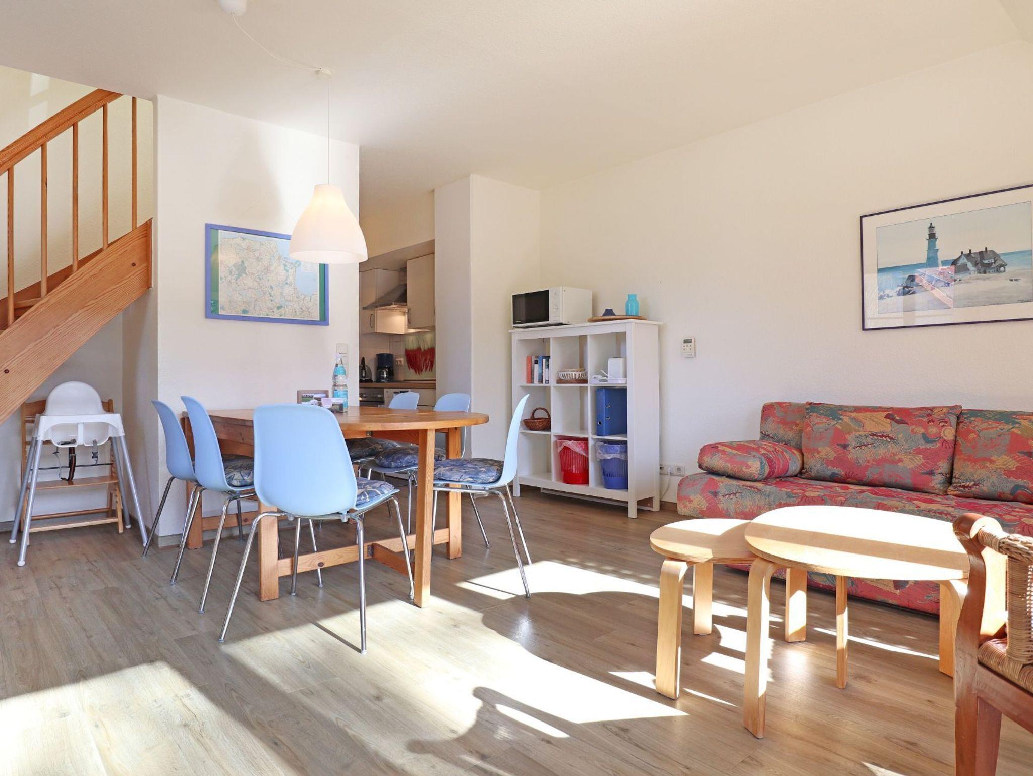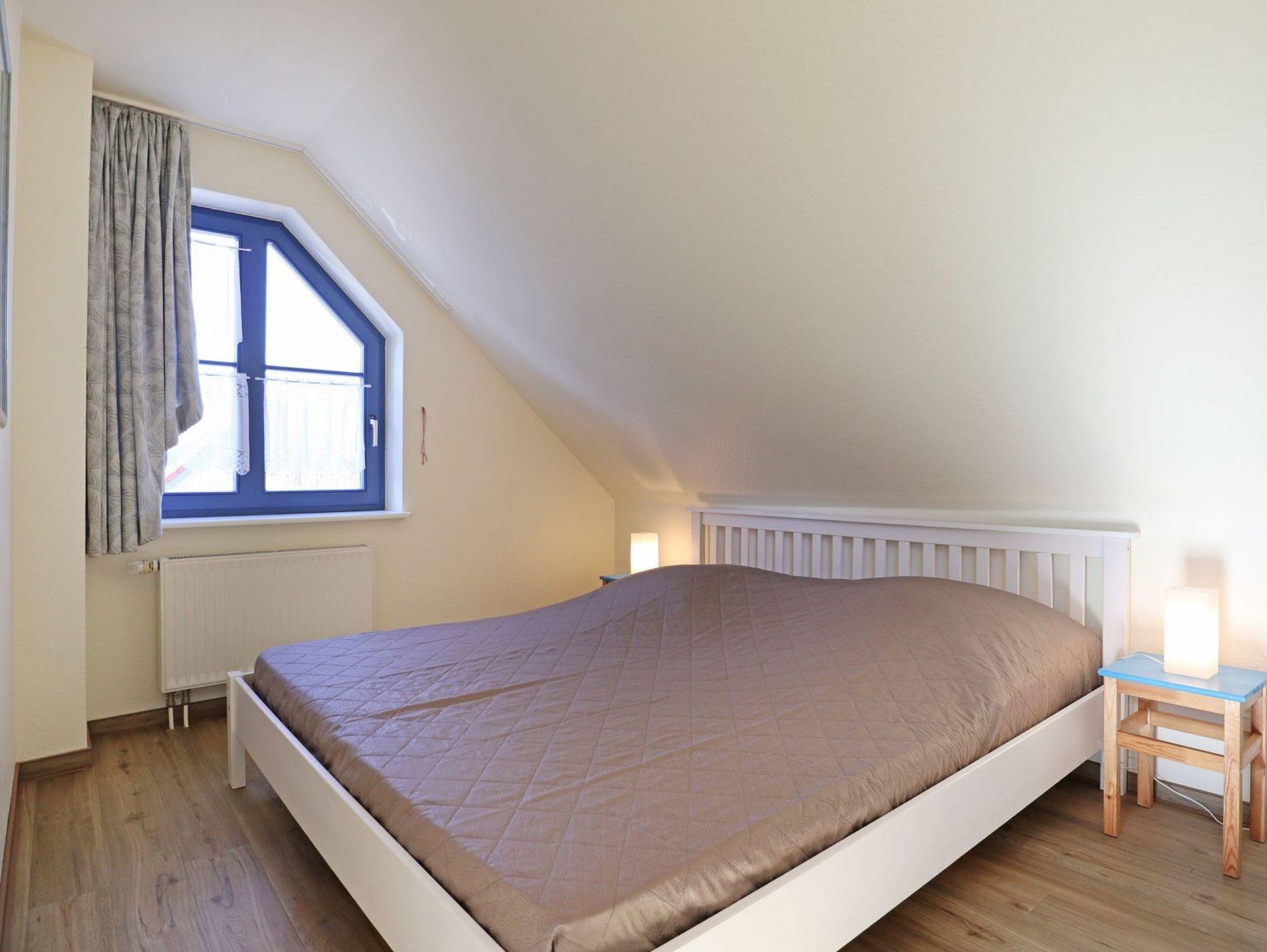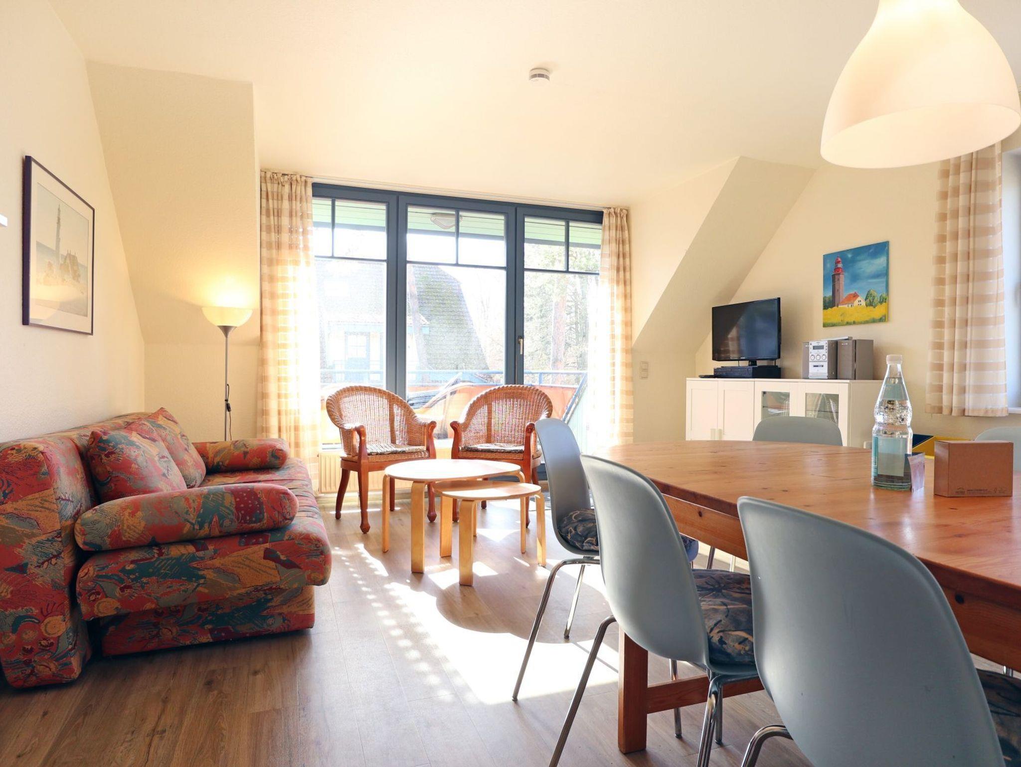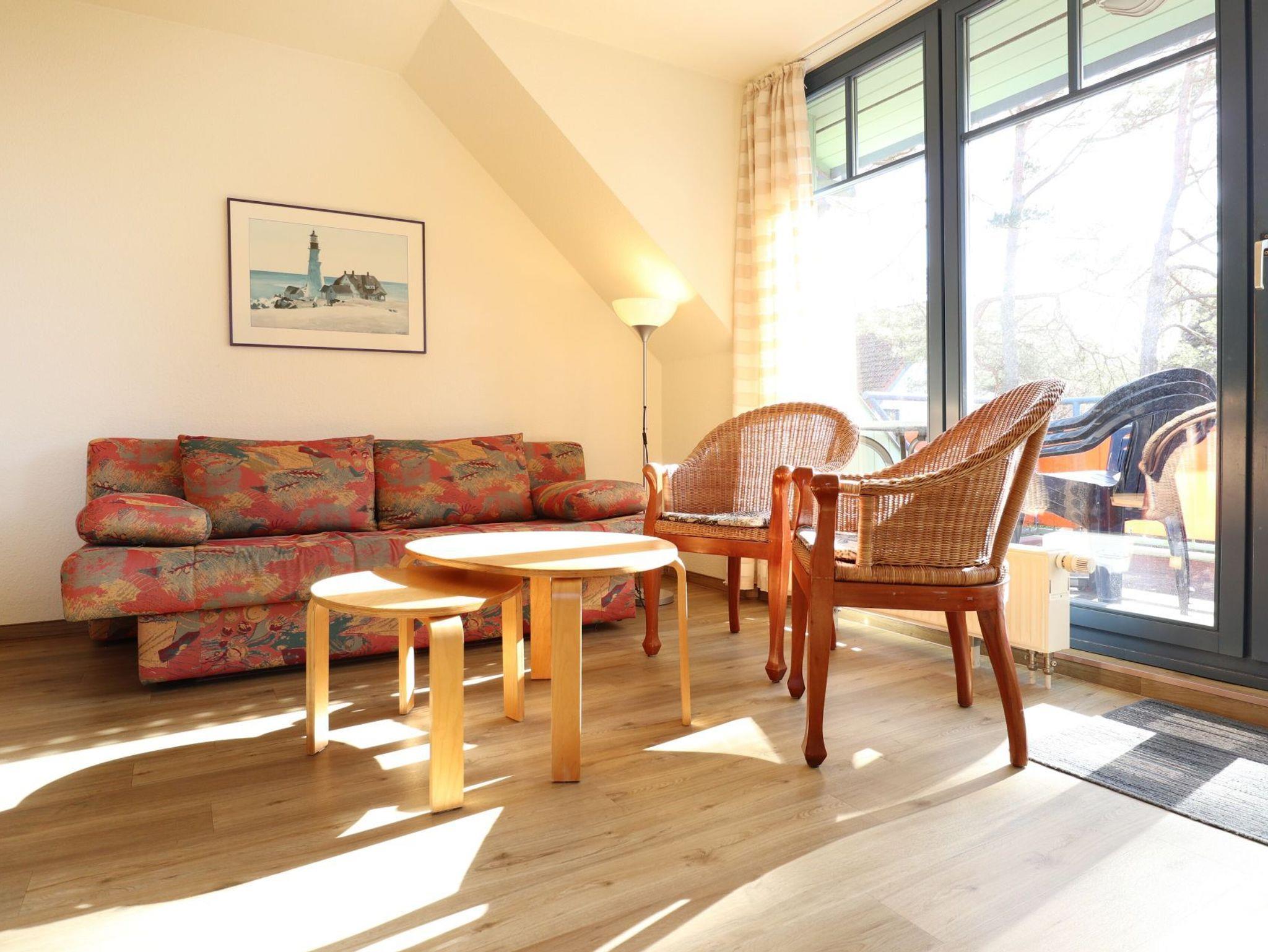Die 4-Zimmer-Maisonetten-Ferienwohnung Papillon 11-8 ist ein familienfreundliches Appartement mit einer Wohnfläche von 65qm. Mit bis zu 6 Personen können Sie hier einen erholsamen Urlaub verbringen. Der großzügige Wohn-/Essbereich ist mit einem Sofa, ausziehbar als Schlafsofa mit zwei weiteren Schlafgelegenheiten sowie weiteren Sitzmöglichkeiten und einem Esstisch möbliert. Ein Fernsehgerät, Musikanlage und kostenfreie WLAN- Nutzung bieten Abwechslung. Vom Wohnbereich betritt man den saisonal möblierten Süd-Balkon. In der Wohnküche stehen Ceranherd, Backofen, Mikrowelle, Geschirrspüler sowie Kühlschrank mit integr. Gefrierfach, Kaffeemaschine, Toaster und Wasserkocher bereit. Ebenso befinden sich auf dieser Wohnebene ein separates Schlafzimmer mit zwei Einzelbetten und Kleiderschrank. Das Duschbad ist mit zwei Waschtischen und WC ausgestattet. Über eine Treppe im Wohnbereich gelangen Sie in die obere Ebene mit zwei weiteren Schlafzimmern. Eines mit Doppelbett 1,60m mal 2,00m und Kleiderschrank. Das dritte Schlafzimmer mit Doppelbett 1,80m mal 2,00m, Kleiderschrank. Gegen Gebühr können Sie im Untergeschoß des Hauses Waschmaschine und Wäschetrockner nutzen. Ein Kinderhochstuhl sowie ein Kinderreisebett, Kinderspielzeug stehen ohne zusätzliche Gebühr bereit. Ihren PKW parken Sie kostenfrei auf dem wohnungseigenen Außenstellplatz. Bitte beachten Sie, dass es sich um eine Nichtraucherwohnung handelt. Haustiere sind nicht gestattet. Zur Ostsee gelangen Sie in nur ca. 250 Meter.