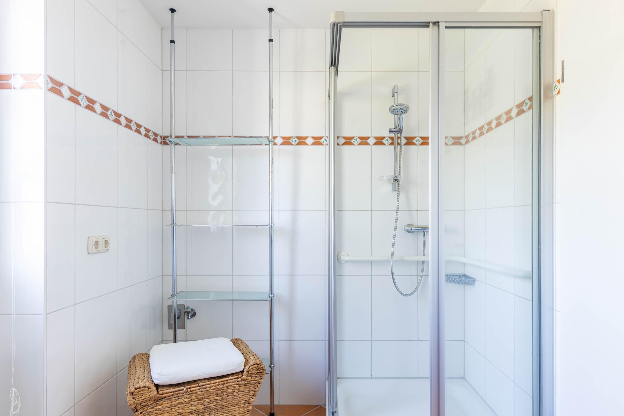 Auch ein modernes Badezimmer mit Fenster, welches mit ebenerdiger Dusche und WC ausgestattet ist, befindet sich auf dieser Etage.