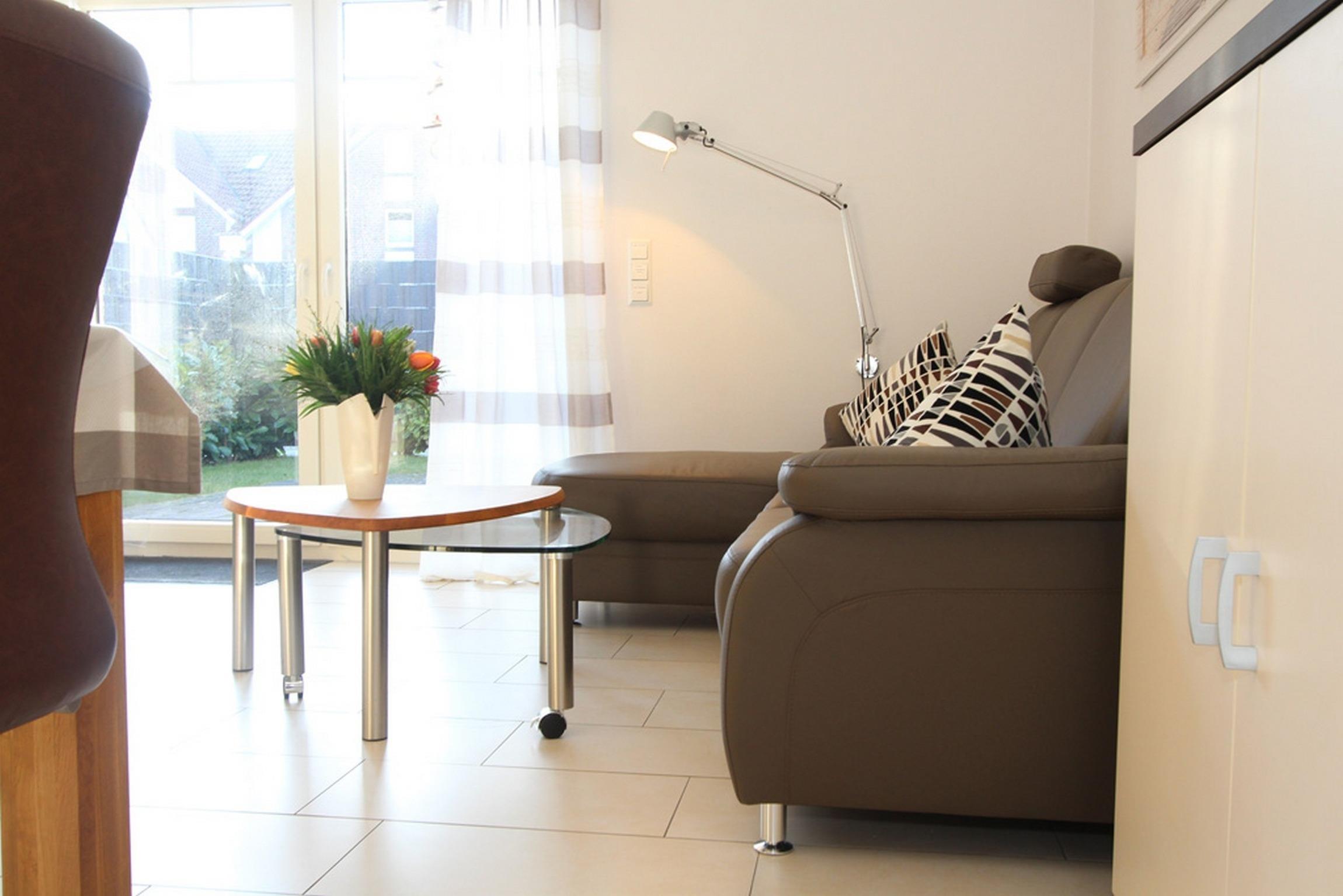 Die möblierte Südwest-Terrasse und der mit Sichtschutz eingezäunte Garten laden zum Entspannen und zu gemütlichen Grillabenden ein. Auch ein eigener Strandkorb ist hier für unsere Gäste aufgestellt.