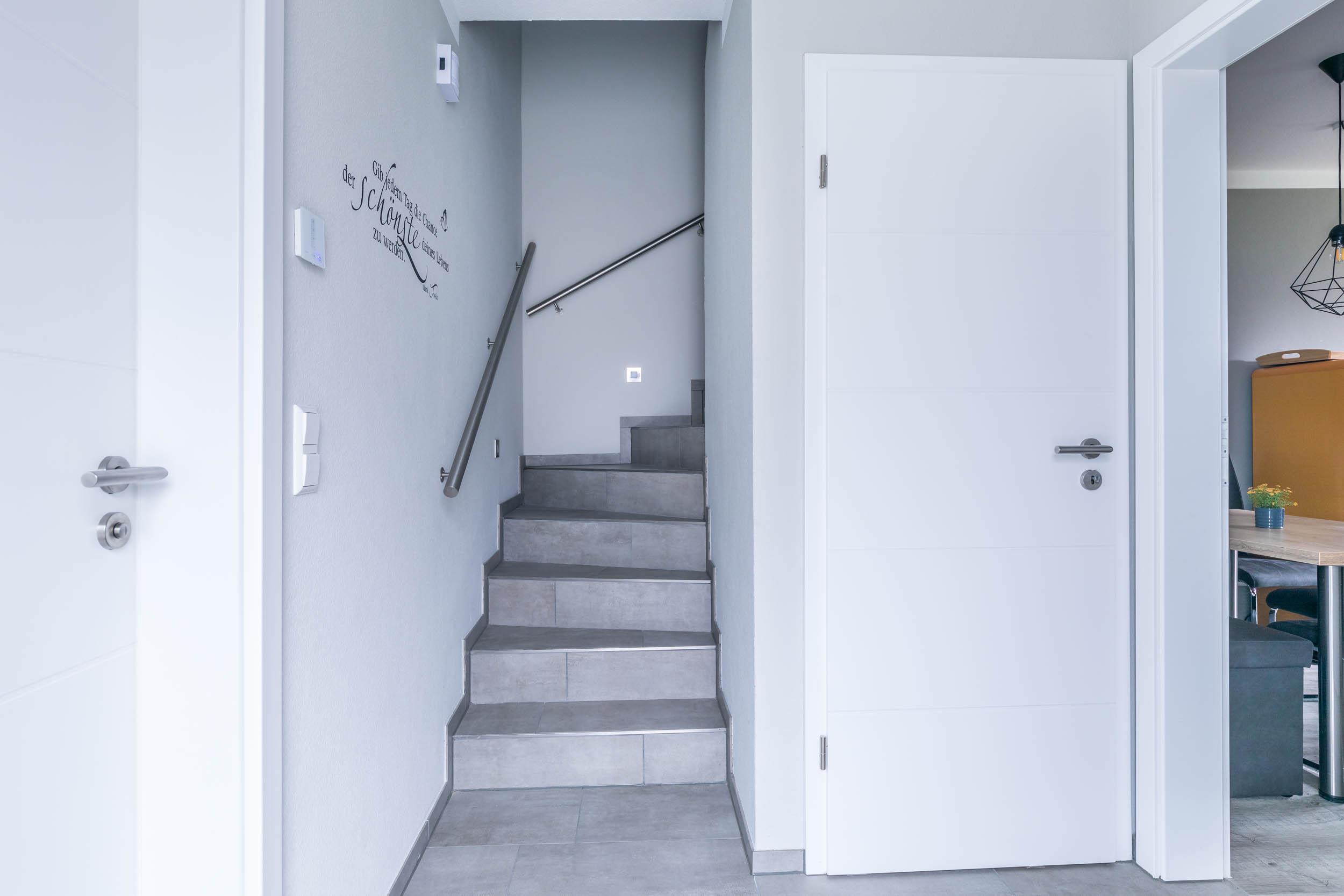 Weiterhin befindet sich auf dieser Ebene ein modernes Bad mit bodengleicher Dusche und WC. Das Fenster sorgt außerdem für ausreichend Tageslicht und hilft beim Lüften nach dem Duschen.