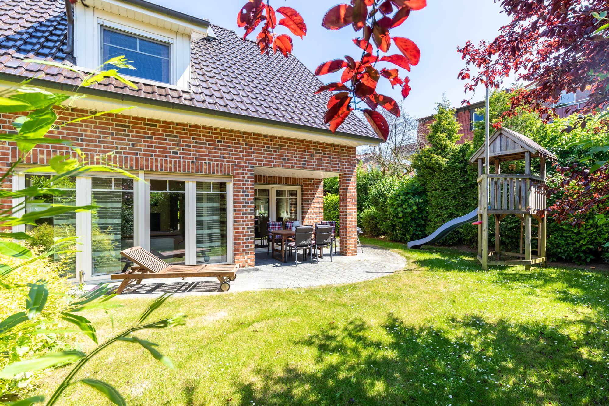Für einen lauschigen Grillabend kann man es sich auf der möblierten Südwest-Terrasse gemütlich machen. Im angrenzenden Garten können Kinder nach Herzenslust toben oder ein Sonnenbad genossen werden.