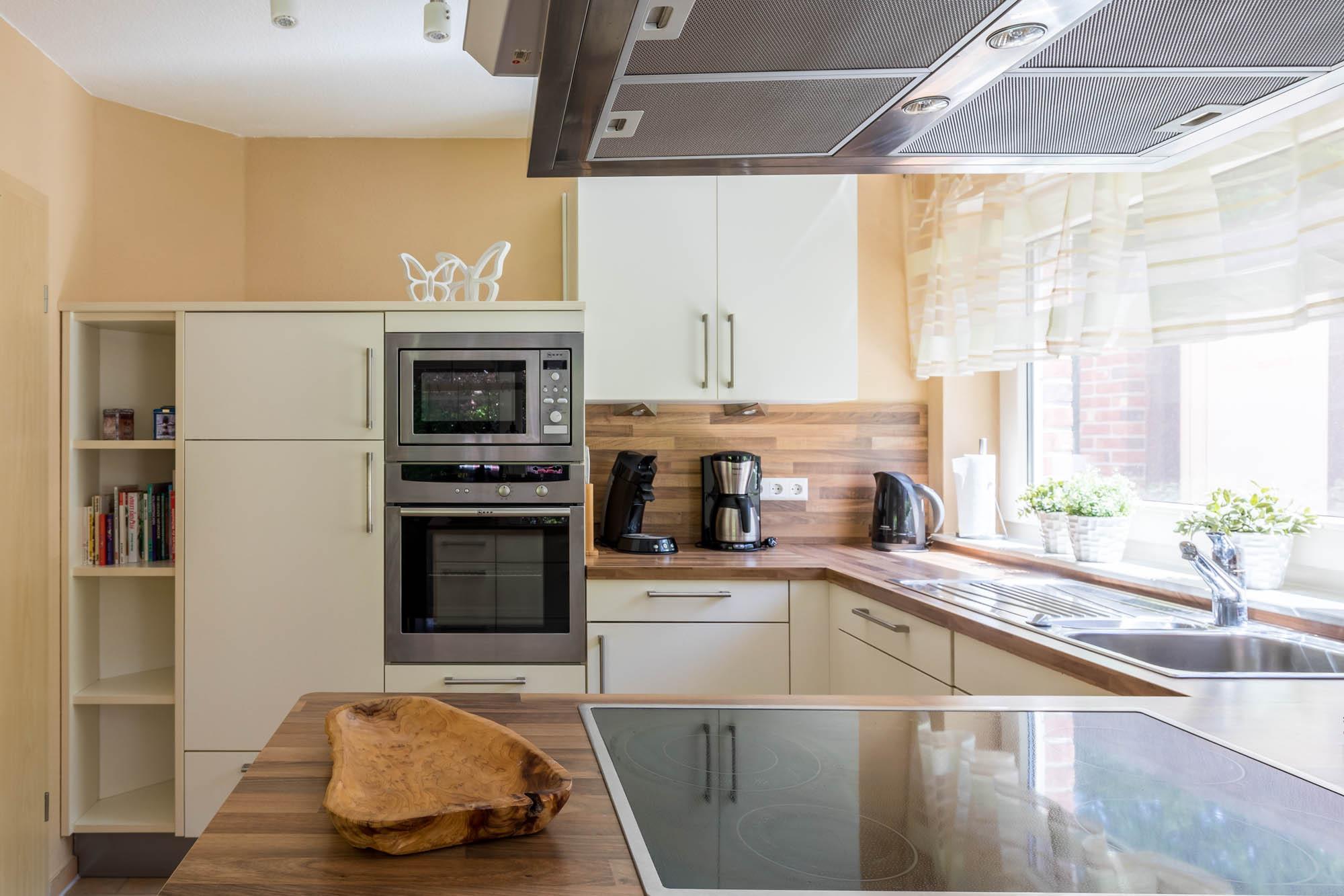Die Küchenzeile verfügt über alle notwendigen Haushaltsgeräte, die eine uneingeschränkte Selbstversorgung ermöglichen. An der schönen Essecke können dann alle gemeinsam bequem die Mahlzeiten einnehmen.