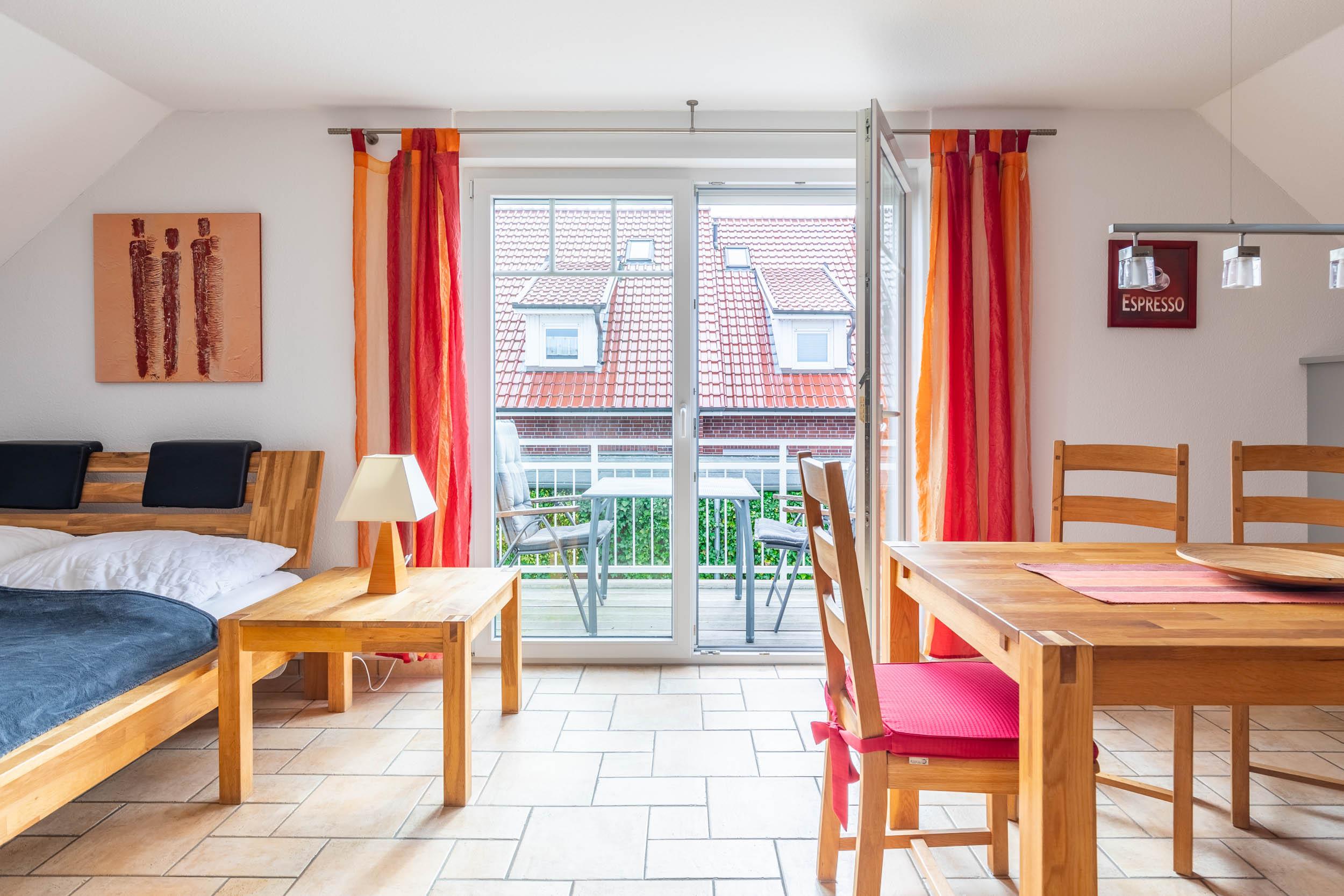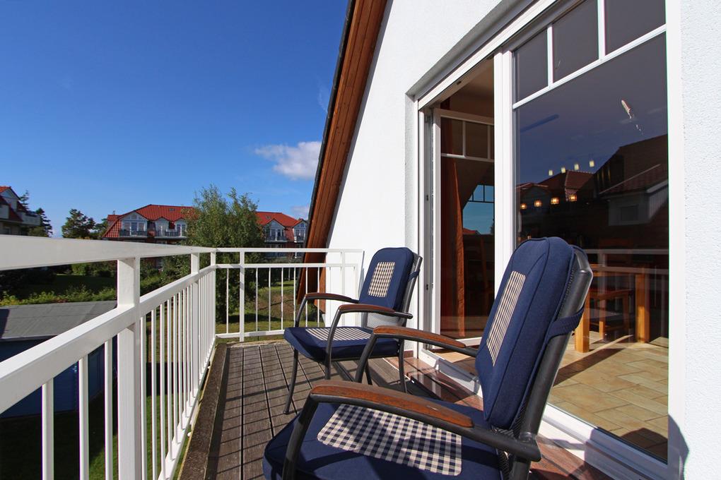 Auf dem kleinen möblierten Balkon können Sie die frische Ostseeluft genießen.
