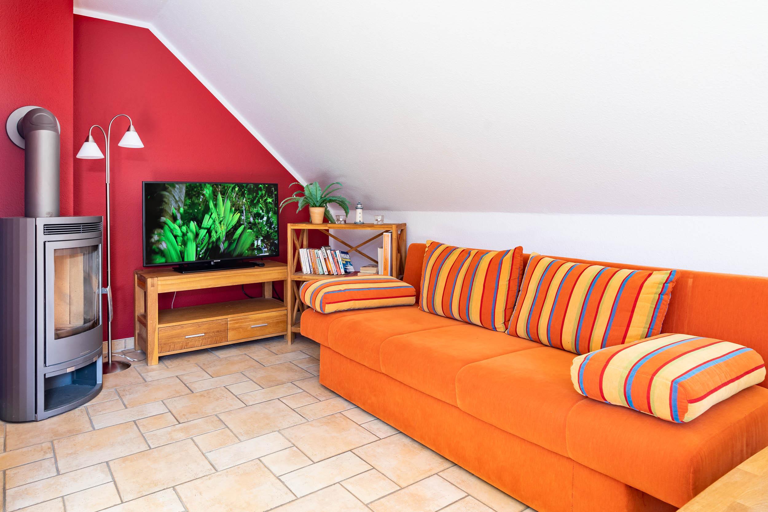 Im Erdgeschoss finden Sie den Wohnbereich mit SAT-TV, DVD-Player, Stereoanlage, zwei Sofas mit Schlaffunktionen für insgesamt zwei Personen, Kamin und offener Küchenzeile mit vielen E-Geräten wie Cerankochfeld, Mikrowelle mit Backofenfunktion, Geschirrspüler, Kühlschrank mit Gefrierfach uvm.